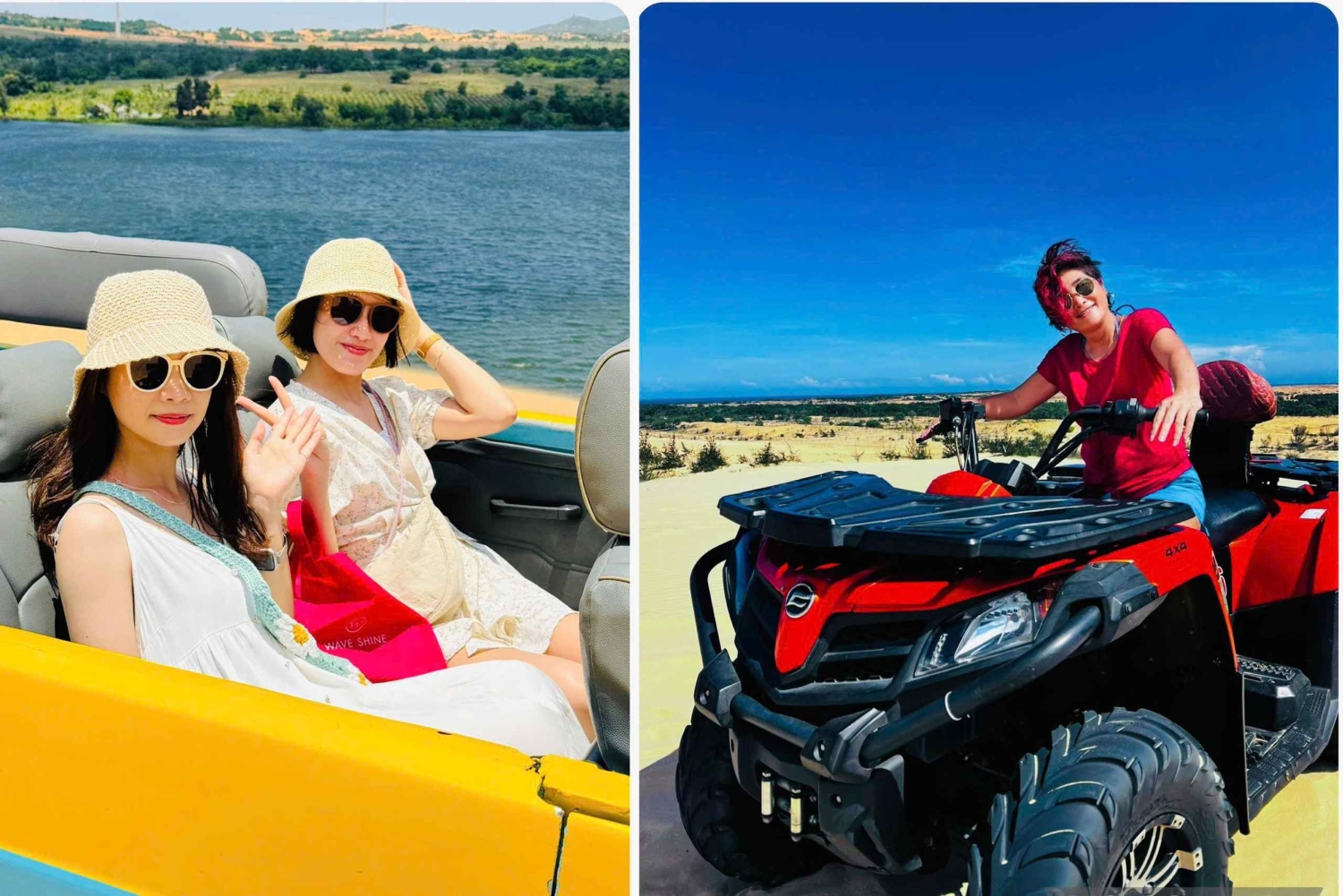 ***Vaihtoehto: 5 tunnin jeep-retki Mui Nesta (lounas ei sisälly hintaan) Nouto hotellilta ja paluu Mui Neen Lähde jännittävälle jeep-seikkailulle Mui Nen tärkeimpiin nähtävyyksiin! Vieraile White Sand Dunes -hiekkadyyneillä nauttimassa upeista näkymistä ja kokeile halutessasi sandboardausta, ja suuntaa sitten Red Sand Dunes -hiekkadyyneille lisää aavikkoseikkailuja varten. Pysähdy tuuliturbiinikentällä ottamaan panoraamakuvia, tutustu värikkääseen kalastajakylään ja kävele rauhallisella Fairy Stream -virralla. ***Lisäoptio: Mui Ne -päiväretki Ho Chi Minh Citystä (lounas sisältyy hintaan) Nouto hotellilta ja paluukuljetus District 1 -keskustasta Pakene kaupunkia ja tutustu Mui Nen rannikon kauneuteen tällä kaikenkattavalla päiväretkellä Ho Chi Minh Citystä! Aloita paikallisella rannalla, josta avautuu upeat merinäkymät, ja kävele sitten upean Fairy Streamin läpi sen värikkäiden hiekkakallioiden keskellä. Nauti tuoreesta meren antimista rannalla ja vieraile sen jälkeen ikonisten valkoisten ja punaisten hiekkadyynien luona. Valinnaisiin aktiviteetteihin kuuluu hiekkakelkkailu ja mönkijöillä ajelu (omakustanteinen). Päätä päivä upealla auringonlaskulla dyynien yllä ennen paluuta Ho Chi Minhiin. Huomautus: Reitti voi muuttua liikenteen, sään tai paikan olosuhteiden vuoksi, mutta kaikki pääaktiviteetit sisältyvät hintaan.Includes