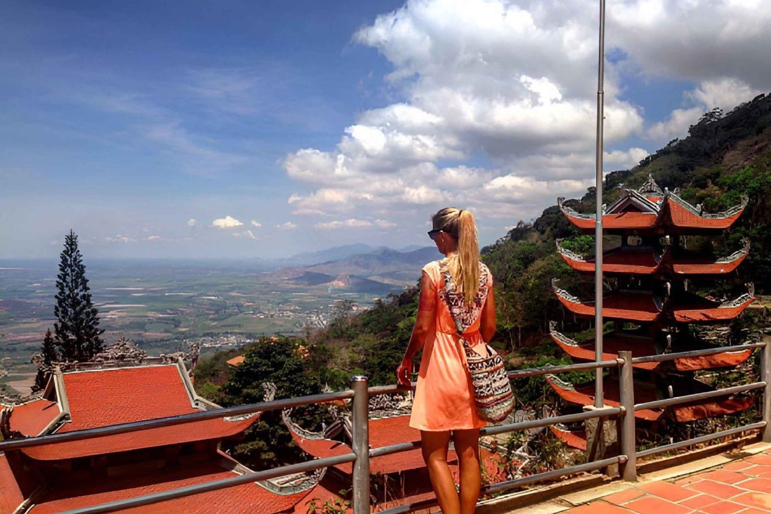 - Kiipeät 100 askelmaa ylös Ta Cu -vuoren (makaava Buddha) huipulle köysirata-ajelun jälkeen. Tämä retki on yksityinen retki Aamulla: Cham Tower - Kalasatama - Valastemppeli - Lohikäärmeenhedelmäfarmi - Ta Cu -vuori. Iltapäivällä: Ta Cu Mountain - Dragon fruit farm - Whale Temple - Fishing Harbor - Cham Tower.