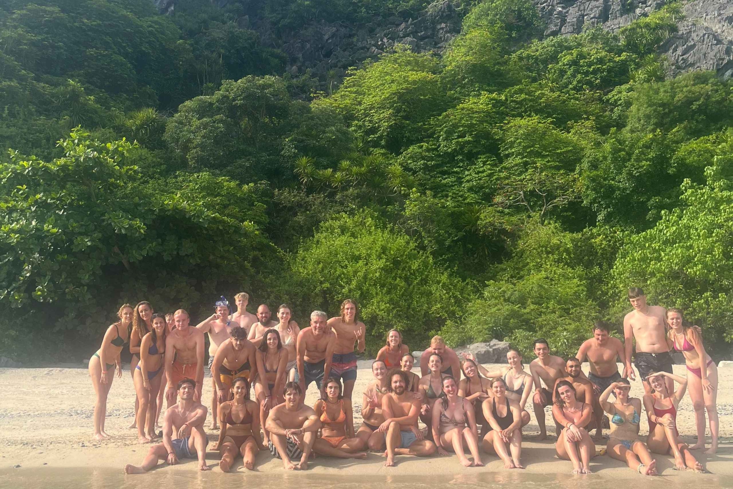 Notre excursion commence par une prise en charge pratique à l'hôtel. Nous viendrons vous chercher vers 16h15 en hiver et 16h00 en été (nous vous contacterons à l'avance pour confirmer l'heure exacte). À votre arrivée au terminal ferry de Cai Beo, vous embarquerez à bord de notre bateau boutique et naviguerez à travers les paysages époustouflants de la baie de Lan Ha. En route vers l'île aux singes, vous passerez devant le village flottant de pêcheurs, le plus ancien village du nord du Vietnam. Une fois arrivés à l'île aux singes, soyez attentifs aux habitants espiègles de l'île. Nous nous arrêterons ici pour nous détendre, observer les singes et nager dans les eaux chaudes de la baie de Lan Ha pendant la magnifique heure dorée. Vous pourrez également choisir de gravir le sommet de l'île et profiter de la vue imprenable sur la baie de Lan Ha. La randonnée peut être difficile, veuillez donc vous munir de chaussures adaptées. Au coucher du soleil, nous naviguerons vers notre spot de kayak. Une fois dans nos kayaks, nous pagayerons vers les meilleurs endroits pour observer l'incroyable lueur du plancton bioluminescent. Vous vous sentirez comme une fée lorsque le plancton lumineux illuminera l'eau autour de vous, tandis que vous pagayerez entre les rochers imposants au clair de lune. Vers 20h00, nous retournerons au bateau pour un court trajet de retour vers la jetée de Beo. Vers 20h30 ou 21h00, nous nous installerons pour un délicieux dîner dans notre restaurant familial, Alibaba's, situé juste à côté de la jetée. Vous pourrez y déguster une variété de plats savoureux (notamment du poisson, des rouleaux de printemps, du poulet et du tofu), avec des options végétariennes disponibles. Vous pourrez également acheter des boissons à déguster entre amis pour vous détendre après une journée riche en aventures. Après le dîner, nous organiserons votre transport pour vous ramener à votre hôtel. Remarques importantes : *Bioluminescence : la luminosité du plancton bioluminescent peut varier d'un jour à l'autre. Ainsi, bien que le plancton soit toujours présent, sa visibilité peut varier et ne pas être aussi importante que sur les photos. De plus, il est souvent difficile de capturer pleinement son effet sur des photos, mais c'est une expérience vraiment magique à vivre en personne ! *Singes : les rencontres avec les singes sont très fréquentes, mais comme il s'agit d'animaux sauvages, leur observation n'est pas garantie. *Horaire : l'itinéraire est susceptible de subir des modifications mineures en fonction des conditions météorologiques. *En fonction de la marée, notre bateau pourrait ne pas pouvoir accoster directement à Monkey Island, nous devrons alors nager jusqu'au rivage. Pour ceux qui ont l'intention de grimper jusqu'au sommet, nous vous recommandons d'apporter un sac étanche pour transporter vos chaussures de randonnée.Includes