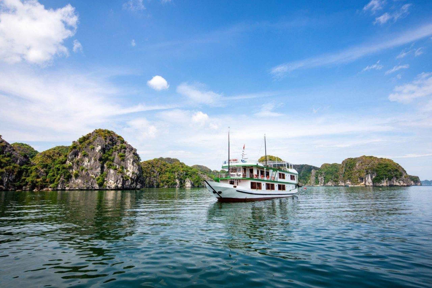 Explorez pleinement la baie de Lan Ha lors de cette visite guidée de deux jours avec des excursions en kayak, à la nage et à vélo. Faites une pause entre les activités avec des boissons, de la cuisine vietnamienne, une croisière relaxante et des vues sur les environs. Commencez le premier jour par une prise en charge à votre hébergement et dirigez-vous vers le port de Beo. Profitez d'une boisson de bienvenue et d'un briefing sur la sécurité avant d'embarquer pour la croisière. Goûtez aux fruits de mer frais et aux amuse-gueules locaux préférés tout en naviguant entre les îles. Une fois à Cua Van, explorez les différentes baies à bord d'un kayak. Le soir, vous pouvez vous baigner depuis le bateau avant d'apprendre à préparer des rouleaux de printemps frais lors d'un cours de cuisine avant le dîner. Après un dîner local, participez à la pêche aux calamars ou à un karaoké, et terminez la soirée avec des bières locales servies gratuitement sur le pont soleil. Commencez votre deuxième journée par un petit-déjeuner après le lever du soleil et une balade à vélo tôt le matin jusqu'à Viet Hai, un petit village au milieu de la jungle, flanqué des hautes montagnes du parc national de Cat Ba. Déjeunez sur le bateau avant de retourner à Hanoi.Includes