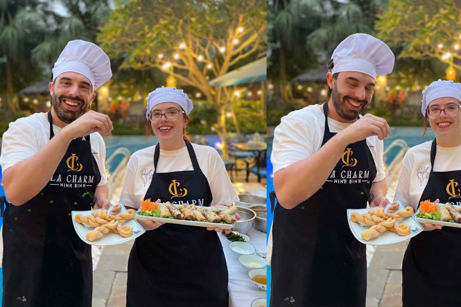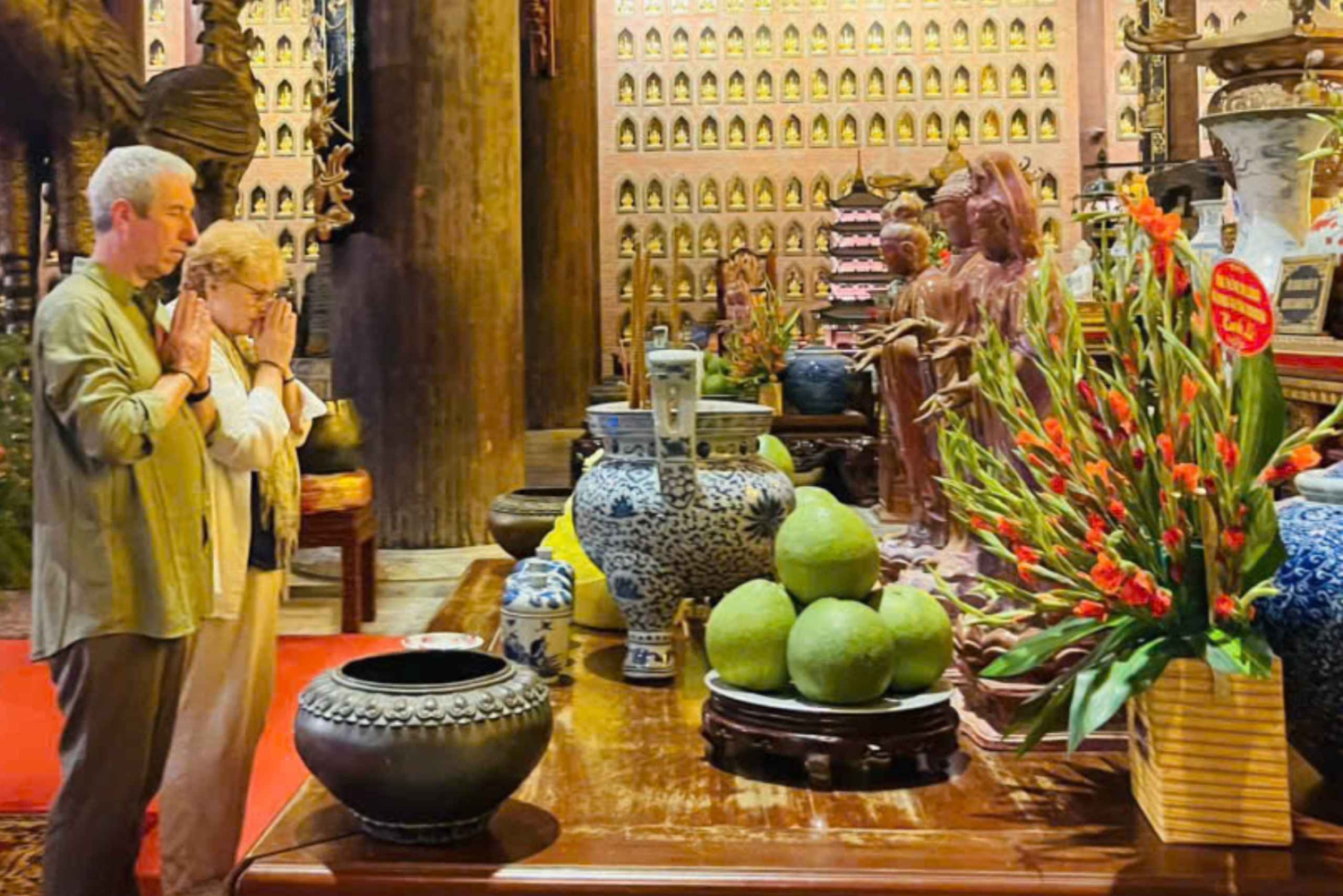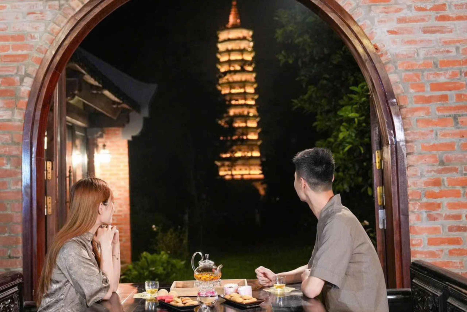 Participez à un cours de cuisine vietnamienne, puis explorez la pagode sacrée de Bai Dinh de nuit. Profitez du rituel des lanternes flottantes, suivi d'un bain de pieds relaxant aux herbes et d'une cérémonie du thé au complexe hôtelier.