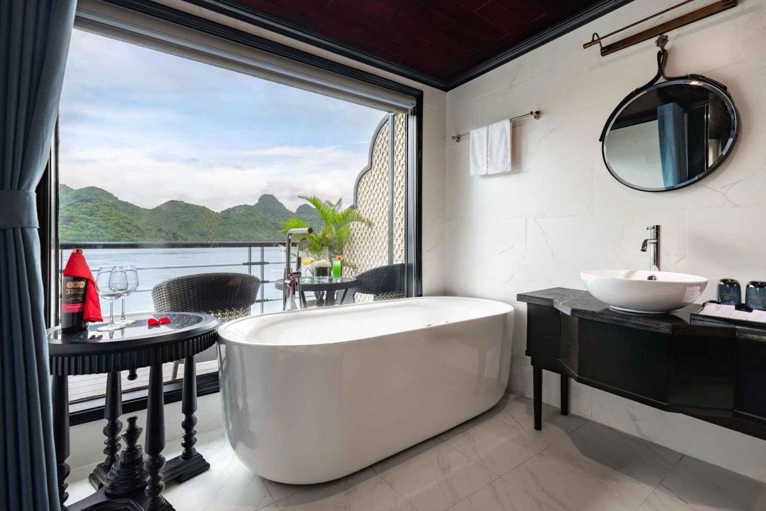 - Passez la nuit sur un bateau de croisière de luxe ancré dans la paisible baie d'Along