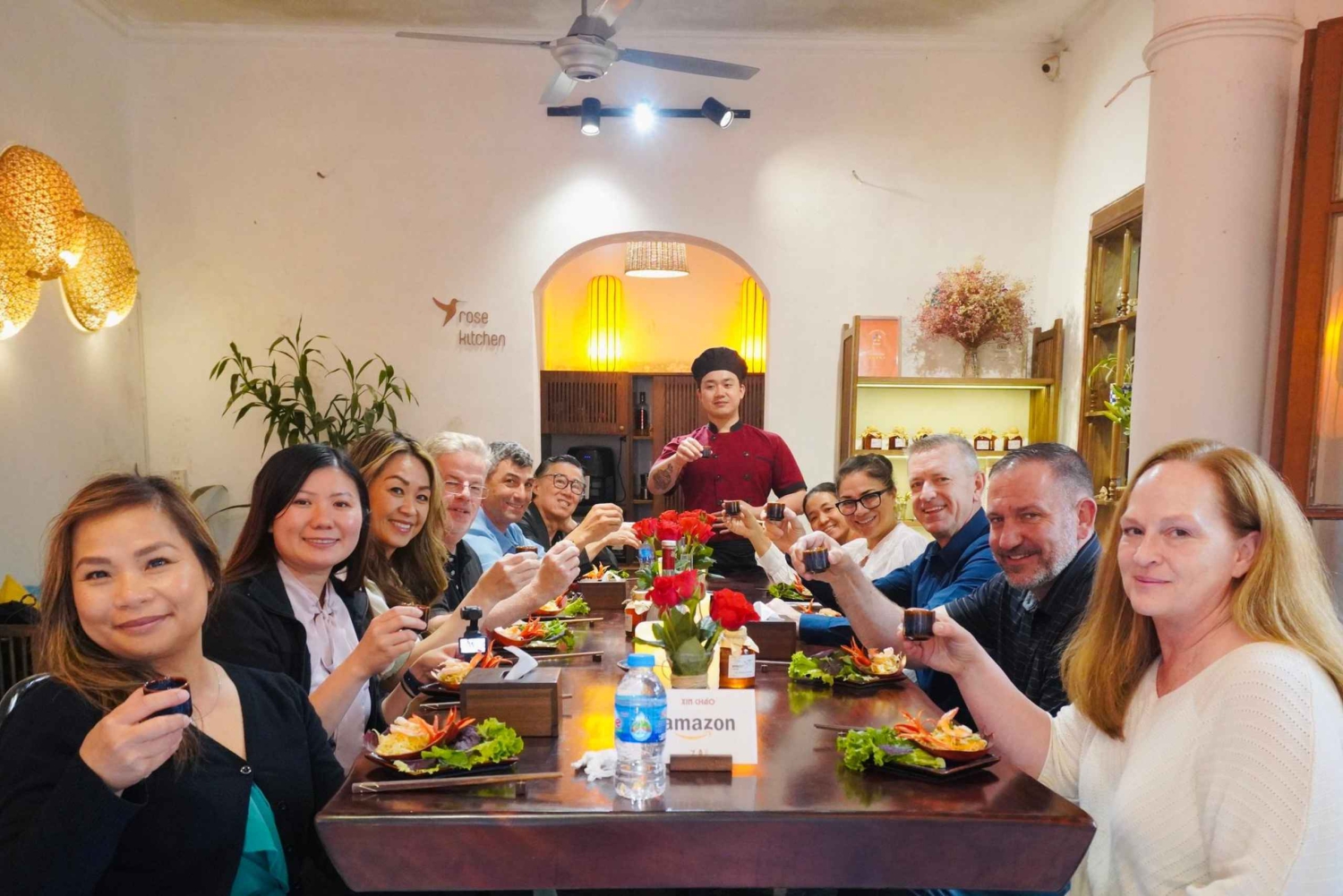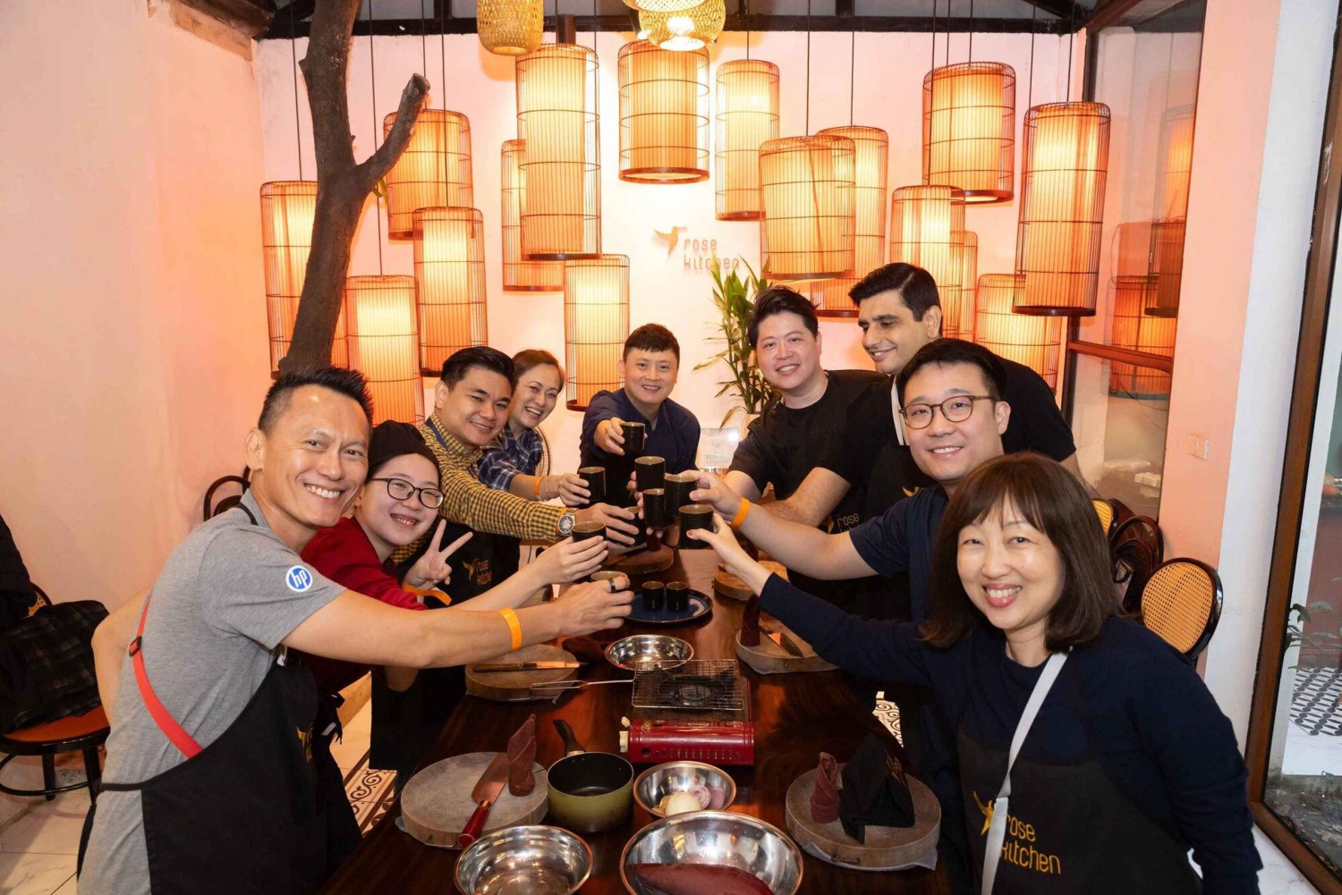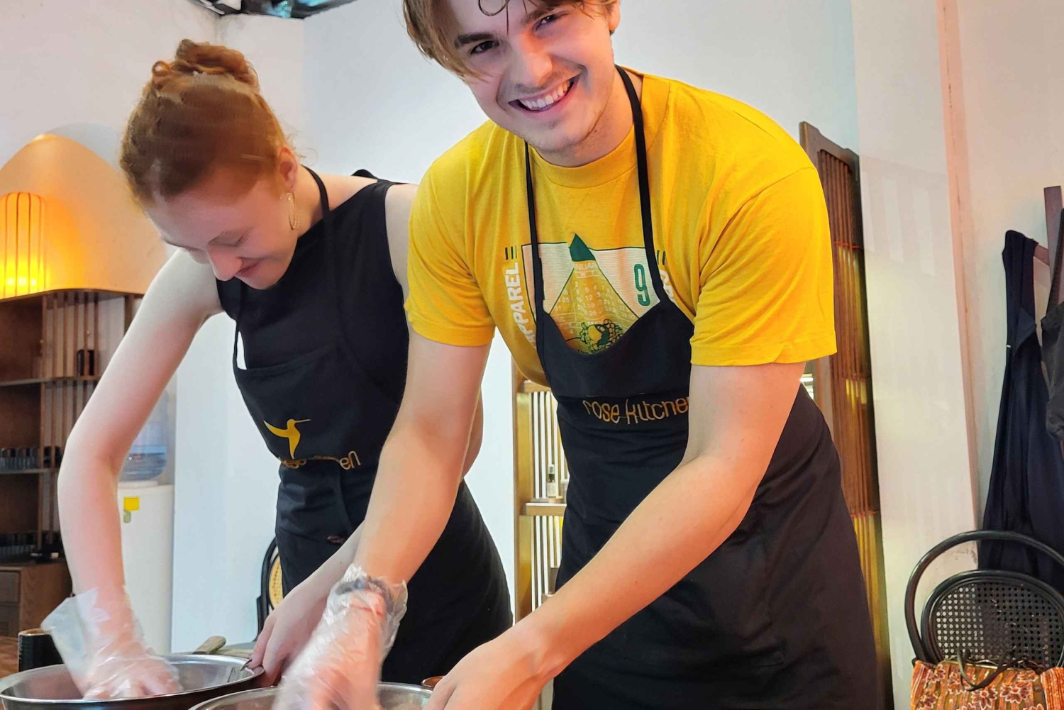 Découvrez le cœur de Hanoï à travers la cuisine, les histoires et les liens authentiques avec la population locale. Votre voyage commence par une prise en charge gratuite dans le vieux quartier ou le quartier français, suivie d'une promenade guidée dans un marché local animé. Vous y explorerez des étals colorés, respirerez l'arôme des herbes et des épices fraîches et verrez comment les Hanoïens font leurs courses pour leurs repas quotidiens. C'est l'occasion d'en apprendre davantage sur les ingrédients locaux et les traditions culinaires avant même d'entrer dans la cuisine. Depuis le marché, vous vous rendrez à la charmante villa avec jardin de Rose Kitchen, un espace spacieux et accueillant conçu pour les échanges culturels. Sous la houlette d'un conteur culturel, vous ne vous contenterez pas de cuisiner : vous écouterez les histoires qui se cachent derrière chaque recette, découvrirez pourquoi certaines saveurs sont importantes dans la vie vietnamienne et vous vous familiariserez avec des traditions transmises de génération en génération. Il s'agit d'un cours entièrement pratique, où vous préparerez des plats authentiques étape par étape. Chaque herbe a une histoire, chaque épice reflète une région et chaque plat ouvre une fenêtre sur la culture vietnamienne. Des options végétariennes sont toujours disponibles, afin que chacun puisse profiter de l'expérience. Pour terminer votre voyage, asseyez-vous avec votre groupe et savourez les plats que vous avez cuisinés, accompagnés de rires, d'histoires et de la chaleur de l'hospitalité locale. Et pour ajouter une touche spéciale, savourez une tasse gratuite du café emblématique de Hanoï, qu'il s'agisse d'un café crémeux aux œufs, d'un café tropical à la noix de coco ou d'un café classique au goût prononcé. Avec des transferts gratuits, des installations 5 étoiles et des conteurs culturels formés par l'ancien chef cuisinier du Sofitel Metropole, il s'agit de bien plus qu'un simple cours de cuisine. C'est une immersion culturelle où la nourriture devient souvenir, histoire et lien.Includes