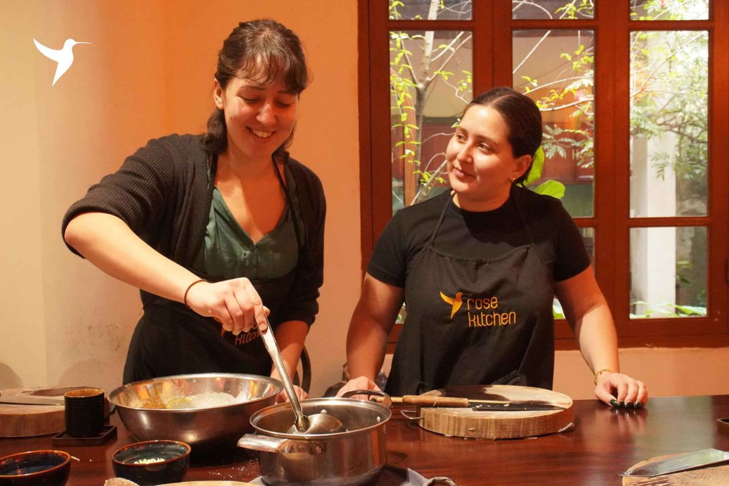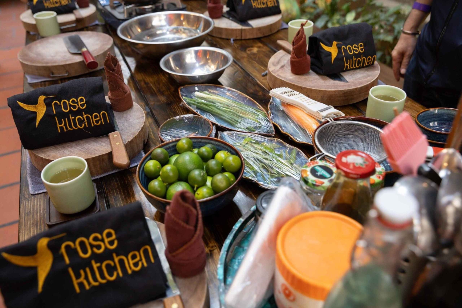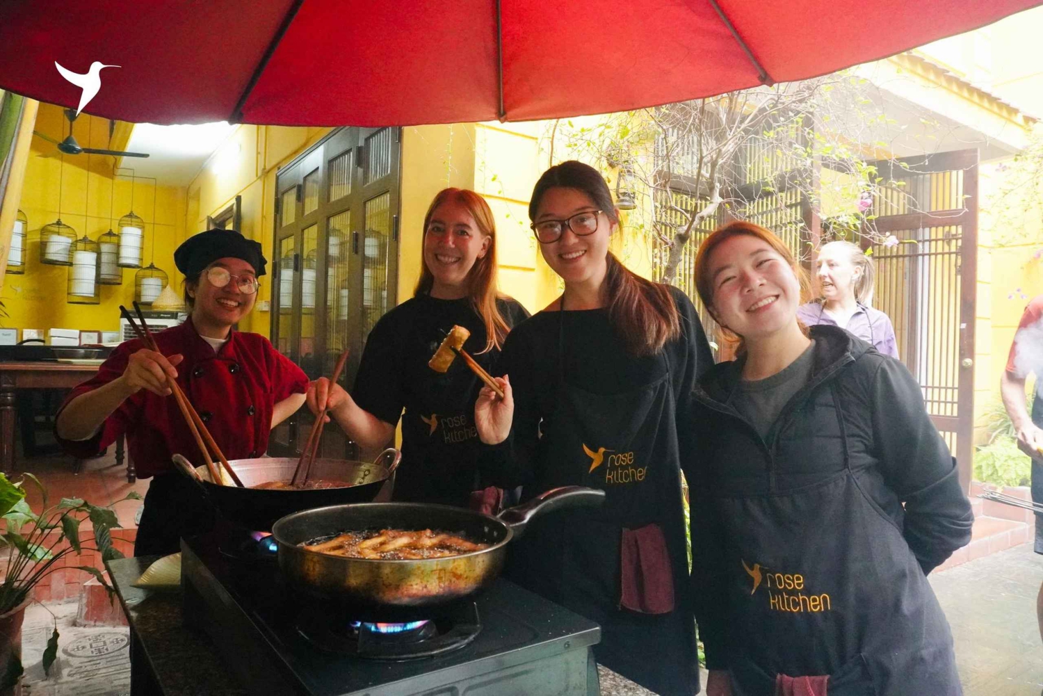 Découvrez le cœur de Hanoï à travers la cuisine, les histoires et les liens authentiques avec la population locale. Votre voyage commence par une prise en charge gratuite dans le vieux quartier ou le quartier français, suivie d'une promenade guidée dans un marché local animé. Vous y explorerez des étals colorés, respirerez l'arôme des herbes et des épices fraîches et verrez comment les Hanoïens font leurs courses pour leurs repas quotidiens. C'est l'occasion d'en apprendre davantage sur les ingrédients locaux et les traditions culinaires avant même d'entrer dans la cuisine. Depuis le marché, vous vous rendrez à la charmante villa avec jardin de Rose Kitchen, un espace spacieux et accueillant conçu pour les échanges culturels. Sous la houlette d'un conteur culturel, vous ne vous contenterez pas de cuisiner : vous écouterez les histoires qui se cachent derrière chaque recette, découvrirez pourquoi certaines saveurs sont importantes dans la vie vietnamienne et vous vous familiariserez avec des traditions transmises de génération en génération. Il s'agit d'un cours entièrement pratique, où vous préparerez des plats authentiques étape par étape. Chaque herbe a une histoire, chaque épice reflète une région et chaque plat ouvre une fenêtre sur la culture vietnamienne. Des options végétariennes sont toujours disponibles, afin que chacun puisse profiter de l'expérience. Pour terminer votre voyage, asseyez-vous avec votre groupe et savourez les plats que vous avez cuisinés, accompagnés de rires, d'histoires et de la chaleur de l'hospitalité locale. Et pour ajouter une touche spéciale, savourez une tasse gratuite du café emblématique de Hanoï, qu'il s'agisse d'un café crémeux aux œufs, d'un café tropical à la noix de coco ou d'un café classique au goût prononcé. Avec des transferts gratuits, des installations 5 étoiles et des conteurs culturels formés par l'ancien chef cuisinier du Sofitel Metropole, il s'agit de bien plus qu'un simple cours de cuisine. C'est une immersion culturelle où la nourriture devient souvenir, histoire et lien.Includes