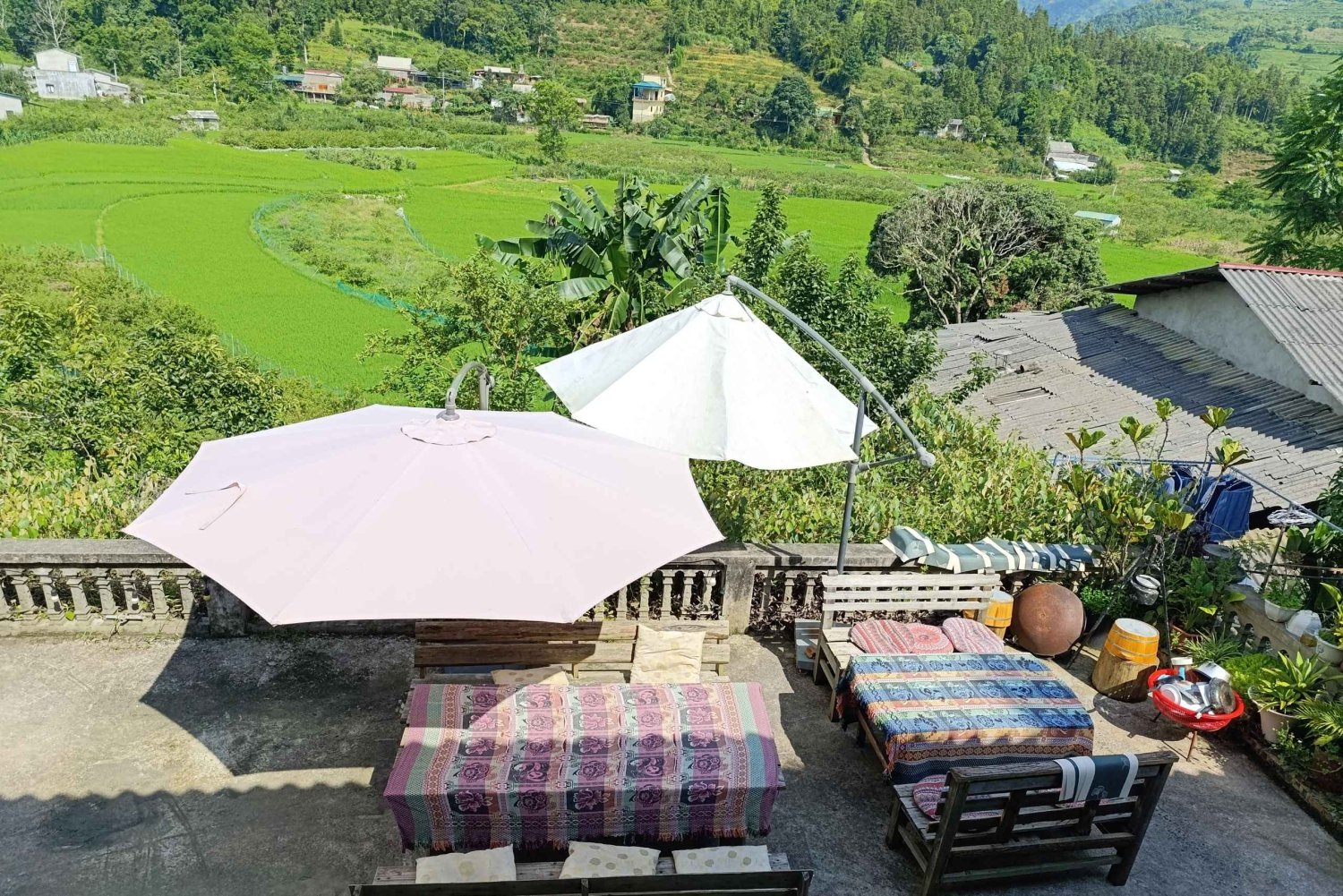 Day 1(Saturday): Sapa – Na Hoi – Ban Pho – Bac Ha 7:30 AM – Depart from Sapa Drive through mountain roads toward Bac Ha 10:30 AM -11:30 AM – Reach Hoang Thu Pho (~10km to Bac Ha Town) Walk through a Flower Hmong village and stop by scenic spots for photos. Visit an ancient tea garden and meet locals 12:30 PM - 1 PM – Lunch with a local family or restaurant 2:00 PM – Heading to Bac Ha center through quiet trails with panoramic views. Visit Ban Pho Village (~6km to Bac Ha Town) on the way 3:30 PM - 4 PM – Move to and check in at a homestay near Bac Ha 5:30 PM - 6:30 PM – Light trek and sunset hunting in Thai Giang Pho 7:00 PM – Dinner at the homestay Enjoy a home-cooked meal and cultural exchange 7:30 PM – Free time (optional night market visiting) Day 2 (Sunday): Bac Ha Market – Hmong King's Palace (Optional) – Return 7:30 AM: Breakfast 8:00 AM – 10:00 AM: Explore Bac Ha Sunday Market – a bustling gathering of local ethnic groups 9:30 AM – 11:30 AM: Trek to places of interest in town: Bac Ha Temple, Ba Me Con Mountain 12:00 PM: Lunch in Bac Ha town 1:00 PM – 2:00 PM: Visit viewpoints on the way back/ take a boat trip in Bao Nhai (extra fees added) 2:00 PM: Drive back to Sapa/Lao Cai (if you take a train to Hanoi) 4:30 – 5:00 PM: Arrive at your hotel in Sapa Note: The itinerary may vary slightly depending on the weather and check-in time.Includes