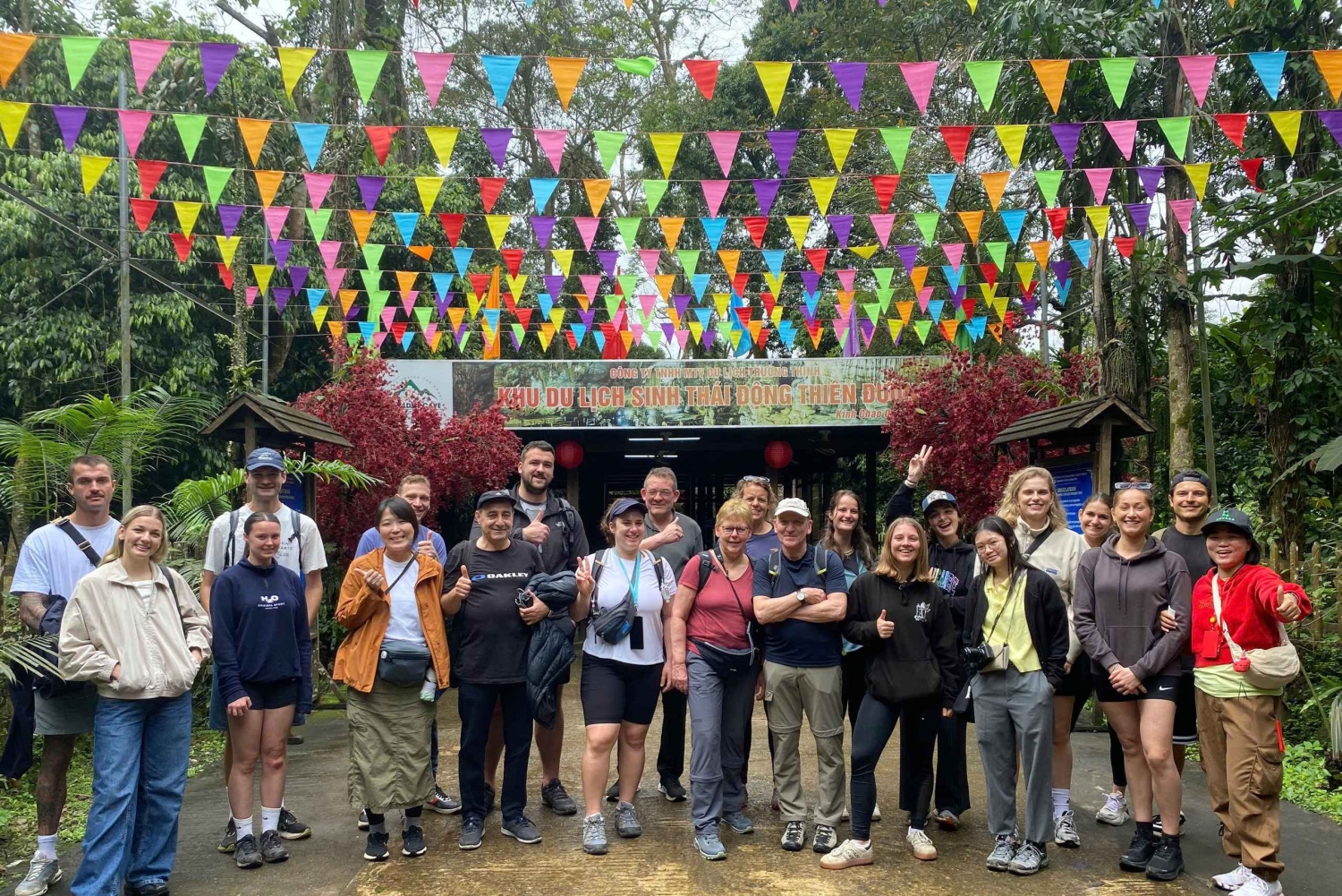 Itinerario: 08:00: Arrivo all'ufficio Sovaba Travel a Dong Hoi, nella provincia di Quang Binh. Potrete riposarvi e rilassarvi per circa 10 minuti, bere acqua e prepararvi per il viaggio alla scoperta di due famose grotte. Il furgone vi porterà al Parco Nazionale di Phong Nha - Ke Bang. Preparatevi a esplorare una delle meraviglie naturali più famose al mondo. 09:30: Esplorazione della Grotta del Paradiso: I visitatori iniziano il loro viaggio con un tragitto in tram di 1,6 km, seguito da una breve escursione fino all'ingresso stretto della Grotta del Paradiso. Una volta dentro, la grotta rivela uno spazio vasto e fresco con soffitti alti fino a 60 metri e larghi 120 metri. Scale di legno ti guidano attraverso questo 'Palazzo Reale Sotterraneo', che mostra magnifiche stalattiti e stalagmiti illuminate da morbide luci a LED. Le meraviglie naturali della grotta, tra cui formazioni che ricordano fiori, alberi e cascate, lasciano i visitatori a bocca aperta. 12:30: Pausa pranzo: Dopo aver visitato la Grotta del Paradiso, sarete invitati in un ristorante nell'area del Parco Nazionale per pranzare con specialità locali, in uno spazio tranquillo e arioso. 13:30 - Viaggio alla grotta di Phong Nha: • Dopo aver gustato il pranzo, i visitatori continuano il loro viaggio verso la grotta di Phong Nha. Qui, i visitatori salgono a bordo di una barca drago per iniziare una crociera di 30 minuti lungo il fiume verde, circondati da uno splendido scenario naturale. • Seduti sulla barca, i visitatori potranno godersi la tranquillità del paesaggio, osservando i villaggi lungo il fiume e le maestose montagne calcaree in lontananza. Il fiume conduce all'ingresso della grotta di Phong Nha, dove la magia della natura si rivela gradualmente attraverso la bellezza maestosa e misteriosa di file di stalattiti e stalagmiti. • Entrando, i visitatori rimarranno colpiti dalla bellezza scintillante del sistema di stalattiti illuminato dalle torce. Tende di pietra, stalagmiti e stalattiti brillano come diamanti, creando forme uniche. Più ci si addentra, più si rimane stupiti dai banchi di pesci, dai laghi sotterranei e dalle rocce scintillanti, che creano una scena da favola. 16:00 - Ritorno a Dong Hoi:Includes