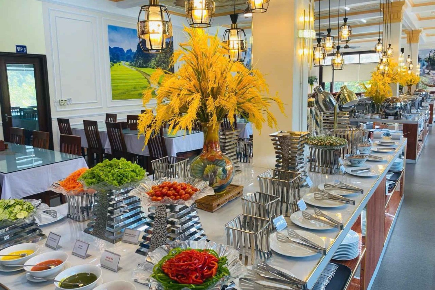 • Giorno 1: Hoa Lu – Tam Coc – Grotta di Mua (L/D) 07:25 – 08:00: la nostra simpatica guida ti verrà a prendere e partirete per la provincia di Ninh Binh L'orario del prelievo dipende da dove ti trovi nel Quartiere Vecchio di Hanoi o al Teatro dell'Opera 09:15: fai una breve pausa di 15-20 minuti per rilassarti 10:15: visita HoaLư, antica capitale del Vietnam tra il 968 e il 1010. Avrai la possibilità di conoscere la storia vietnamita nel sistema feudale sotto le dinastie Dinh, Le e Ly Qui, andiamo in bicicletta intorno al villaggio per visitare la città e scoprire la vita della gente del posto 12:00: Pranzo a buffet al ristorante Ninh Binh Excursion, un locale a 5 stelle con tante specialità locali come carne di capra, involtini primavera, pesce, pollo, riso fritto e insalata di verdure. Ci sono sempre anche opzioni vegetariane. 13:30: visita Tam Coc con una barca di bambù per un'ora e mezza. Durante il giro in barca, rimarrai sorpreso dall'incantevole bellezza del luogo, con le sue risaie, il fiume, l'acqua, le nuvole, il cielo e un sistema di grotte mozzafiato. Tutto questo crea un capolavoro che i vietnamiti chiamano 'la Baia di Ha Long sulla terraferma' 15:30: Torna al Limousine Bus e parti per la grotta di Mua (Dragon Peak). Sali quasi 500 gradini per raggiungere la cima della Lying Dragon Mountain e goditi una splendida vista panoramica di Tam Coc. Inoltre, potrai respirare aria fresca nella bellissima risaia di loto nelle vicinanze, soprattutto nel periodo estivo 17:00: fai il check-in al bungalow e poi goditi il tempo libero per rilassarti (puoi usare la piscina in estate) 19:00: Cena al bungalow/hotel e poi passeggiata a Tam Coc Dormi al bungalow • Giorno 2: Bai Dinh – Trang An (colazione/pranzo) Mattina: fai colazione al bungalow, poi fai il check-out e preparati per il viaggio 09:30: ti verranno a prendere e poi trasferimento alla Pagoda di Bai Dinh 10:30: Visita la Pagoda di Bai Dinh, la più famosa e grande del sud-est asiatico, con molti record come 500 statue di pietra di Arhat, una campana di bronzo da 36 tonnellate, una statua di Buddha da 100 tonnellate... 12:30: Pranzo a buffet al ristorante NinhBinh Excursion, un locale a 5 stelle con tante specialità locali come carne di capra, involtini primavera, pesce, pollo, riso fritto e insalata di verdure... Ci sono sempre anche piatti vegetariani disponibili al pranzo a buffet 13:30: Visita Trang An, riconosciuta dall'UNESCO come Patrimonio dell'Umanità nel 2014. Trang An ha un meraviglioso sistema di gallerie e grotte che non ha eguali. Con un viaggio in barca di 2 ore, ti convincerai della bellezza di questo luogo 16:00: sali sull'autobus per tornare ad Hanoi 18:30: ti accompagniamo al tuo hotel ad Hanoi. Fine del tourIncludes