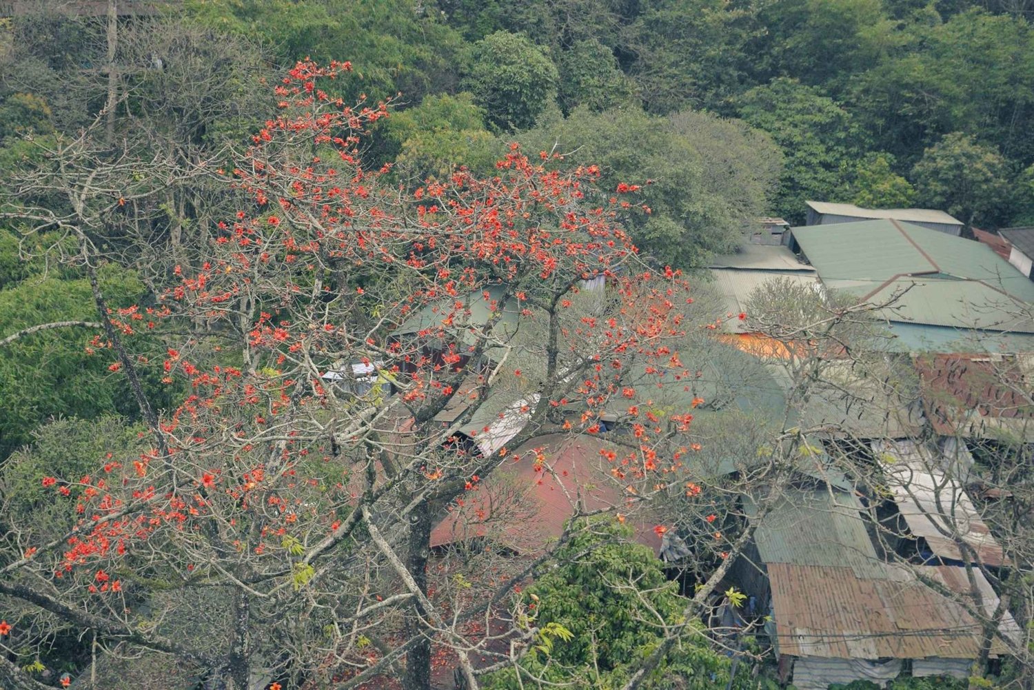- Ammira il fascino rustico delle case con tetto di tegole e le recinzioni di fiori di ibisco