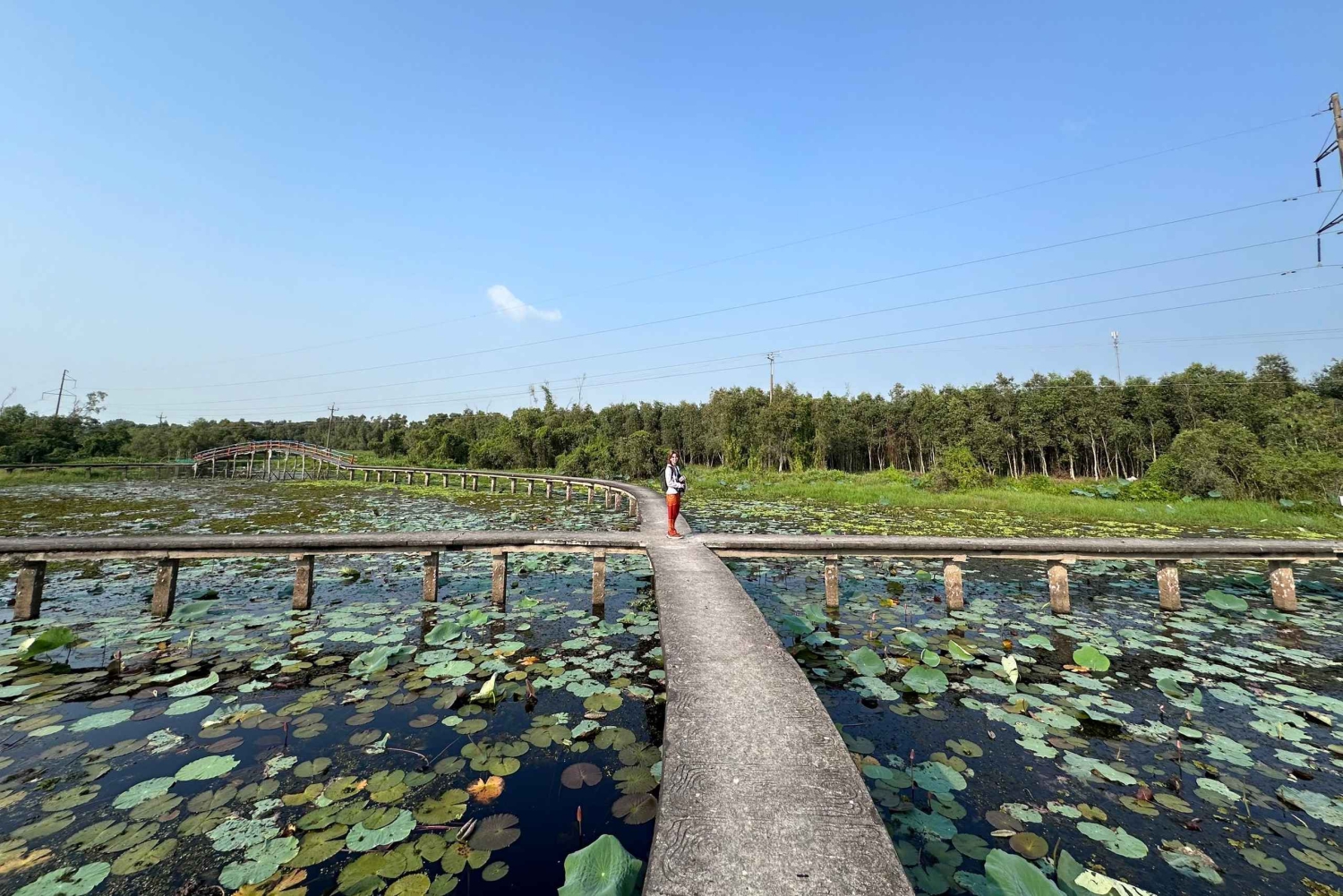 - Walk through the mangrove forest trails in Tân Lập Floating Village