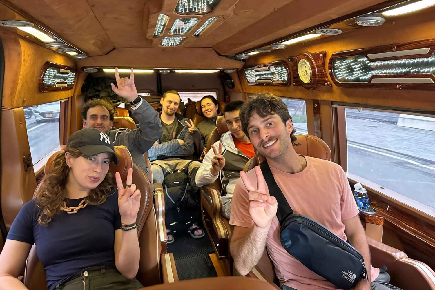 Ottieni un viaggio lussuoso e confortevole da Hoi An a Hue e viceversa. La nostra Limousine offre un'esperienza di viaggio perfetta, con interni puliti e sedili spaziosi e confortevoli. Che tu sia diretto verso le montagne per l'avventura o per il relax, questo servizio giornaliero ti assicura un viaggio tranquillo e piacevole. Goditi il comfort e la comodità di viaggiare tra queste iconiche destinazioni. Prenota il tuo posto oggi stesso e prova il miglior servizio di trasporto tra Hoi An e Hue. Partenze: Partenze giornaliere ogni 01 ora, dalle 08:00 alle 17:00 Punto di raccolta: Controlla il punto di partenza specifico nella sezione delle opzioni. Si tratta di un servizio di autobus condiviso utilizzato sia dai locali che dai turisti. Possiamo fornire assistenza per il prelievo e la riconsegna in alcune località centrali (tuttavia, questo deve essere verificato caso per caso e non può essere garantito). Pertanto, potrebbero verificarsi casi in cui l'autobus arriva in anticipo o in ritardo, a seconda delle condizioni del traffico e della puntualità dei passeggeri.Includes