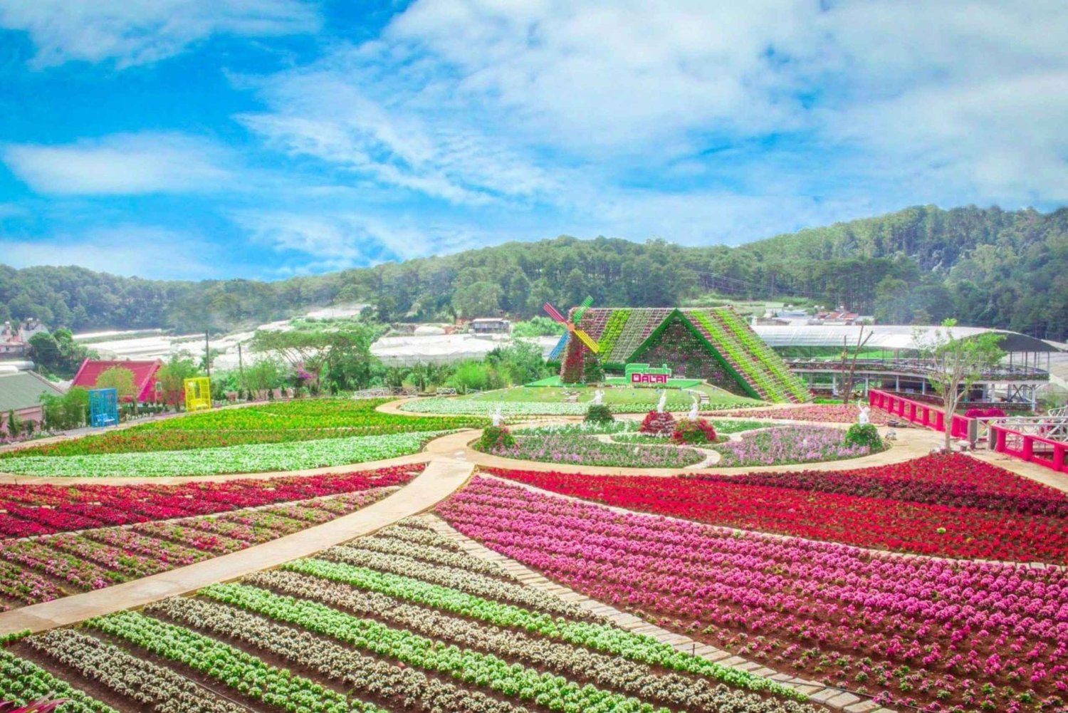Itinerario Giorno 1 - Campagna e campeggio Alle 08:00 verrai prelevato dal tuo hotel per iniziare una giornata intera alla scoperta della campagna. Il viaggio inizia con una visita al villaggio dei fiori di Van Thanh, dove i fiori dai colori vivaci danno il tono all'avventura. Da lì, continuerai verso la cascata Elephant, una cascata imponente, e la vicina pagoda Linh Ẩn, che ospita la statua della Buddha donna più alta del Vietnam. Lungo il percorso, ti fermerai anche in una fabbrica di seta per vedere il processo di tessitura, in un laboratorio di vino di riso per conoscere la produzione locale e in un allevamento di grilli dove i viaggiatori più audaci potranno assaggiare questo snack unico. Prima che la giornata volga al termine, goditi una pausa rilassante al Me Linh Coffee Garden, famoso per la sua vista panoramica. La sera arriverai al lago Tuyen Lam per il campeggio, con cena barbecue e falò sotto le stelle. Giorno 2 - SUP all'alba e canyoning Il secondo giorno inizia presto, alle 05:30, con una magica sessione di SUP sul lago Tuyen Lam, guardando l'alba riflettersi sulle acque calme. Dopo una colazione in riva al lago, il divertimento continua con un'avventura di canyoning alla cascata Datanla: discesa in corda doppia, scivoli, zipline e nuoto nei freschi torrenti. Infine, alle 16:00, effettuerai il rientro a Da Lat, concludendo il tuo viaggio con ricordi indimenticabili.Includes