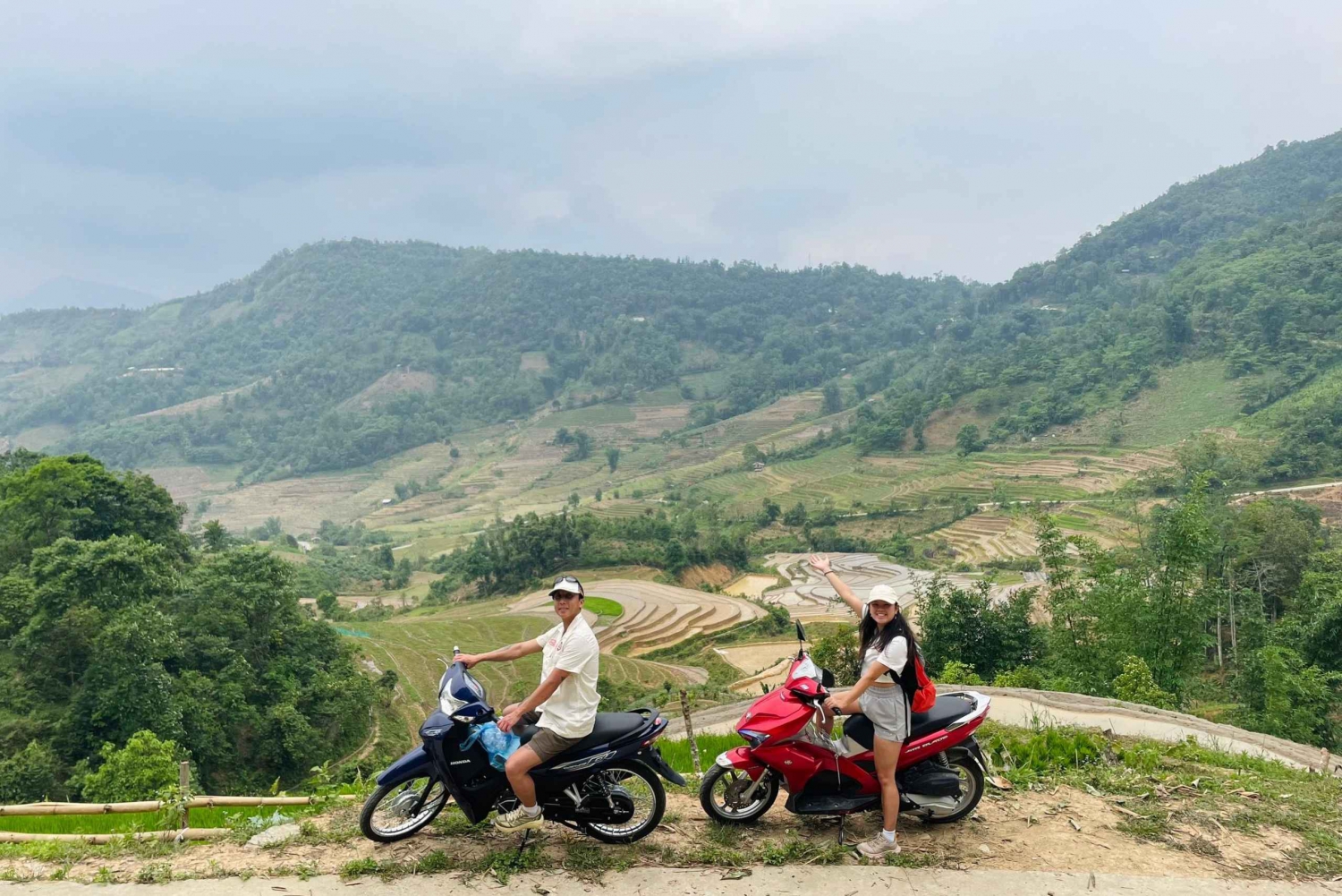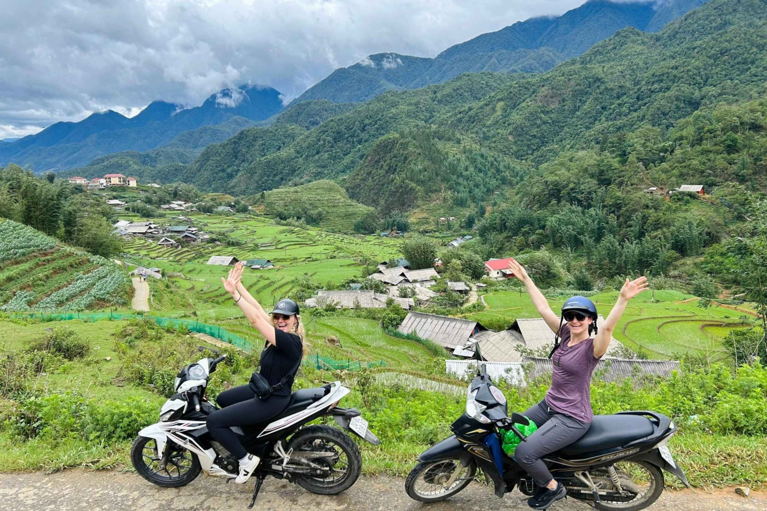 Il viaggio inizierà alle 8:30 del mattino. La nostra guida verrà a prenderti al tuo hotel o davanti alla Chiesa di Pietra situata nel centro di Sapa. In seguito, la guida ti presenterà l'itinerario e le modalità di utilizzo della moto in tutta sicurezza. Il tuo viaggio inizierà da Sapa per raggiungere la cima del Passo O Quy Ho, uno dei quattro passi più belli del Vietnam. Percorrerai questo itinerario e godrai dello spettacolare scenario della catena montuosa di Hoang Lien Son e delle colline del tè Oolong, oltre che dei bellissimi alberi di ciliegio in fiore. Dopo 20 minuti di pedalata, raggiungerai la tua prima tappa, le Cascate d'Argento. Le Cascate d'Argento, alte più di 200 metri, si trovano a monte di Muong Hoa, ai piedi del Passo O Quy Ho. Per visitare le cascate d'argento, dovrai percorrere circa 1 km in un percorso circolare, dove potrai vedere le fattorie di cardamomo della popolazione locale sullo sfondo della magnifica valle di Muong Hoa e le acque bianche che scorrono da un'altezza di oltre 1.800 metri. Continuerai poi a pedalare per circa 10 minuti per raggiungere la Cascata dell'Amore. Anche quest'area fa parte del Parco Nazionale di Hoang Lien Son. Camminerai per circa un'ora per esplorarla, permettendoti di immergerti in questa vasta foresta, ascoltando il canto degli uccelli e il rumore dell'acqua che scorre. La Cascata dell'Amore, nascosta nella foresta a un'altitudine di 2.000 metri sul livello del mare, ha un salto di 100 metri. La sua caratteristica principale è la bellezza incontaminata e tranquilla. Se il tempo è bello, puoi fermarti a fare un bagno rinfrescante ai piedi della cascata, dove l'acqua è fresca e pulita e sgorga dall'antica foresta. In seguito, proseguirai in moto fino all'Albero Solitario (Haven Gate), dove potrai scattare foto e ammirare l'intera valle piena di foreste e di fattorie di cardamomo locali. Se il tempo è buono, sono sicuro che rimarrai stupito dalla bellezza naturale di questo luogo. La tappa successiva del tuo viaggio ti porterà lungo la valle di Muong Hoa nei villaggi locali, dove potrai ammirare i maestosi campi terrazzati e gli splendidi villaggi incontaminati, incredibilmente pittoreschi. Attraverserai i villaggi di Sin Chai, Y Linh Ho e Lao Chai, dove i campi terrazzati e le case in legno sono famosi per essere i più belli di Sapa. Ti fermerai in un piccolo ristorante H'mong vicino al ruscello per gustare un pranzo delizioso e avere l'opportunità di sperimentare la cucina locale. Dopo il pranzo farai una breve passeggiata per visitare una piccola famiglia Hmong nera, per conoscere la vita locale, le culture, le tradizioni, gli abiti... E come vivono. Sentirai la natura selvaggia e la vita estremamente semplice affiorare nella tua mente e potrai fare tutte le domande che ti incuriosiscono da tempo. Poi continuerai a guidare per visitare 3 villaggi, ovvero Ta Van, Hau Thao e Su Pan, quindi tornerai a Sapa o al tuo hotel e avrai completato un viaggio estremamente bello e significativo, che terminerà alle 14:30-15:300.Includes