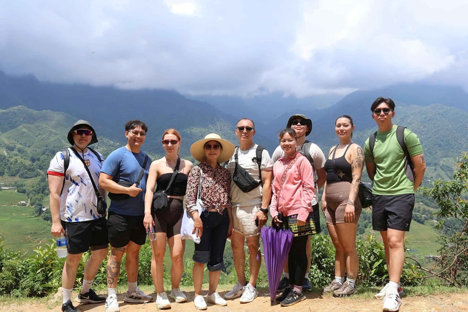 Parti per un tour panoramico di trekking di un giorno attraverso alcuni dei percorsi più belli e meno conosciuti di Sapa. Inizia il tuo viaggio alle 8:30 dal tuo hotel con una guida locale che ti condurrà lungo sentieri tortuosi nel cuore della valle di Muong Hoa. La tua prima tappa è Y Linh Ho, un tranquillo villaggio H'Mong Nero incastonato tra ripide colline e campi terrazzati. Prosegui il trekking fino al villaggio di Lao Chai, dove potrai ammirare le tradizionali case su palafitte e il ritmo quotidiano della vita H'Mong. Goditi un pranzo locale nel villaggio prima di proseguire verso il villaggio di Ta Van, dove vive la minoranza etnica Giay. Lungo il percorso, immergiti nel paesaggio vivace e scopri il patrimonio culturale della regione, dall'abbigliamento alla lingua e alle usanze familiari. Il trekking finisce intorno alle 15:00-15:30, con un trasferimento in auto che ti riporterà al tuo hotel, concludendo la tua giornata memorabile all'insegna della natura e della cultura.Includes