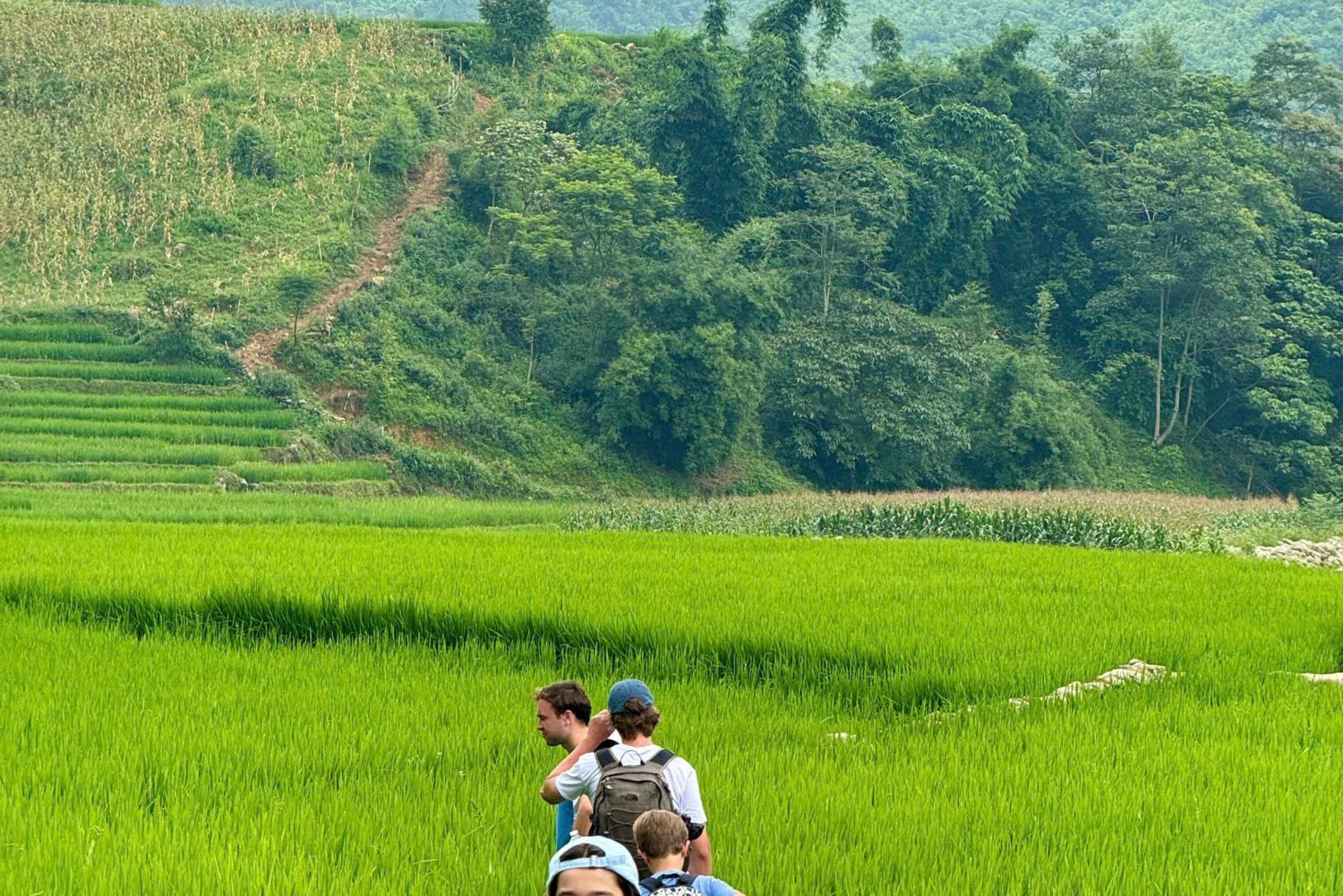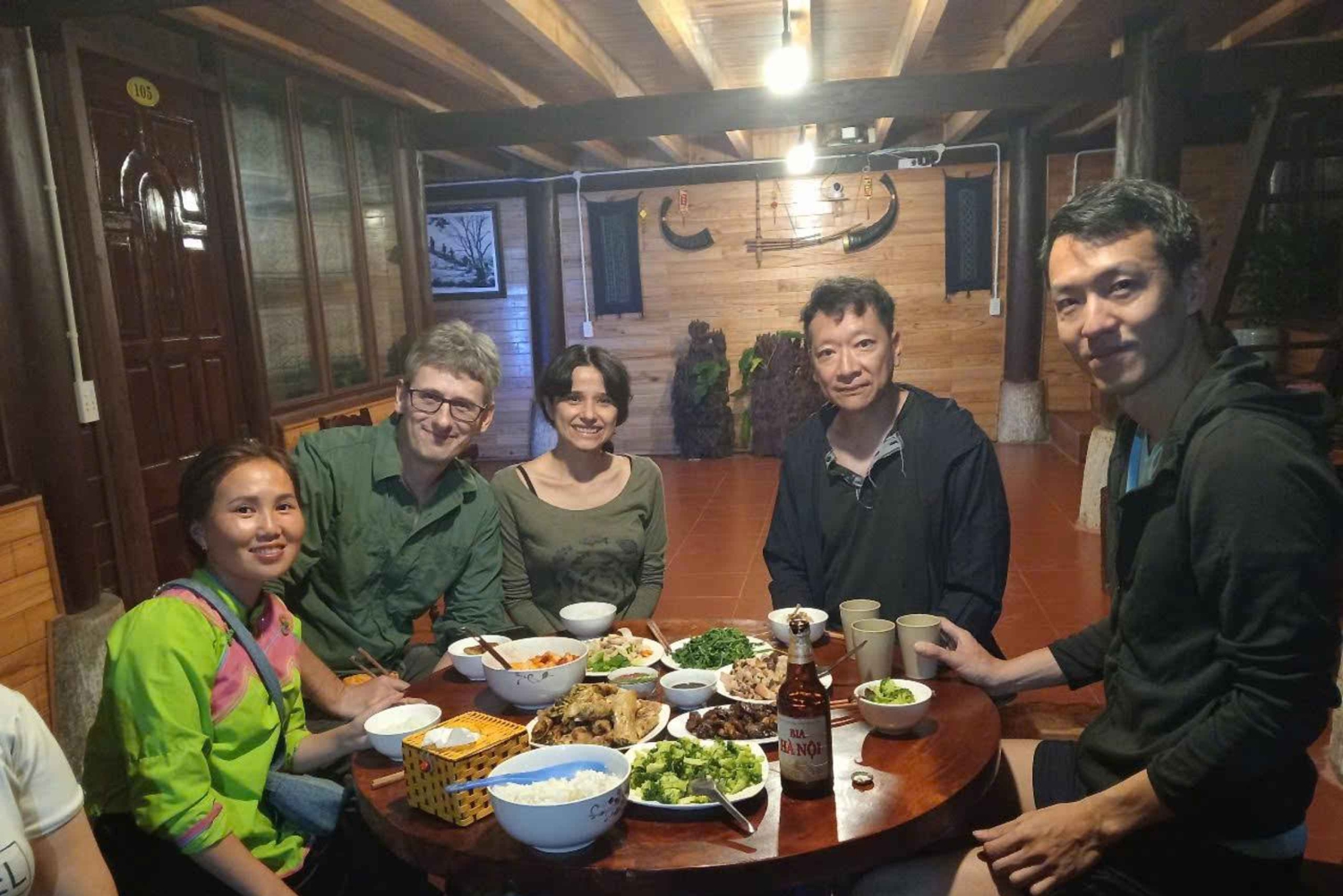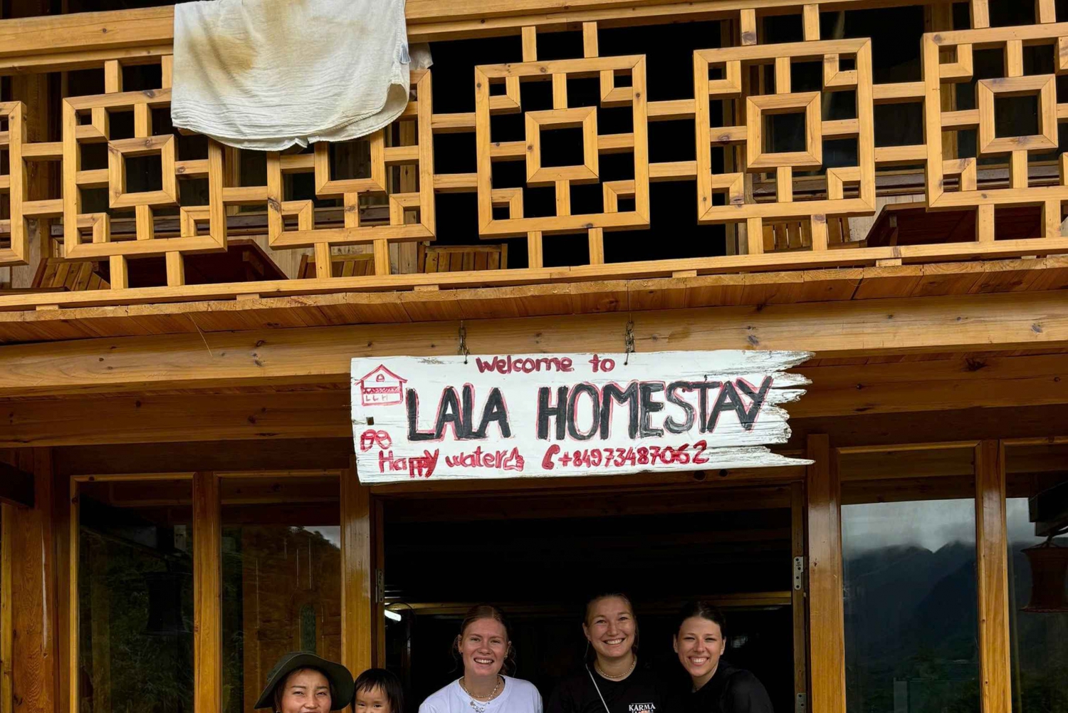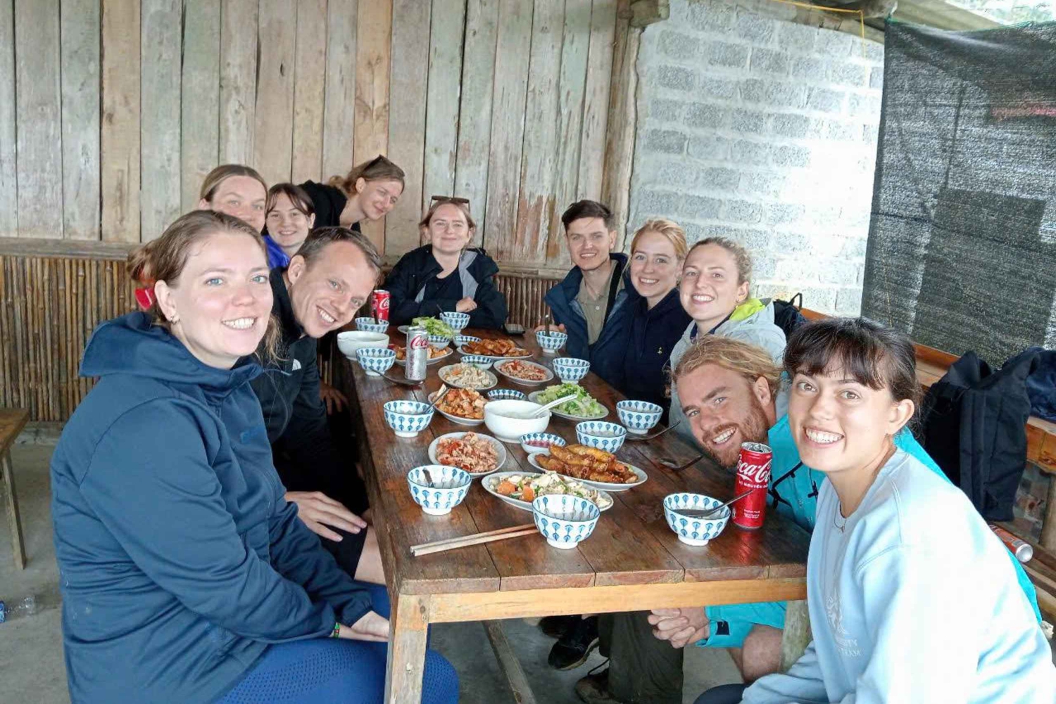 ツアー概要 サパの息をのむようなムオンホア渓谷をトレッキングし、3つのユニークな少数民族コミュニティを訪れ、温かい地元のホームステイで一夜を過ごします。見事な棚田、滝、竹林が皆様をお待ちしております! ※サパに宿泊施設をお持ちの方は、荷物をそちらにお預けください。早朝到着の場合、当方ホームステイへの手荷物配送を手配いたします(バイク1台あたり50,000VND、大型リュック2個まで)。 ***次回のカットバ島またはハザンループツアー参加で割引価格 1日目 – サパ → イ・リン・ホー村 → ラオチャイ村 → タヴァン村(約12km、5~6時間) 09:00 – サパ教会前集合。ムオンホア渓谷を一望できる棚田が広がる山々を南東へトレッキング開始。 * サパのムオンホア渓谷は、果てしなく続く棚田、秘境の少数民族の村々、霧に包まれた山々が織りなす息をのむような景観で、四季折々に自然の美の新たな絵巻を描きます。 イリンホ村 – 黒モン族の故郷。棚田に囲まれた伝統的な木造・竹造りの家屋をご覧いただけます。 ラオチャイ村 – モン族最大の集落の一つ。古代の石彫刻と活気ある谷間の生活をご覧いただけます。 タヴァン村 – ジャイ族とモン族の故郷。吊り橋を渡り、緑豊かな谷間を散策し、温かい家庭のホームステイにご宿泊ください。 夕方 – ベトナム料理教室(春巻き作り)にご参加いただき、その後、心温まる夕食をお楽しみください。 2日目 – タヴァン村 → ジャンタチャイ村 → スパン村 → サパ(約6km、3~4時間) 朝 – 自然の音で目覚め、手作り朝食をお楽しみください。 ジャンタチャイ村 – 赤い頭飾りと薬草風呂の伝統で知られるレッドダオ族との交流。滝を通り過ぎ、吊り橋を渡り、竹林を歩くトレッキング。 スパン村 – 穏やかな丘の上の集落で、谷の眺めが一望できます。小さな家族経営のレストランで昼食。 14:30 – バスでサパ教会へ戻ります。 このツアーの魅力 ✅ 黒モン族、ジャイ族、赤ダオ族との出会い。 ✅ 棚田、渓谷、滝、竹林を歩くトレッキング。 ✅ 家族経営のホームステイでの料理教室と宿泊体験。 ✅ 少人数グループでよりパーソナルな体験を。 ✅ 安全・快適さ・現地の秘話を伝える地元ガイド同行。 ご注意事項 中程度の難易度のトレッキングです。起伏のある道や自然の地形が予想されます。高級リゾートと比べると設備は簡素な場合があります。悪天候時は安全のためガイドがルートを変更する場合がございます。Includes