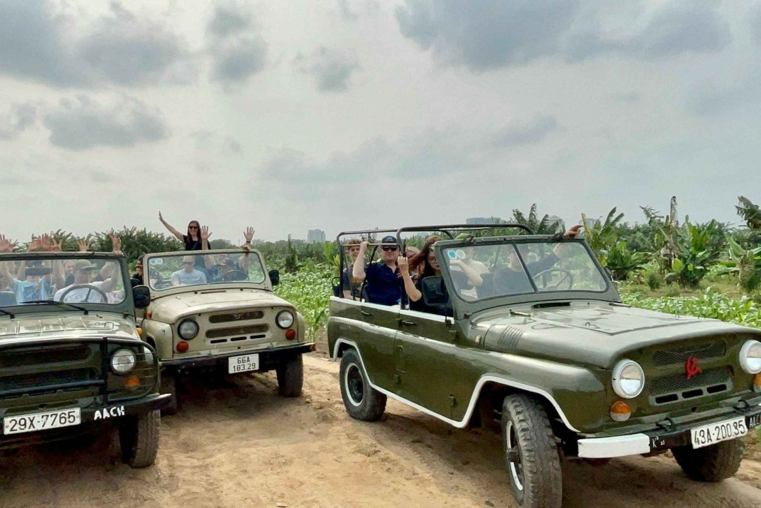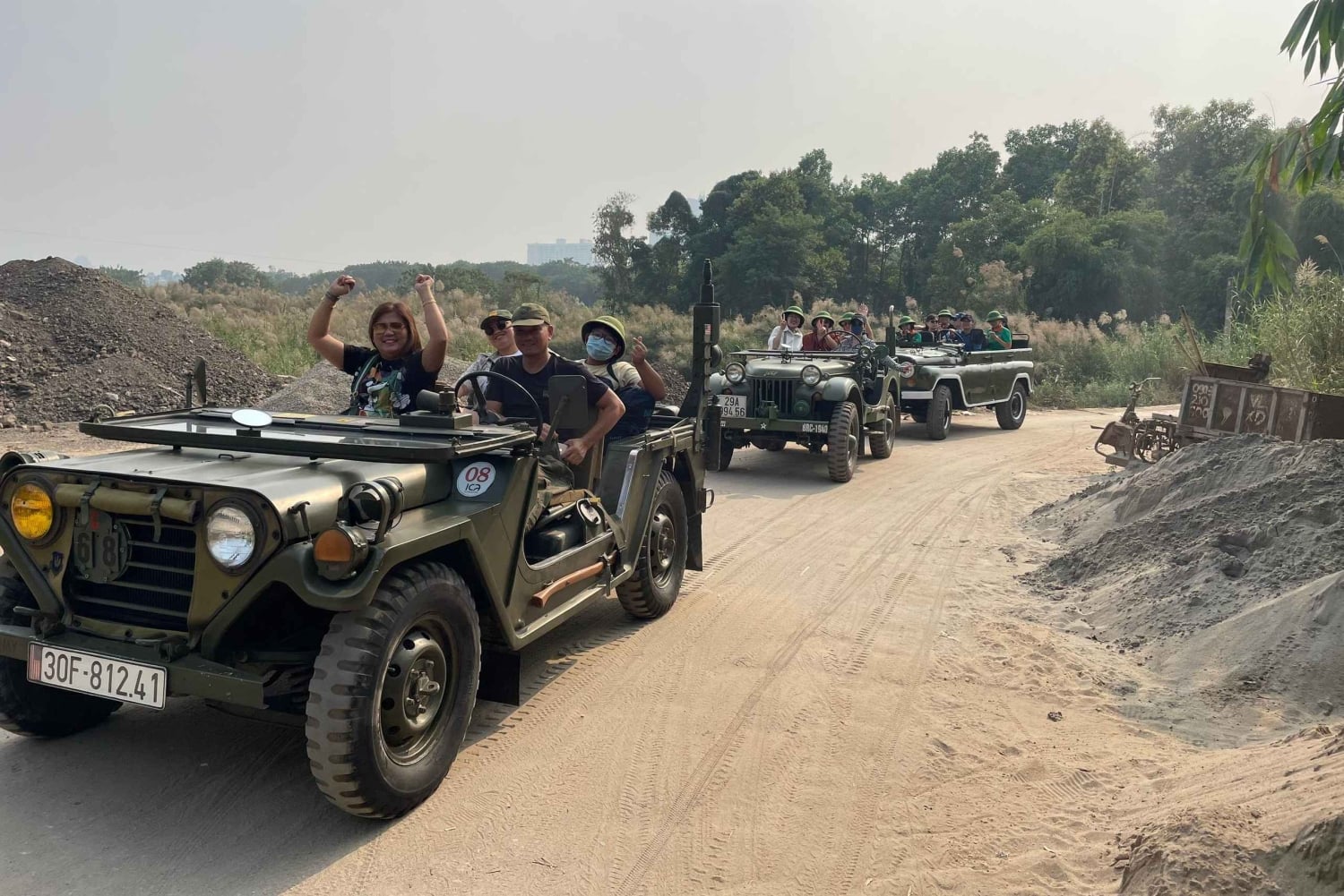 ハノイ ジープ ツアーの最初の部分では、ベトナム最大の劇場であるハノイ オペラ ハウスをご案内します。この劇場は、歴史的、建築的なランドマークであると同時に、ハノイの観光名所でもあり、さまざまな重要なイベントが開催されてきました。私たちは、裏通りの迷路、小さな路地、地元の家、学校、ランダムな市場、闇市場などの生活の断片をフィーチャーした 1 日の体験で、本当のハノイを体験していただきます。地元の人々がどこでどのように暮らし、働き、遊んでいるかを体験してください。他の旅行会社は、美しいところだけを見せて、目的地の悪いところや奇妙なところからは逃げるように言います。 ハノイ ジープ ツアーの旅では、良いところを見せるだけでなく、目的地の悪いところや奇妙なところもそのままお見せします。私たちにとって、ありふれた観光地は氷山の一角に過ぎず、目的地の大部分は未知の部分に隠されたままです。 ハノイジープツアーの後半では、美しい街の必見スポットを通り過ぎたり、立ち止まったりします。途中、ベトナムのホーチミン廟の聖地であるホーチミン廟を通過します。ホーチミン廟は、ホーチミンが亡くなった後も遺体を保管するために建てられた神聖な場所で、ベトナムが統一されるのを見てホーチミンが何らかの形で満足感を得られるよう建てられました。その後、ハノイの2つの美しい湖の間にある、市内で最も美しい通りの1つであるタンニエン通りを案内します。その後、ハノイの隠れた魅力と呼んでいるバナナアイランドに移動します。中心部からわずか3.4kmほど離れていますが、景色は現代の都市とはまったく異なります。農場を訪れ、地元の人々の家を見学し、地元の人々と話して彼らのライフスタイルを知ったり、彼ら自身が育てたオーガニックのトロピカルフルーツを楽しんだり、緑茶を試飲したりする機会があります。その後、西湖とチュックバック湖周辺の静かで魅力的な郊外の村々にもお連れし、市内中心部と郊外の生活の調和のコントラストについて豊かな体験をしていただきます。その後、ヴァンニエンパゴダ(1000年の歴史を持つ仏教パゴダとしても知られています)を訪れ、その魅力について学びます。ヴァンニエンパゴダはハノイで最も古いパゴダの1つです。 ハノイジープツアーの3番目の部分では、移動中に、ハノイ通りで最も美しい盆栽通りであるホアンホアタムをご覧いただけます。新鮮な緑の木々と色とりどりの花に感動することでしょう。私たちのジープは、ハノイの裏通りを通り、ハノイの小さな路地を見て回り、ベトナム人によって撃墜されたB52アメリカの航空機、市内の新しい場所に何千もの超高層ビルが建ち並ぶハノイの喧騒など、ハノイの隠れた静けさを体験していただきます。これは乗車するだけでなく、昔、今、そして昔のハノイについて学ぶ旅でもあります。 最後のパートでは、地元のレストランで昼食をとり、ブンチャーを楽しみ、その後ホテルに戻って旅を終えます。Includes