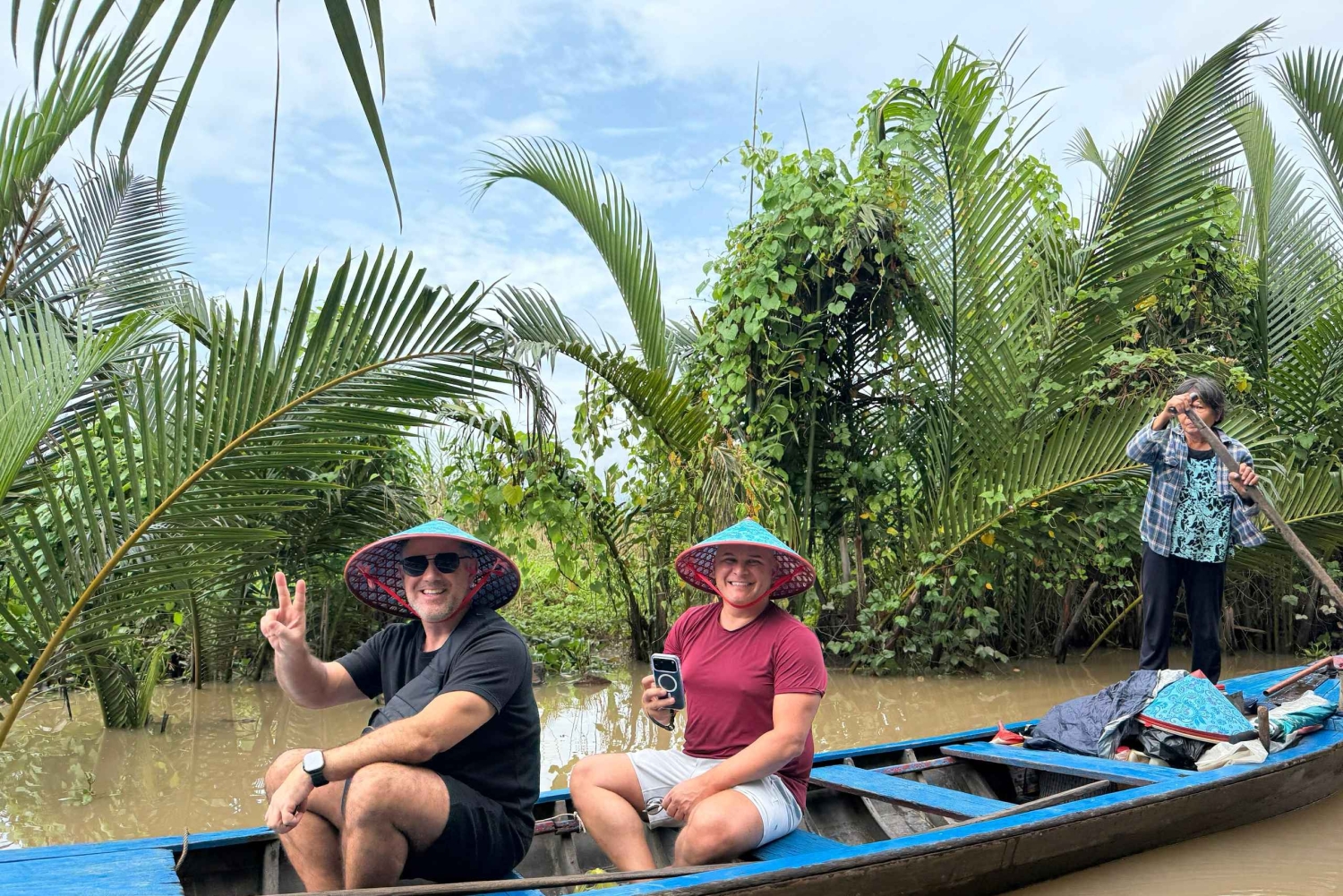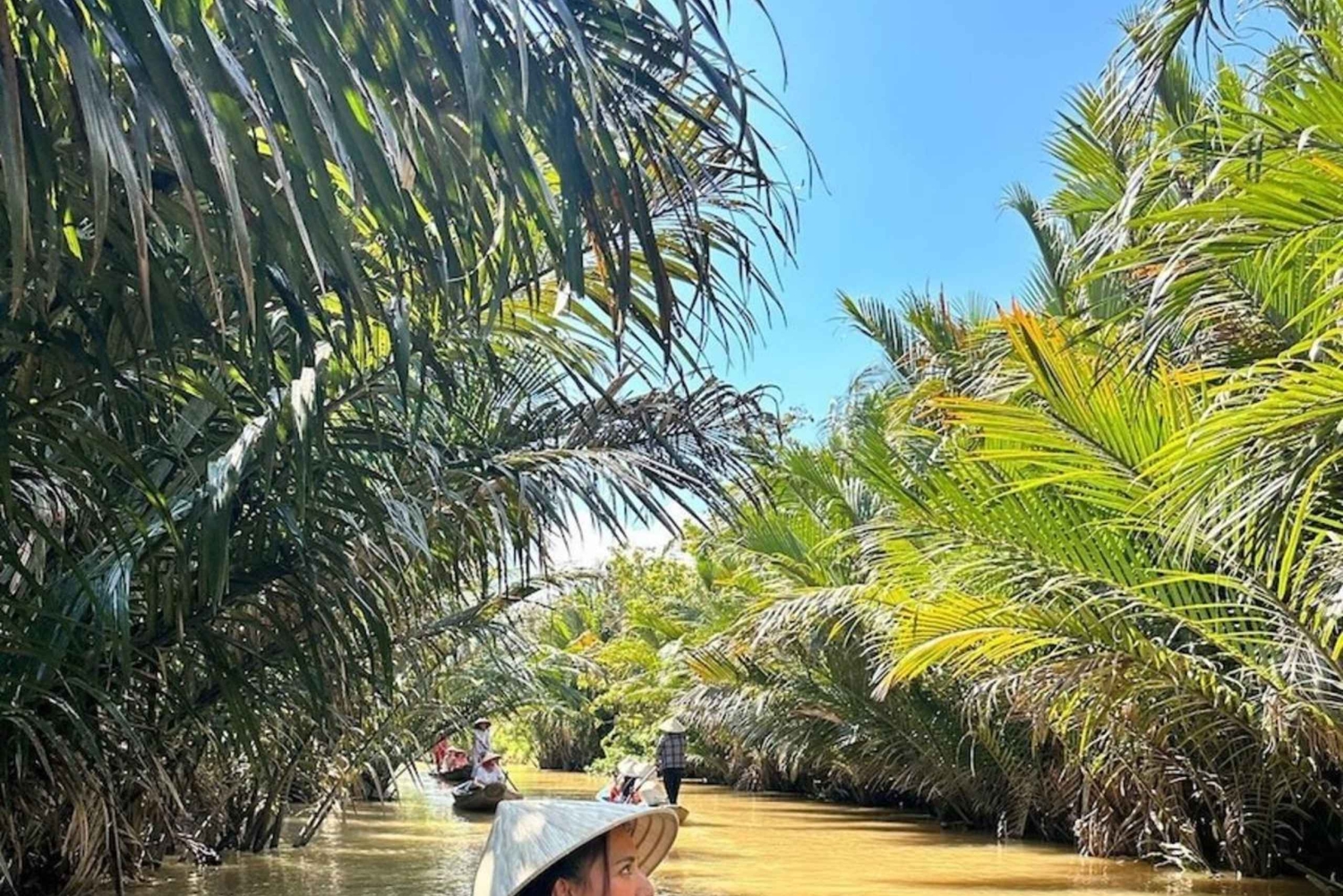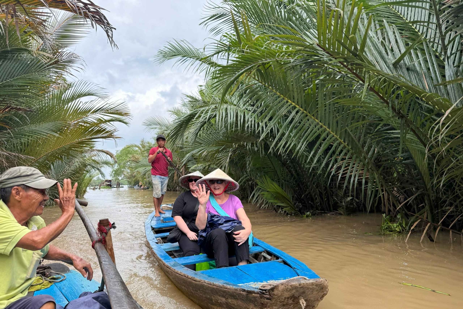 午前7時30分頃にホーチミン市中心部のホテルにお迎えに伺い、エアコン付きのバスでメコンデルタへ向かいます。複雑な建築と穏やかな雰囲気で知られるヴィンチャン寺をご訪問ください。 続いて、デルタの中心部にあるミトーへ向かいます。モーターボートでメコン川をクルーズし、緑豊かな静かな村に囲まれた狭い運河をサンパンでご乗船ください。 ユニコーン島では、伝統的な民族音楽、トロピカルフルーツ、ハニーティーをお楽しみいただいた後、地元のレストランで昼食をお召し上がりください(ヴィーガン料理もご用意できます)。昼食後は、ココナッツ産業で有名なベンチェへ移動いたします。 ココナッツ・キングダムを訪れ、ココナッツキャンディーやその他の製品がどのように作られているかをご覧いただき、この地域のココナッツ文化について学びましょう。新鮮なココナッツドリンクをお楽しみいただいた後、ホーチミン市へ戻ります。到着は午後4時50分頃となります。Includes