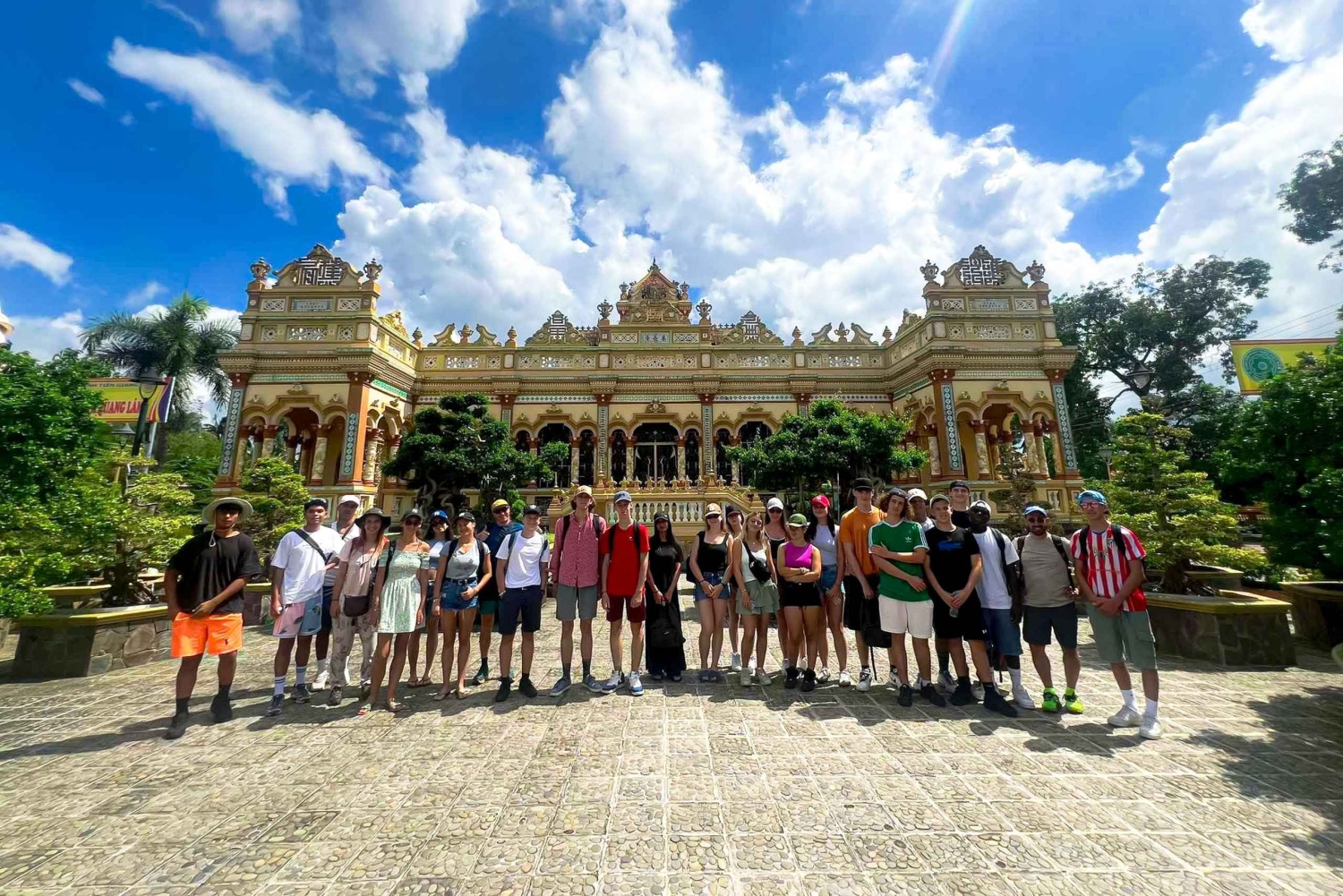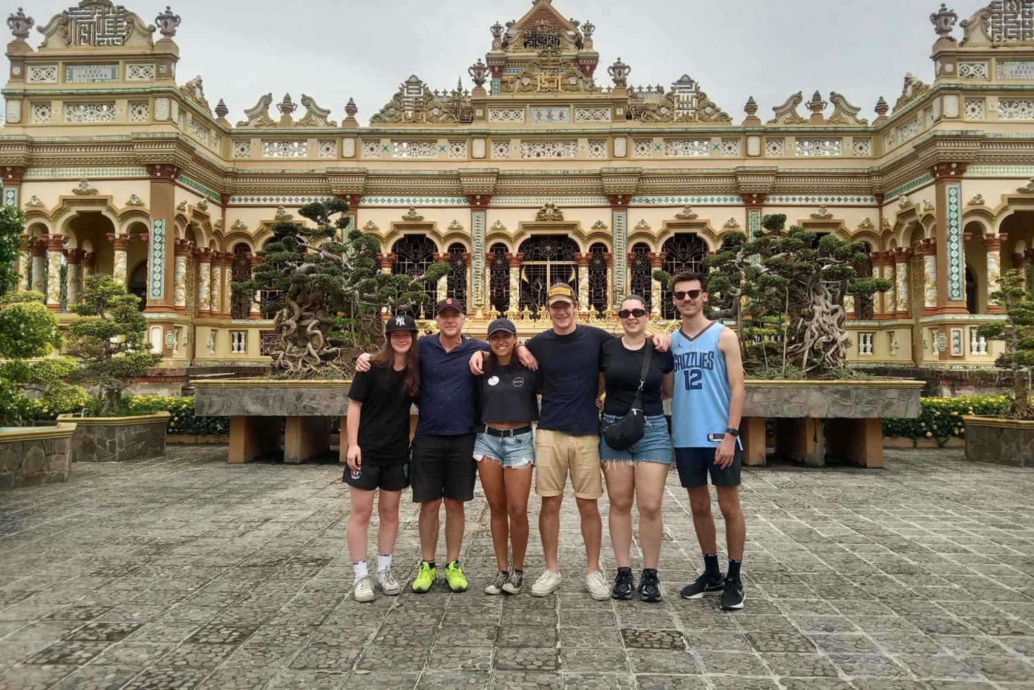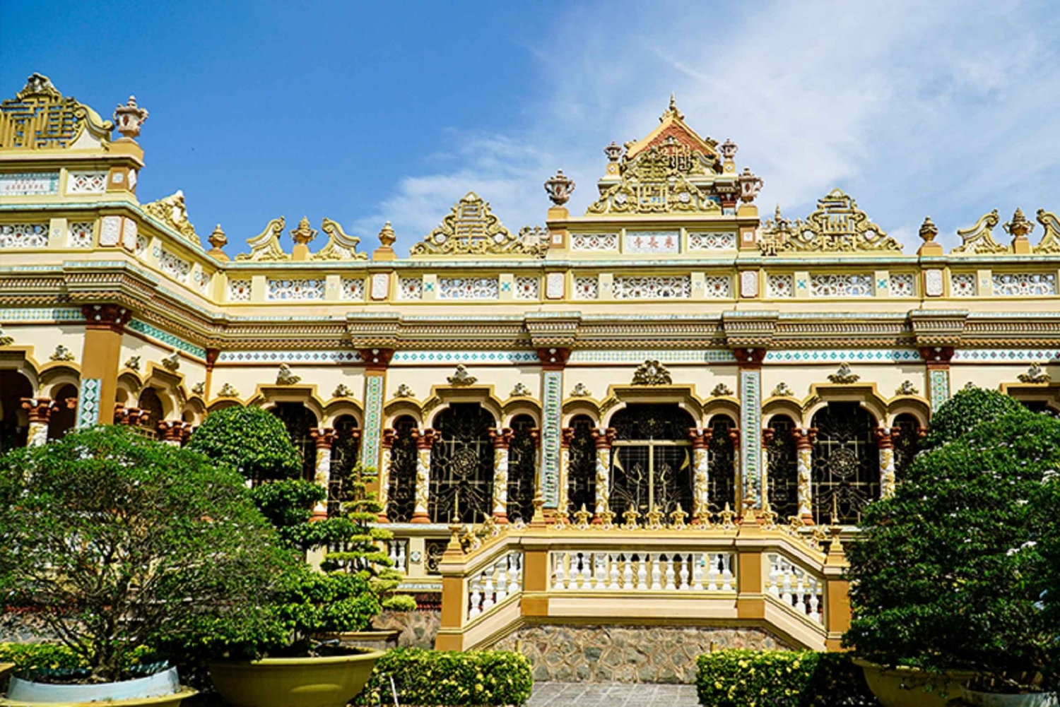午前7時30分頃にホーチミン市中心部のホテルにお迎えに伺い、エアコン付きのバスでメコンデルタへ向かいます。複雑な建築と穏やかな雰囲気で知られるヴィンチャン寺をご訪問ください。 続いて、デルタの中心部にあるミトーへ向かいます。モーターボートでメコン川をクルーズし、緑豊かな静かな村に囲まれた狭い運河をサンパンでご乗船ください。 ユニコーン島では、伝統的な民族音楽、トロピカルフルーツ、ハニーティーをお楽しみいただいた後、地元のレストランで昼食をお召し上がりください(ヴィーガン料理もご用意できます)。昼食後は、ココナッツ産業で有名なベンチェへ移動いたします。 ココナッツ・キングダムを訪れ、ココナッツキャンディーやその他の製品がどのように作られているかをご覧いただき、この地域のココナッツ文化について学びましょう。新鮮なココナッツドリンクをお楽しみいただいた後、ホーチミン市へ戻ります。到着は午後4時50分頃となります。Includes