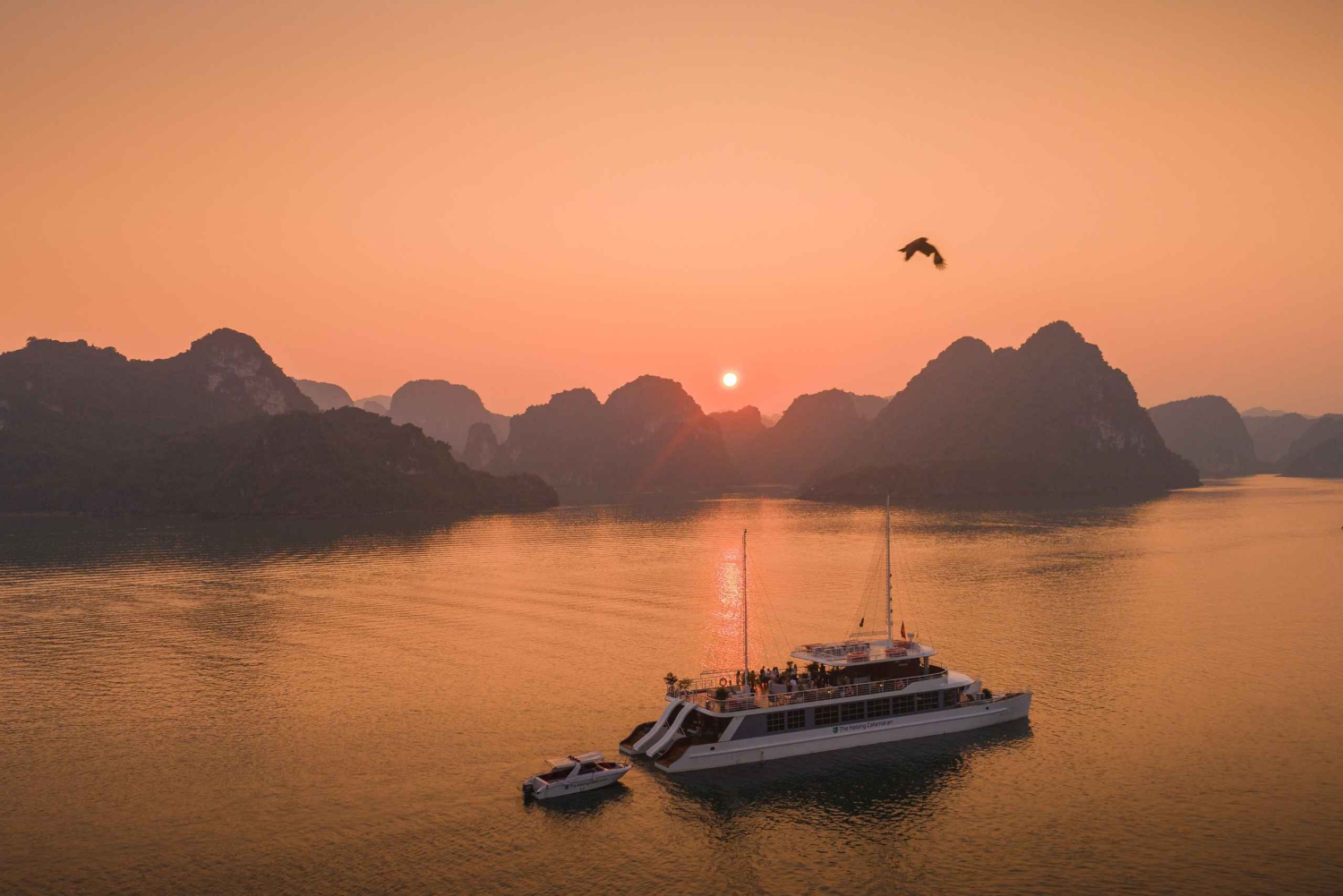 DAG 1: HANOI - CATBA - LAN HA BAAI - DINEREN IN DE PARADIJSGROT OCHTEND: SCHILDERACHTIGE REIS NAAR CATBA 7:15 - 7:40 AM | Hanoi Pick-Up Begin je avontuur met een handige ophaalservice vanuit de oude wijk van Hanoi. 9:00 - 9:15 AM | Snelle verfrissingsstop Neem een lokale snack of koffie om je reis te beginnen. 10:00 - 10:30 AM | Laatste boottocht in Vietnam Vaar langs drijvende vissersdorpjes en bewonder een van de hoogste kabelbanen ter wereld. oceaanoverspannende kabelbaan. 10:30 - 11:00 | Toeristische kustrit Geniet van de meest schilderachtige kustroute in Noord-Vietnam, met panoramische uitzicht op de smaragdgroene zee en ruige bergen. 11:00 - 11:15 AM | Welkom aan boord 5 Sterren Stap aan boord van onze cruise, nip van een welkomstdrankje en bereid je voor op een onvergetelijke cruise door Lan Ha Bay. 10:30 : Kajak door verborgen lagunes, tunnels en bogen: K.A grot en Vleermuisgrot. MIDDAG: VERKENNING VAN LAN HA BAAI 11:45 AM - 12:30 PM | Cat Ba Zeevruchten Buffet Geniet van een vers visbuffet terwijl je langs Cai Beo Fishing Village en Schildpaddeneiland. 12:30 - 14:00 uur Fiets en ontdek Viet Hai dorp Fiets door het Cat Ba National Park, ervaar het lokale leven en geniet van een vis spa massage in een verborgen jungle dorp. 14:00 - 15:45 PM | Kajakken & Strandavontuur Peddel door verborgen grotten, zwem in kristalhelder water of probeer bootje springen, waterglijbanen of een drijvende trampoline. 15:45 - 16:45 uur Feest bij zonsondergang op het strand Drink cocktails, dans op muziek en geniet van het beste uitzicht op de zonsondergang in Lan Ha Bay. 17:15 - 17:30 Inchecken in hotel op Cat Ba Een vlotte transfer naar je gezellige hotel op Cat Ba eiland om te ontspannen voor het avontuur van de nacht. avontuur. AVOND: DINERERVARING IN DE PARADIJSGROT 18:00 - 18:30 uur Reis naar de Paradijsgrot Stap aan boord van een mooie shuttle door de landschappen van Cat Ba om onze exclusieve grot eetgelegenheid te bereiken. 18:30 uur Welkom in de grot Stap een adembenemende natuurlijke grot binnen, versierd met subtiele verlichting, die de het decor voor een magische avond. 18:45 uur Privédiner in de grot Geniet van een overdadige dinerervaring in een verborgen kamer, omringd door prachtige rotsformaties en sfeervolle muziek. 20.15 uur Traditionele 'Rượu Cần' Wijnproeverij 20:30 uur Vrije tijd en foto's in de grot 21:00 uur Shuttle terug naar hotel Terugkeer voor een goede nachtrust, klaar voor een nieuwe dag vol avontuur. DAG 2: CATBA - HANOI 6:30 - 8:30 AM | Ontbijt in het hotel Begin je ochtend met een ontbijtbuffet, omringd door uitzicht op de oceaan. 8:30 - 10:00 AM | Bezoek aan de lokale markt Verken de levendige markt van Cat Ba Town en ontdek verse producten, zeevruchten en handgemaakte souvenirs. handgemaakte souvenirs. 10:00 - 11:00 AM | Vrije tijd op het eiland Geniet van een strandwandeling, ontspan met een kopje koffie of maak nog een paar laatste foto's. 11:00 - 12:00 uur Afscheidslunch Geniet van een laatste maaltijd in het hotel, met authentieke Cat Ba gerechten. 12:00 - 12:30 PM | Vertrek naar Hanoi Stap aan boord van je transfer terug naar Hanoi, nagenietend van je avontuur. 15:30 - 16:00 uur Aankomst in de oude wijk van Hanoi Kom terug in Hanoi met herinneringen voor het leven.Includes