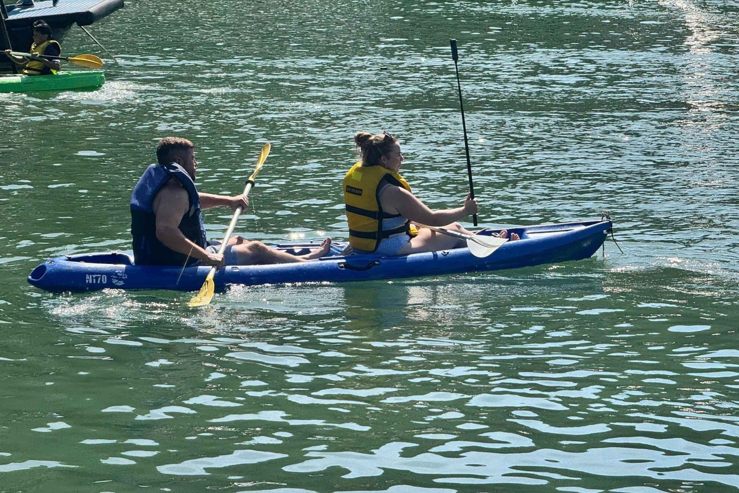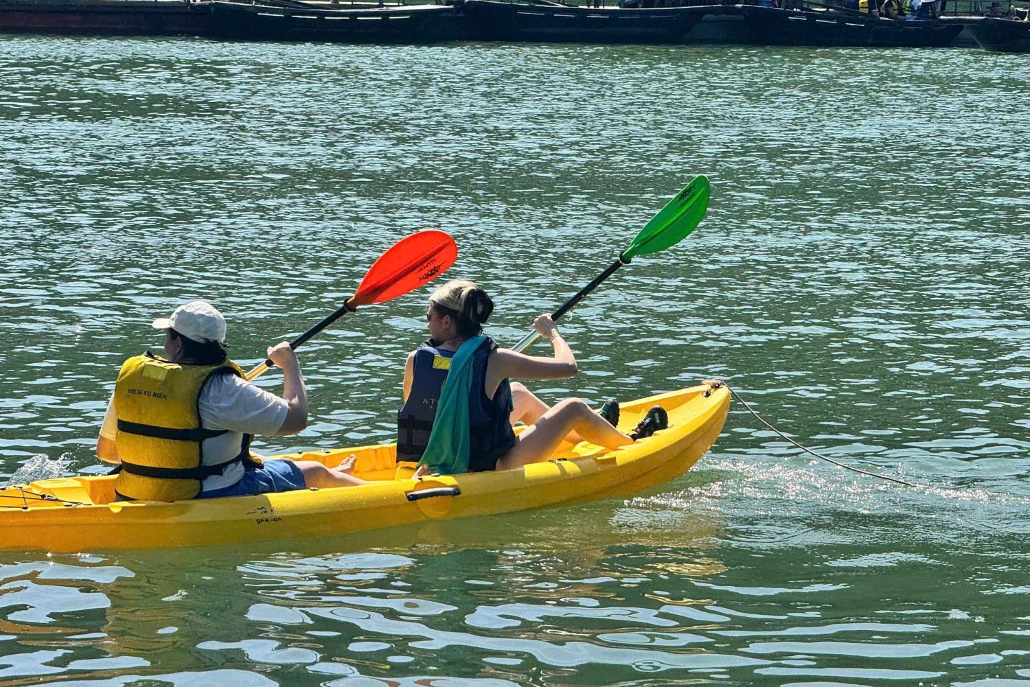 - Peddel met een kajak door de kalme wateren van Bai Tu Long Bay.
