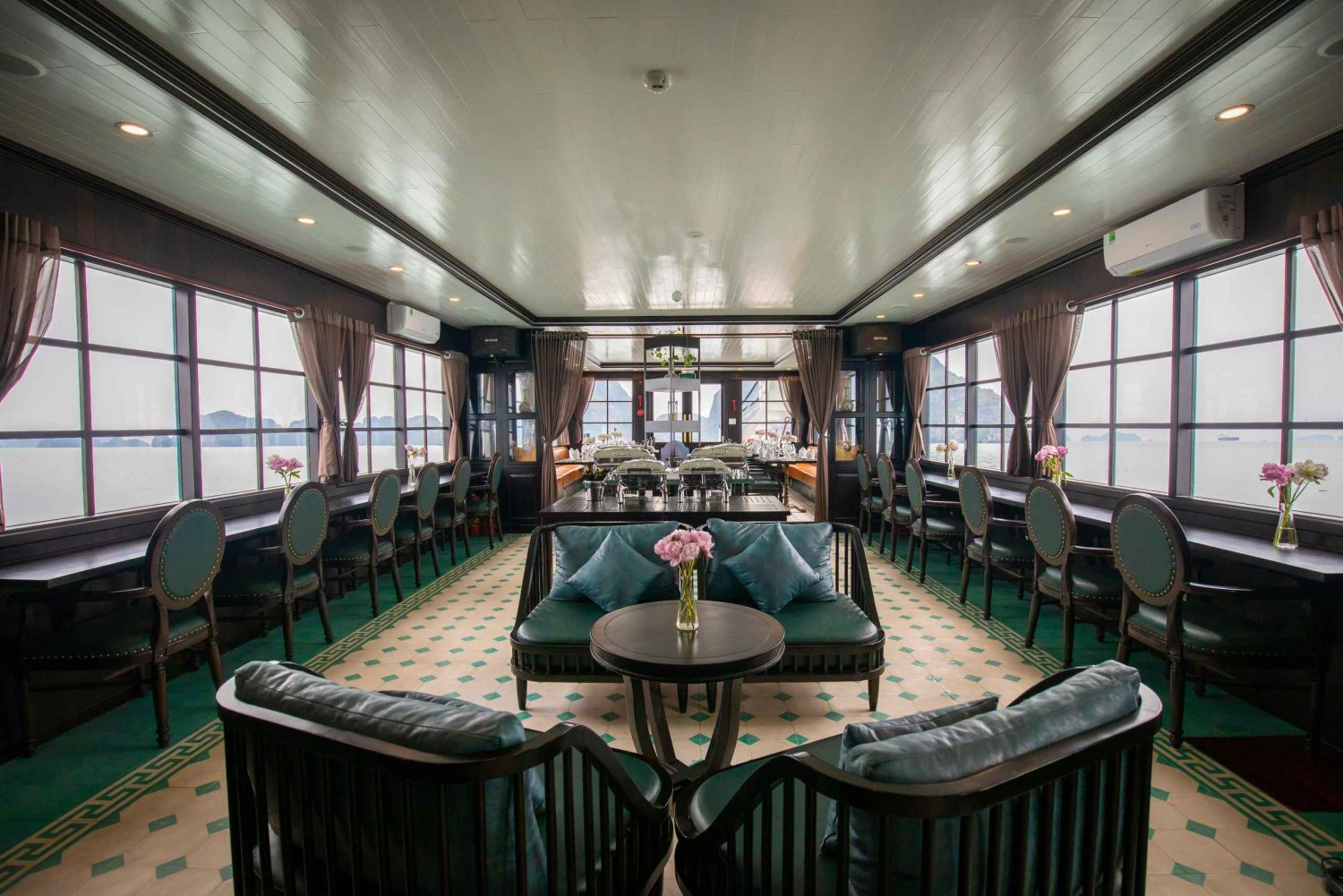 8:00-8:30 uur. De chauffeur haalt je op bij je hotel in de oude wijk. Voor gasten buiten de oude wijk is er een trefpunt. Je begint dan aan een reis van 2,5-3 uur naar de provincie Quang Ninh via de snelweg, met een korte stop onderweg om je benen te strekken. 11:45-12:00 uur: Aankomst in de haven van Ha Long Bay – Ga aan boord van de cruise. De boot begint te varen. 12:30-13:30: Lunch aan boord (vegetarisch beschikbaar) terwijl je langs iconische kalksteen eilandjes vaart zoals Mat Quy eilandje, Teapot eilandje.... Bezoek de Thien Canh Son-grot - een van de mooiste kalksteengrotten met een goed ontwikkeld karstterrein. Vervolgens ontdek je de baai per kajak. Daarna kun je lekker ontspannen aan boord en varen naar het eilandje Dragon Head, en daarna naar het eilandje Toad, richting de haven. 17:30 -18:00 uur: Ga terug naar de haven en stap in de bus om terug te keren naar Hanoi. De chauffeur en tourgids zetten je af bij je hotel in de buurt van de oude wijkIncludes