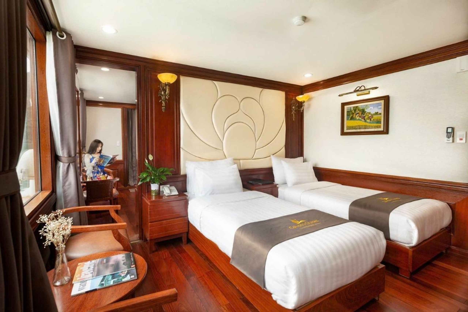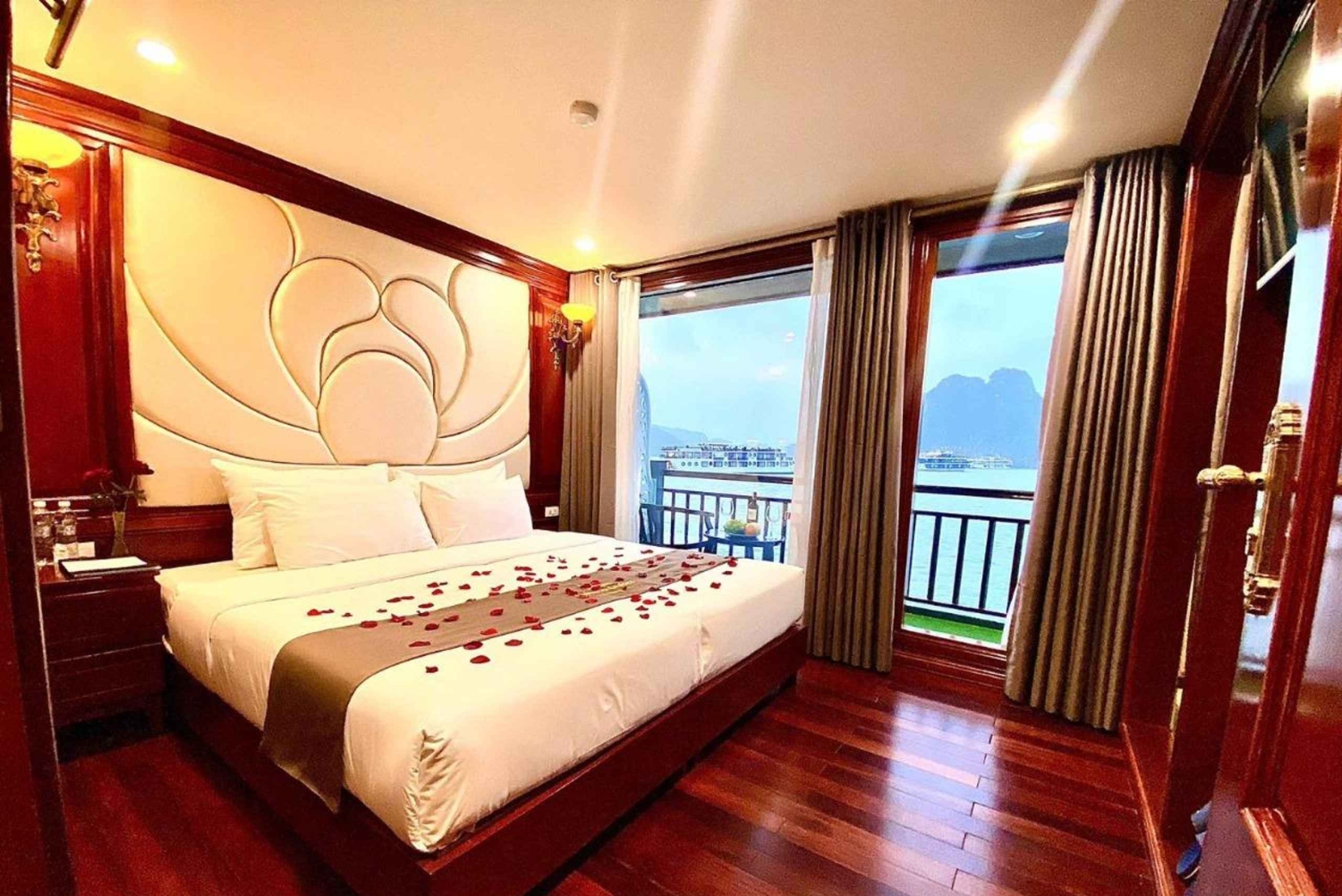 Maak een reis door Lan Ha en Ha Long Bay op een 5-sterren luxe cruise vanuit Hanoi. Stap aan boord van een ruime en goed ingerichte boot met moderne faciliteiten, waaronder een ruim zonnedek en een restaurant.