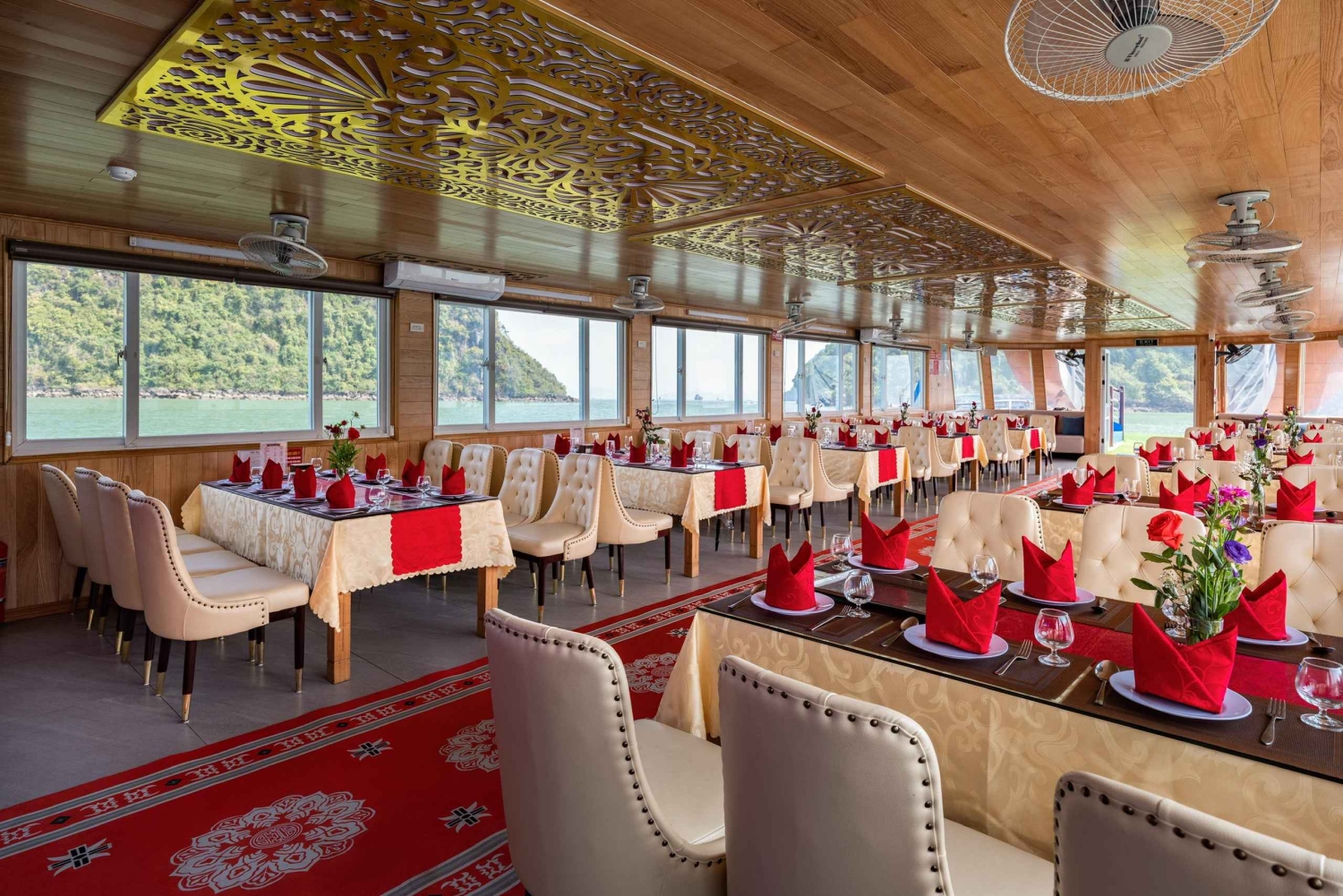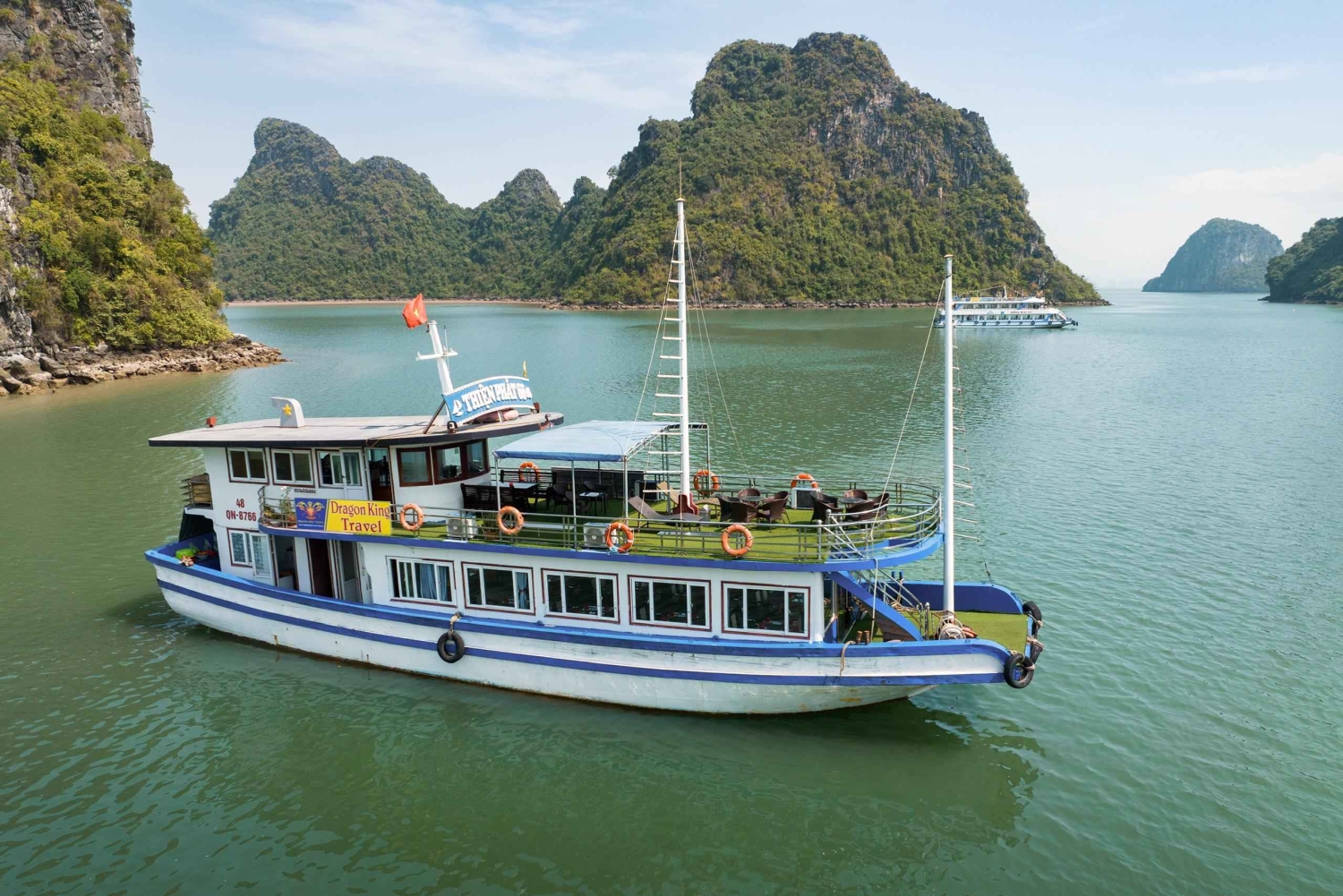 - Voel de warme zon en de koele bries terwijl je langs Halong Bay vaart