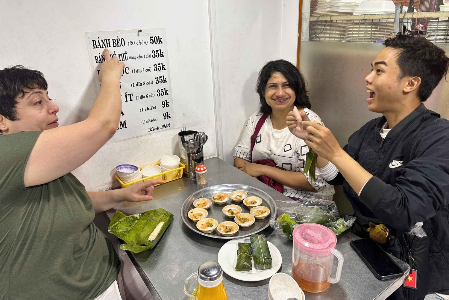 Ontmoet je gids bij Turtle Lake en begin je reis door de verborgen steegjes van Saigon. Begin bij Graffiti Alley, waar kleurrijke streetart-muren en indiecafés een levendige sfeer creëren. Ga vervolgens naar Tân Định Market om bò bía (verse loempia's) of bánh cam (sesambol) te proeven. Stap vervolgens een familietempel en een verborgen Chinees heiligdom binnen om meer te weten te komen over voorouderverering en wierookrituelen. Ga verder naar de Nguyễn Thiện Thuật Apartments, waar oude trappen, balkons met wasgoed en straatverkopers een authentieke kijk bieden op het dagelijks leven. Probeer een kleine portie bánh xèo mini of chuối nướng (gegrilde banaan in kokossaus) bij een nabijgelegen streetfoodkraam. Bezoek een verborgen Chinees heiligdom, waar je taoïstische en Chinese invloeden ziet met wierookspoelen en rode lantaarns. Sluit je tour af in een steegjecafé, waar je kunt genieten van traditionele 'sokfilterkoffie' of ijsthee.Includes