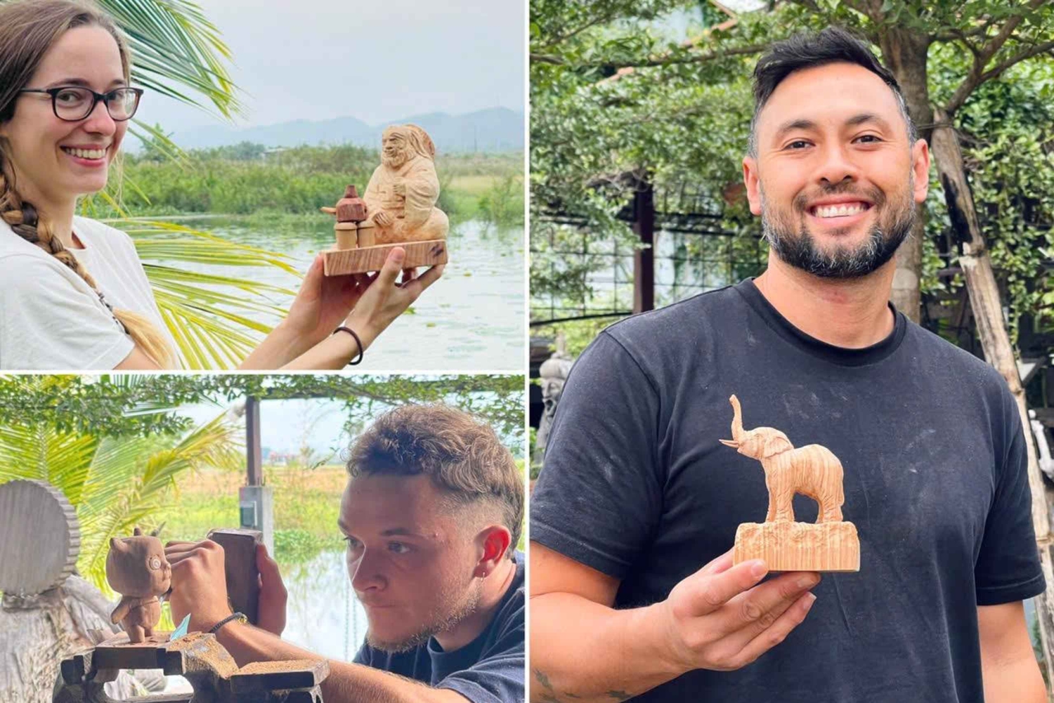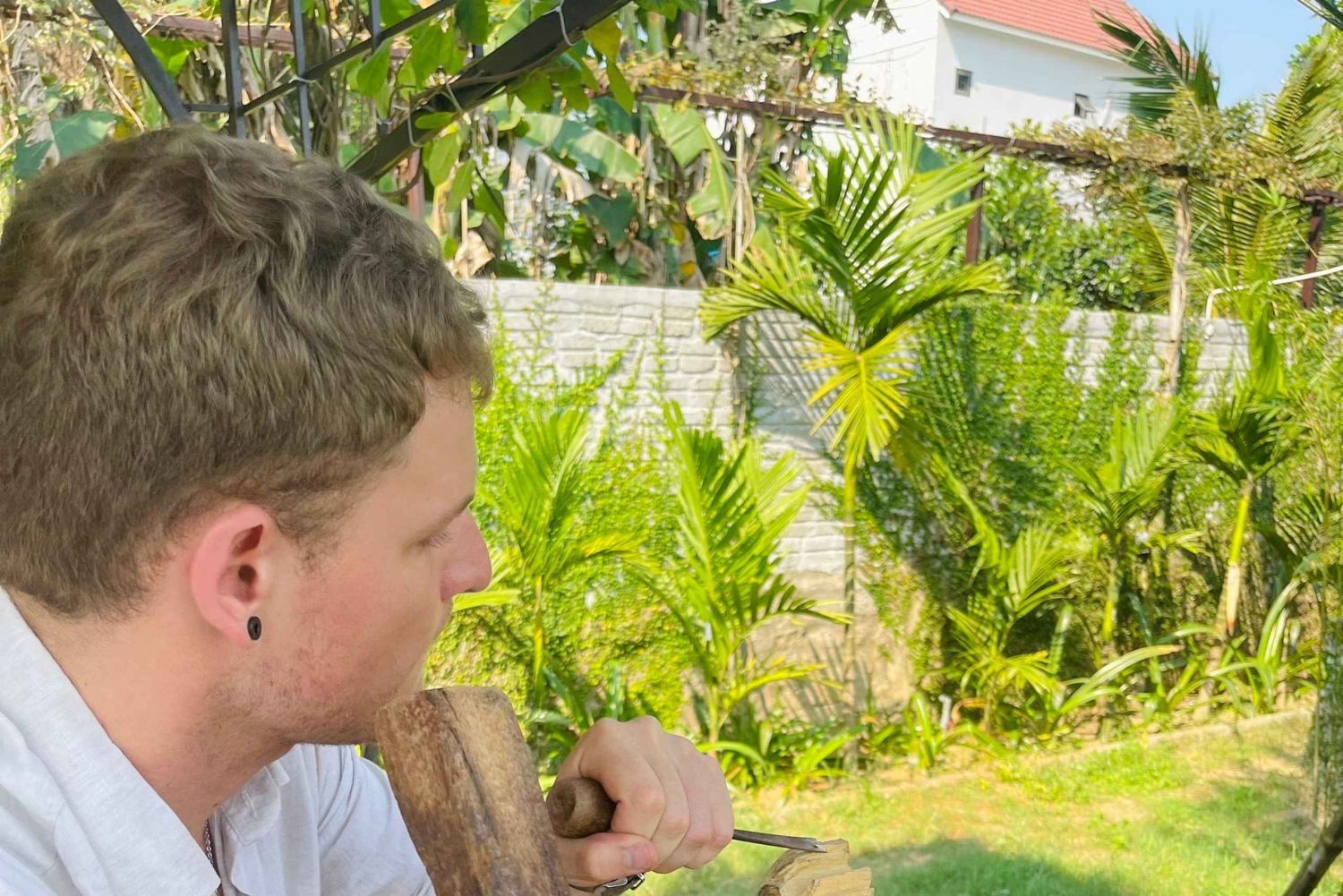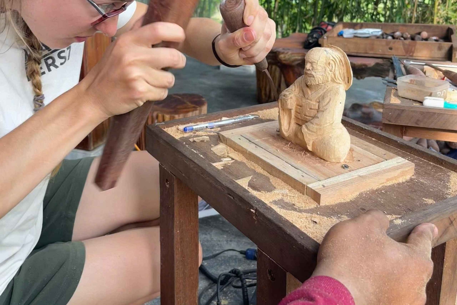 Ontsnap aan de toeristische drukte voor een creatieve dag in een serene werkplaats op 17 km van Hội An. Snijd een houten beeld met een plaatselijke kunstenaar in een praktische ervaring die cultuur, ambacht en landelijke charme combineert