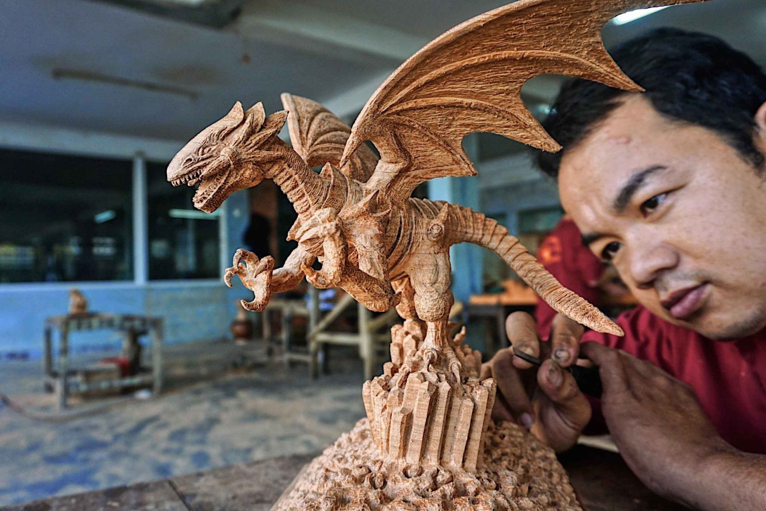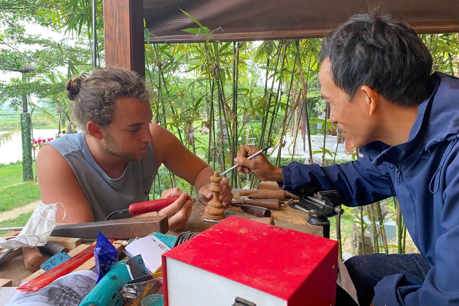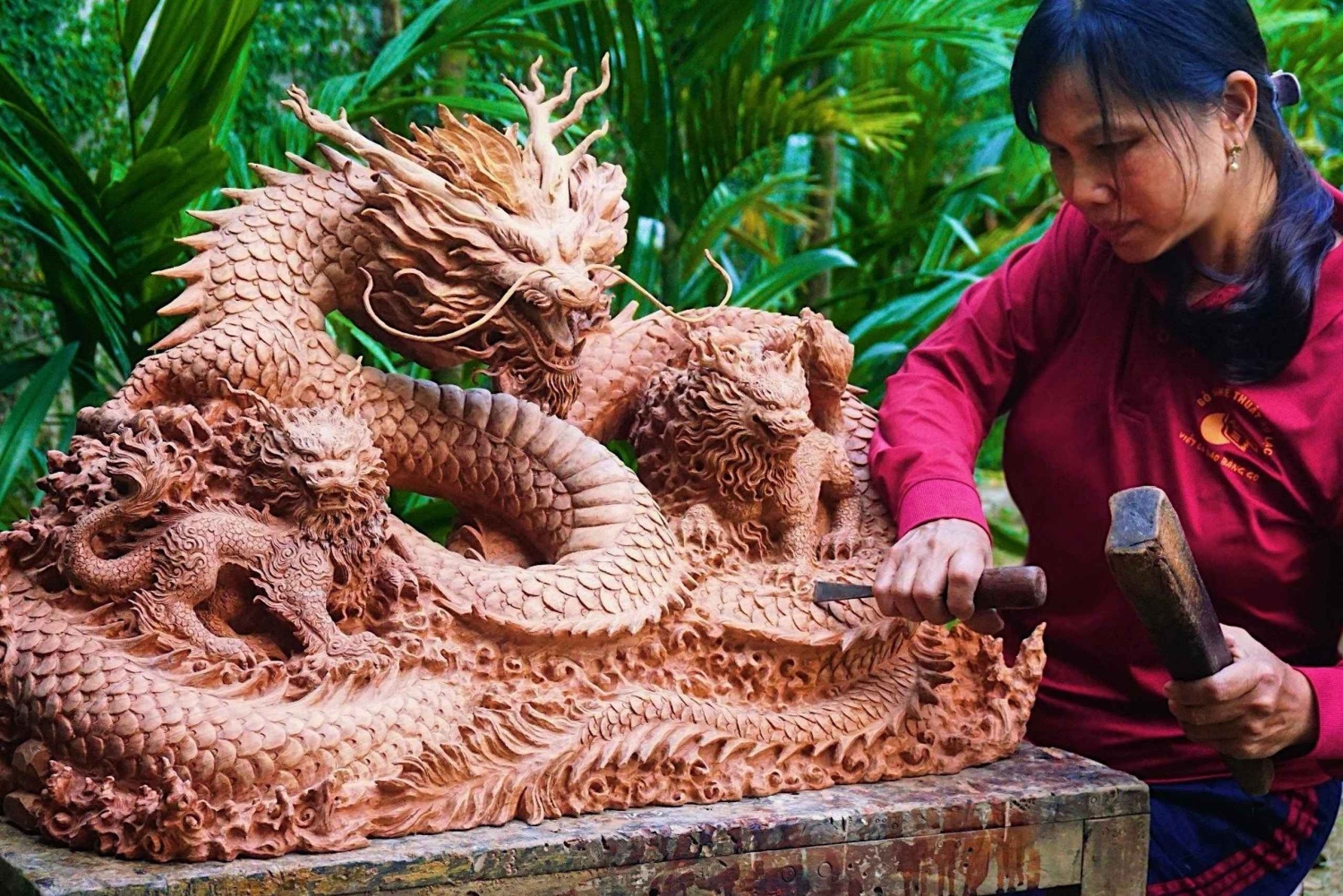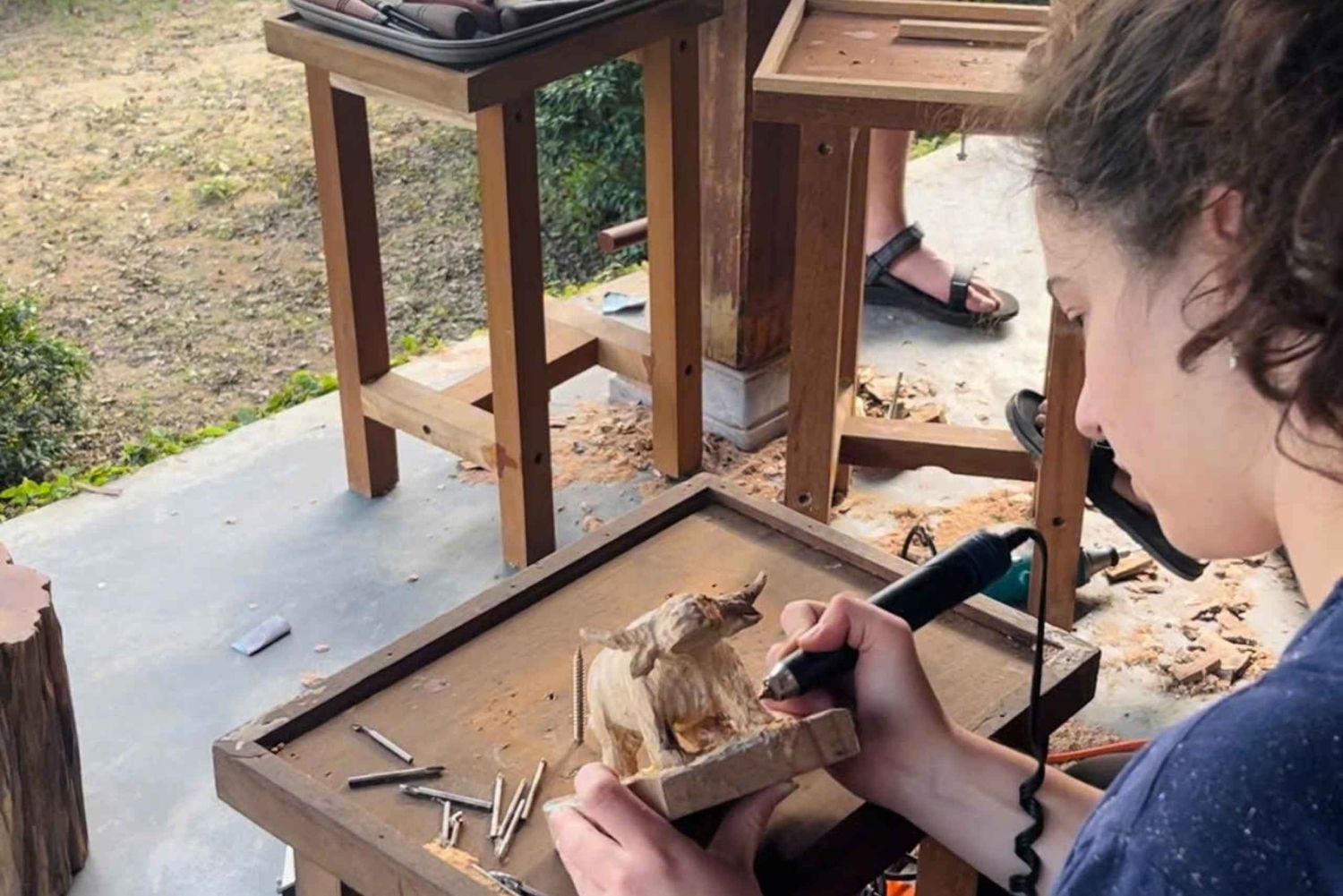 Ontsnap aan de toeristische drukte voor een creatieve dag in een serene werkplaats op 17 km van Hội An. Snijd een houten beeld met een plaatselijke kunstenaar in een praktische ervaring die cultuur, ambacht en landelijke charme combineert