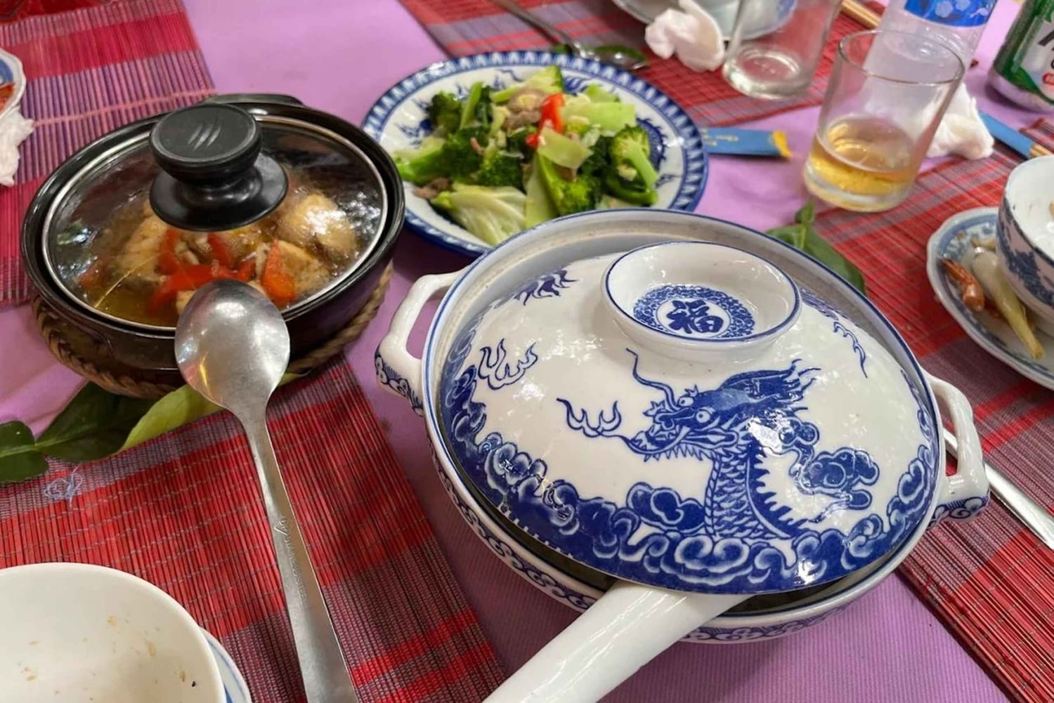 Ontdek de ziel van Hue in een traditioneel nha vuon (tuinhuis), liefdevol bewaard voor vijf generaties. Hier is de elegantie van de manier van leven van Hue door de tijd heen levend gehouden. Luister naar de fascinerende verhalen van de gastheer/-vrouw, een afstammeling van een lokale mandarijn, over de gerechten die ooit voor de koninklijke familie werden bereid. In deze serene omgeving word je verwelkomd als familie. Wandel door de weelderige tuin, pluk verse kruiden en groenten en zie hoe de koninklijke erfenis van Hue de keuken blijft inspireren. Neem deel aan een hands-on kookworkshop in de tuinbinnenplaats, onder begeleiding van de gastheer/-vrouw, en maak stap voor stap kenmerkende Hue-gerechten. Om de ervaring compleet te maken, geniet je van een ontspannen fietstocht door het dorp, langs rijstvelden, lotusvijvers en rustige laantjes, waar je je kunt verbinden met het vredige ritme van het plattelandsleven.Includes