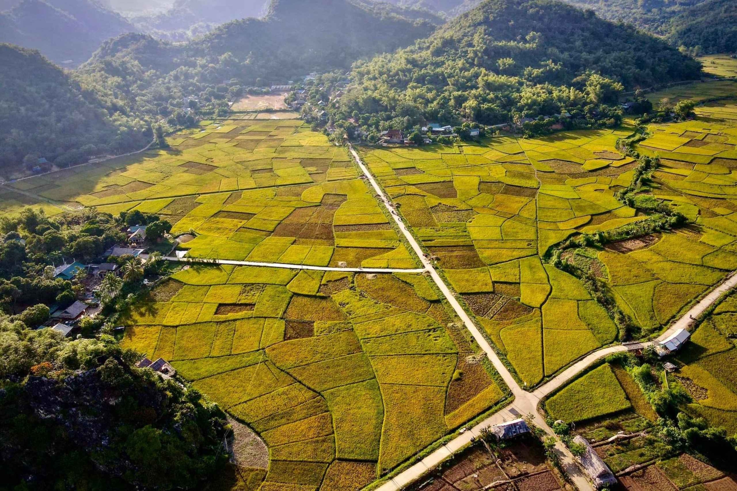 Maak een dagtour van Hanoi naar het platteland van Mai Chau. Geniet van adembenemende landschappen, dompel jezelf onder in de wonderen van de Mai Chau-vallei en lunch met een lokale familie. Begin je dag met een ophaalservice bij je hotel in Hanoi. Ga naar Mai Chau. Maak onderweg een fotostop en bezoek de Muong-stammen en vervolgens de Thung Khe-pas voor een spectaculair uitzicht op de Mai Chau-vallei. Kom aan in Mai Chau en ontspan. Geniet van een authentieke lunch met een lokale familie van de Witte Thaise stam en geniet van wat vrije tijd om kennis te maken met de dorpelingen. In de namiddag fiets je door smalle dorpjespaden. Bekijk rijstvelden en kleine dorpjes, ontdek de natuurlijke schoonheid van de vallei en ontmoet de cultuur van de etnische Thaise minderheid tijdens bezoeken aan de Pom Coong- en Na Phon-dorpjes. Stap weer in de auto en rijd terug naar je hotel in Hanoi. Deze Mai Chau-dagtour eindigt rond 19:00 uur. LET OP: terrasvormige velden zijn alleen te vinden in Pu LuongIncludes