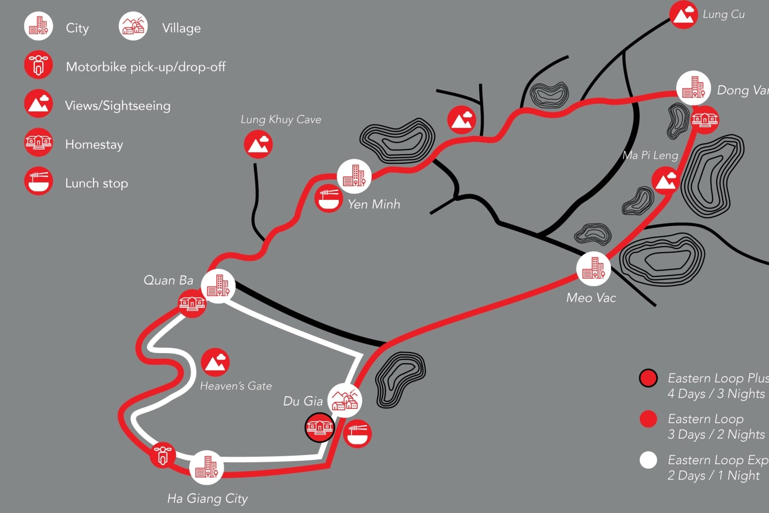 - Selv om du kan velge å kjøre din egen motorsykkel, anbefales dette kun for erfarne førere. Veiene på Ha Giang Loop kan være farlige. For å kjøre selv må du ha et internasjonalt førerkort som er sjekket og verifisert av Vietnam Policy på forhånd. Vi anbefaler at du tar turen med easy rider, selv om du er profesjonell. Ettersom du har mer tid til å ta bilder, trygt under turen. hvis du sykler selv, vil du ende opp veldig sliten og vil ikke nyte utsikten og opplevelsen i det hele tatt Du kan bare ta med deg en ryggsekk eller en liten overnattingsbag som veier opp til 22 lbs (10 kg). Ryggsekker eller bagasje kan oppbevares på aktivitetsleverandørens kontor i Hanoi og på Ha Giang Homestay under turen. Del rom med en medreisende av samme kjønn eller få en sovesalsseng. Mulig oppgradering til privat rom mot et pristillegg og forhåndsvarsel. 2-4... pax-bestillinger oppgraderes til privat rom for 2 Loop-netter gratis (2 pax/1 rom)