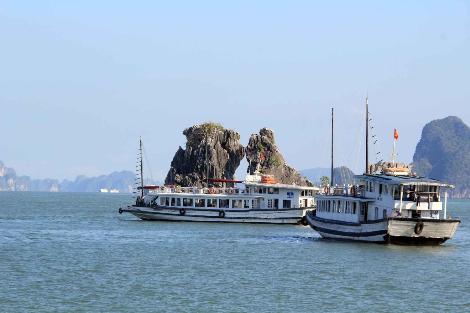 Oppdag alt Halongbukta har å by på på denne bestselgende turen. Start dagen med å bli hentet i en komfortabel skyttelbuss fra hoteller i Hanois gamlebydel. Når du ankommer havnen i Halongbukta, får du en velkomst- og sikkerhetsorientering. Deretter legger dere ut på en fem timer lang tur på en cruiserute som er kjent for sitt slående - og noen ganger til og med bisarre - landskap. Se på severdighetene, og gå gjennom passasjer med ubebodde holmer og skjær. Senere kan du nyte en typisk vietnamesisk lunsj om bord, og deretter besøke Surprise Cave, den vakreste grotten i Halong-bukten. Ta en tur opp og ned, hvis du ønsker det. Deretter besøker du Luon Cave (Tunnel Grotto), hvor du er velkommen til å padle kajakk (ekstra avgift). Hvis du er heldig, kan du få øye på noen ville dyr, blant annet aper og fugler. Deretter kan du ta en stopp på Titop Island, hvor du kan klatre opp til toppen og nyte den fantastiske panoramautsikten over Hanlong Bay. Du kan også ta en svømmetur på en strand i nærheten. Senere går du om bord igjen og cruiser tilbake til havnen. På vei tilbake kan dere oppleve en fantastisk solnedgang på øvre dekk, før dere setter dere på skyttelbussen for en behagelig retur til Hanoi.Includes