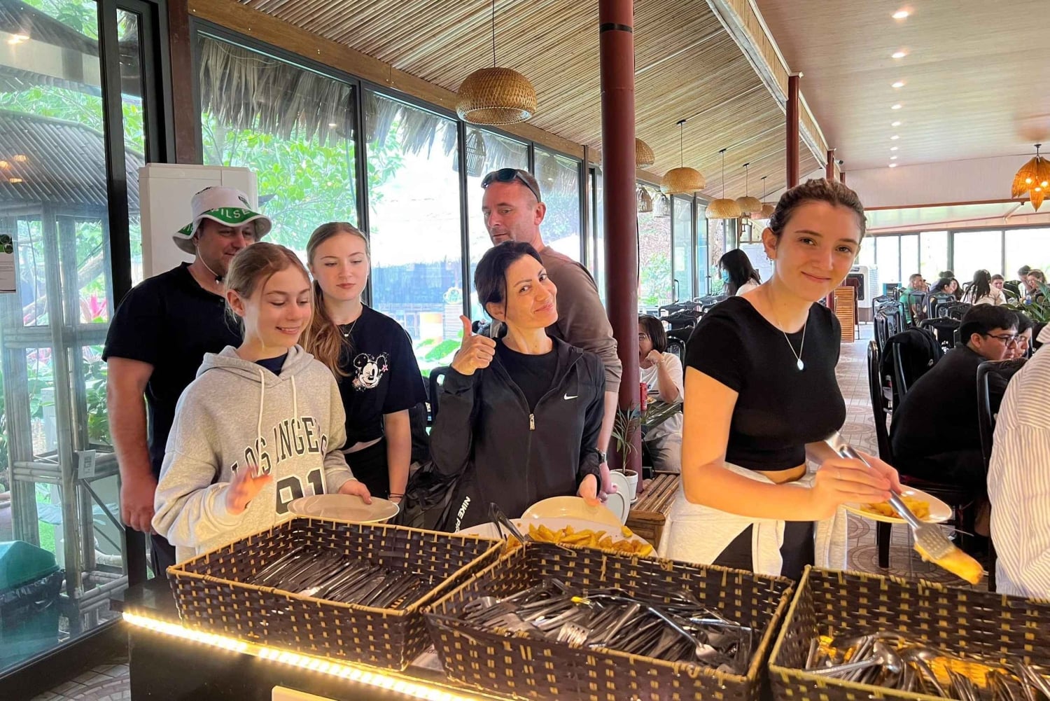 Bli med på en komplett tredagersreise som kombinerer et luksuscruise gjennom Ha Long eller Lan Ha Bay med de kulturelle og naturlige høydepunktene i Ninh Binh. Denne opplevelsen er utformet for reisende som ønsker komfort, eventyr og ikoniske landskap uten å måtte skynde seg. Dag 1: Hanoi → Ha Long/Lan Ha Bay (L/D) Start med en komfortabel henting fra det gamle kvartalet i Hanoi og transport til cruiseloungen for innsjekking. Gå om bord på et 5- eller 6-stjerners cruiseskip og finn deg til rette i den private lugar med balkong mens båten begynner reisen blant kalksteinsfjellene. Avhengig av ruten besøker du Sung Sot-grotten og Titop-øya i Ha Long-bukten, eller tar en tur med kajakk/bambusbåt gjennom Dark & Bright-grotten i Lan Ha-bukten. Nyt bading når forholdene tillater det. På ettermiddagen kan du bli med på en solnedgangsøkt, et matlagingskurs eller bare slappe av på soldekket. Etter middagen kan du prøve blekksfiske eller slappe av i lugaren. Dag 2: Ha Long/Lan Ha Bay → Ninh Binh (B/L) Start dagen med utsikt over soloppgangen eller en Tai Chi-time. Etter en lett frokost kan du fortsette å utforske: Padle kajakk eller besøk en lagune i Ha Long, eller besøk Ao Ech eller Trung Trang/Quan Y-grotten på Lan Ha-ruten. Reis tilbake til havnen sent på morgenen og transport med limousin til Ninh Binh. Sjekk inn på et rent hotell eller en privat innkvartering med eget rom og bad. Nyt en fri kveld for å utforske området eller hvile. Dag 3: Hoa Lu – Trang An – Mua-grotten → Hanoi (B/L) Etter frokost besøker du den gamle hovedstaden Hoa Lu, og sykler deretter gjennom fredelige landsbyveier omgitt av rismarker og fjell. Nyt en lunsjbuffé før du drar til Trang An, hvor du tar en to-timers robåttur gjennom grotter og dramatiske karstlandskap. Avslutt med en klatring til utsiktspunktet Mua-grotten for en av Vietnams beste panoramautsikter. Reisen tilbake til Hanoi avsluttes med avlevering i det gamle kvarteret rundt kl. 19.30. Merk: Rekkefølgen på aktivitetene kan variere avhengig av vær eller cruisetilrettelegging, men alle hovedopplevelser er garantert.Includes