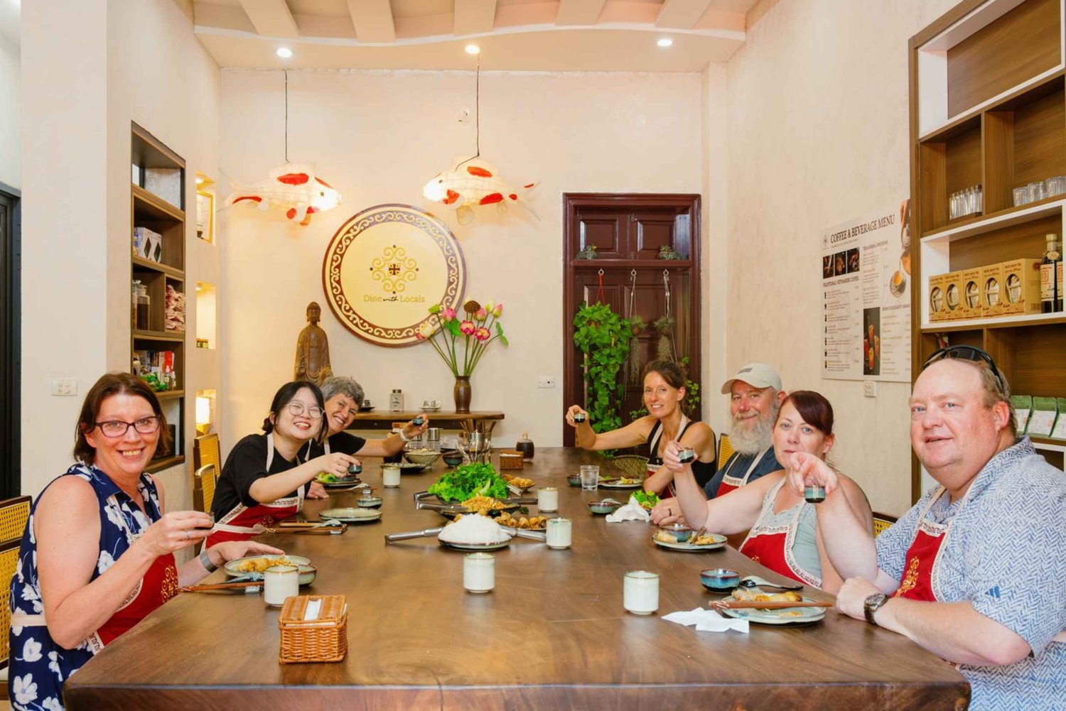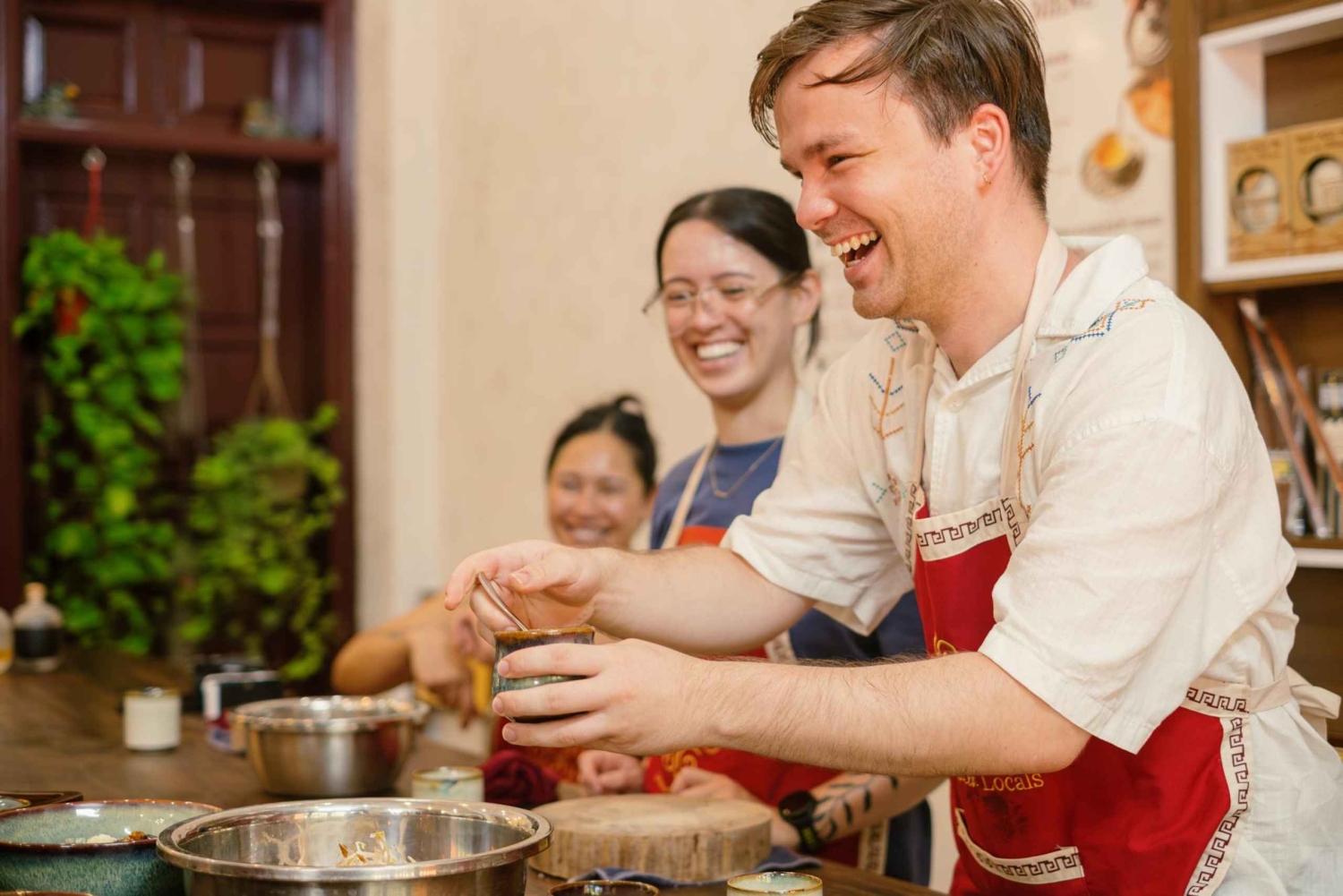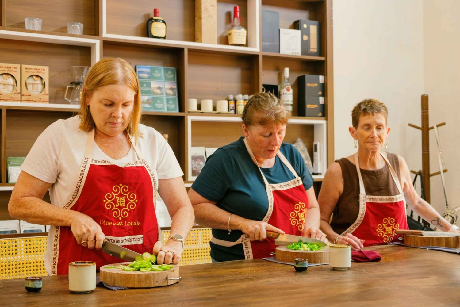 Legg ut på en kulinarisk reise gjennom Hanois pulserende gater Bli med oss på et uforglemmelig kulinarisk eventyr gjennom hjertet av Hanoi, hvor de forlokkende aromaene av tradisjonell vietnamesisk mat fyller luften. Vårt oppslukende matlagingskurs tilbyr mer enn bare et matlagingskurs – det er en fengslende utforskning av Hanois rike kulinariske arv. En dag i livet til en Hanoi-matelsker Reisen din begynner med et pulserende besøk til et travelt lokalt marked, hvor du blir oppslukt av synene, lydene og duftene fra Hanois travle matscene. Vår ekspertguide introduserer deg for et kaleidoskop av ferske ingredienser, fra duftende urter og krydder til saftig sjømat og eksotisk frukt. Når du vandrer gjennom markedets labyrintiske smug, får du innsikt i den kulturelle betydningen av hver ingrediens og lærer hvordan du velger de beste råvarene. Slipp løs din indre kokk Når du har samlet ingrediensene dine, drar du til det koselige matlagingsstudioet vårt, hvor du blir møtt av den talentfulle og lidenskapelige kokken vår. Under deres ekspertveiledning lærer du kunsten å tilberede autentiske vietnamesiske retter, fra den delikate balansen av smaker i en bolle med pho til den sprø perfeksjonen i vårløk. Hvert trinn i matlagingsprosessen forklares nøye, slik at du får en dyp forståelse av teknikkene og tradisjonene bak hver rett. En fest for sansene Mens du lager mat sammen med andre matentusiaster, får du muligheten til å dele historier, latter og kulinariske tips. Den felles atmosfæren på matlagingskurset vårt fremmer en følelse av kameratskap og skaper varige minner. Når rettene er ferdige, setter du deg ned til et deilig festmåltid og nyter fruktene av arbeidet ditt. Når du nyter smakene av det hjemmelagde vietnamesiske måltidet ditt, kommer du til å sette pris på de intrikate detaljene og den kulinariske kunsten som ligger i hvert eneste rett. Utover kjøkkenet: En kulturell opplevelse Matlagingskurset vårt er mer enn bare en kulinarisk opplevelse – det er en kulturell fordypning. Du får innsikt i det vietnamesiske folks historie, tradisjoner og hverdag. Ved å lære å lage autentiske vietnamesiske retter, vil du utvikle en dypere forståelse for landets rike kulinariske arv. Bli med oss og oppdag magien i Hanois kjøkken Enten du er en erfaren hjemmekokk eller en komplett nybegynner, er matlagingskurset vårt designet for å imøtekomme alle ferdighetsnivåer. Våre tålmodige og entusiastiske kokker veileder deg gjennom hvert trinn i matlagingsprosessen, slik at du føler deg trygg og selvsikker på kjøkkenet. Så bli med oss på et kulinarisk eventyr som vil pirre smaksløkene dine og berike din forståelse av vietnamesisk kultur. Hver gjest som bestiller hos oss, bidrar med 1 dollar til veldedighetsmåltider for pediatriske pasienter på sykehus i sentrum av Hanoi. Hos Dine With Locals går alt vi gjør tilbake til lokalsamfunnene vi tjener, og vi kan ikke oppfylle dette viktige ansvaret uten deg.Includes