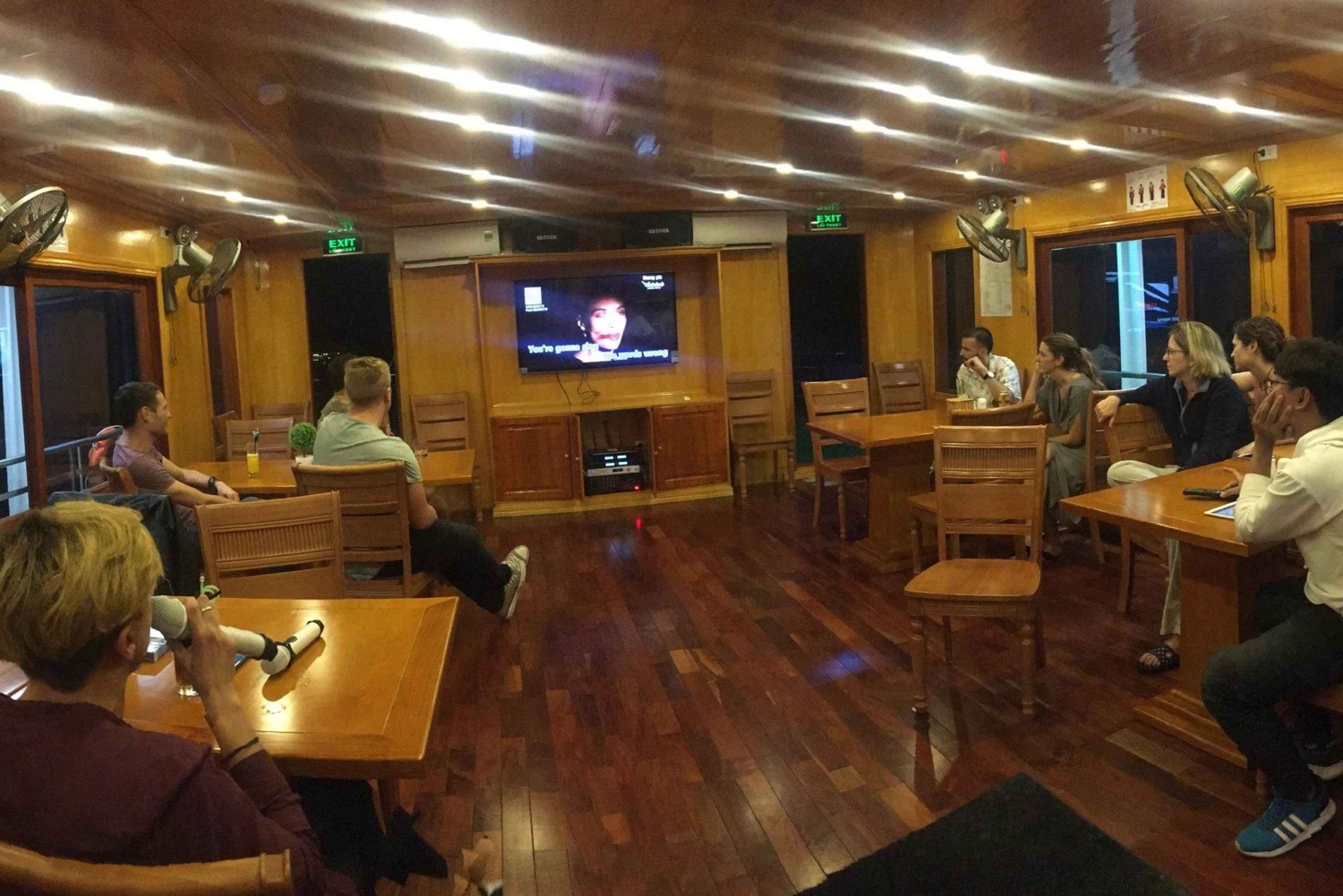 Et cruise med 10 lugarer med private balkonger – maks. 20 gjester. Perfekt for små grupper, og tilbyr en god balanse mellom avslapning og eventyr. Dag 1: Ninh Binh – Cai Beo havn – Lan Ha-bukten – Ha Long-bukten (lunsj + middag) 07:45: Du blir hentet fra hotellet/bungalowen og kjørt til motorveien til havnen (Haiphong), hvor vi ankommer rundt kl. 11.30. 11.35: Transport med tender til cruiseskipet. 12.15: Vi ønsker gjestene velkommen om bord på cruiseskipet, og etter innsjekking kan du nyte en velkomstdrink og få en orientering om cruiset og sikkerhetsinstruksjoner av besetningsmedlemmer og cruisemanageren. 12.30: Vi spiser lunsj før vi fortsetter reisen via holmene. Disse fantastiske karstformasjonene av kalkstein stiger opp av havet på en imponerende måte. Dette området er uberørt, da ikke mange cruiseskip bruker ruten via Cat Ba-øya – Coc Ngoi-holmen – gjennom Cua Dong til Ba Trai Dao-området. 14.30: Cruiseskipet seiler gjennom Lan Ha-bukten. Området er omgitt av ekstraordinære karstlandskap av kalkstein. Du kan starte reisen din med å besøke Dark & Bright Cave og holmene med kajakk, som er en vill og mystisk skjønnhet midt i verdensarven, og nyte å svømme i det krystallklare vannet i bukten. 15.30: Bare nyt en svømmetur. Dette er en flott opplevelse, å være nedsenket i det krystallklare vannet i bukten. 16.45 Når du kommer tilbake til cruiseskipet, kan du se den fantastiske solnedgangen over Tonkinbukten. Om bord kan du delta på en tradisjonell matlagingskurs. Vår kokk vil lære deg å lage vietnamesiske vårruller. Tidlig på kvelden har båten sin Happy Hour-tilbud. 19:00: Middagen serveres. Nyt deilig lokal mat tilberedt og servert av vårt fantastiske cateringpersonale om bord. Dette er en deilig måltid i en intim og romantisk setting. 21:00: Nyt landskapet i bukten om natten oppe på øverste dekk. Nyt drinker fra baren. Fisk, nyt den morsomme karaoketiden med venner og familie. Overnatting på cruiset vårt! 23:00: Slutt på programmet for dag én. Dag 2: Viet Hai Village – Lan Ha Bay – Ha Noi (frokost + lunsj) 06:00: Start den nye dagen med å ta bilder, eller nyt soloppgangen fra kabinvinduet eller fra soldekket. 07:00 Nyt frokosten i den herlige og fredelige skjønnheten i bukten. 08:30: Overføring til en tender for å besøke Viet Hai Village på Cat Ba Island og hoppe på en sykkeltur (elbil også tilgjengelig) gjennom en regnskogstunnel som fører til en landsby som ligger i en dal dypt inne i en nasjonalpark. Møt, besøk et tradisjonelt hus og hils på lokale innbyggere som gjør sitt daglige arbeid, se hjemmene deres og landsbyskolen. Gå tilbake til Our Cruises-båten for utsjekkingsprosedyrer. 10:45: Mens du seiler tilbake, kan du nyte en deilig lunsj. 11:45: Vi returnerer til Cai Beo havn sør i Halong-bukten, hvor våre besøkende går av. 12:00: Vi tar farvel i havnen, dette er slutten på programmet. Vi håper du har hatt en hyggelig tid hos oss og ønsker deg en trygg videre reise. 15.45: Tilbake til avleveringsstedet i Hanoi. Avslutning på cruise 2 dager 1 natt tur.Includes