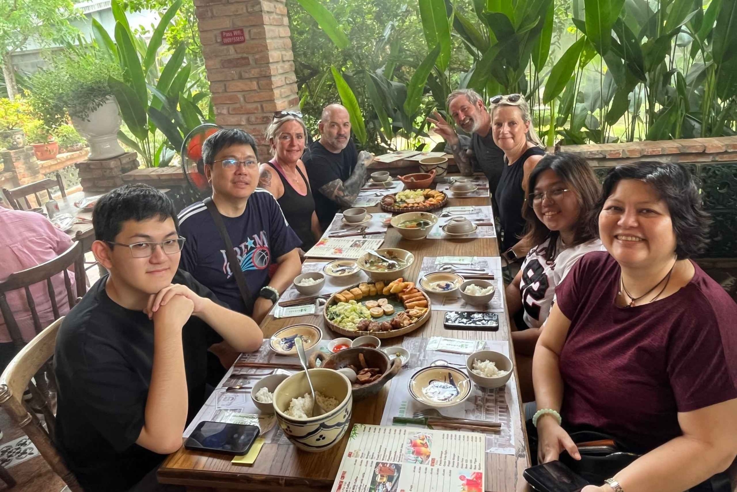 - Po porannej wycieczce odwiedź pobliską restaurację, aby skorzystać z toalety; możesz zjeść lekki lunch na własną rękę. Odbiór nie jest oferowany z Tan Dinh i Dakao Ward (z wyjątkiem opcji VIP) W przypadku opcji standardowej, jeśli zatrzymujesz się w Dystrykcie 4, oferujemy odbiór tylko na ulicy Ben Van Don.