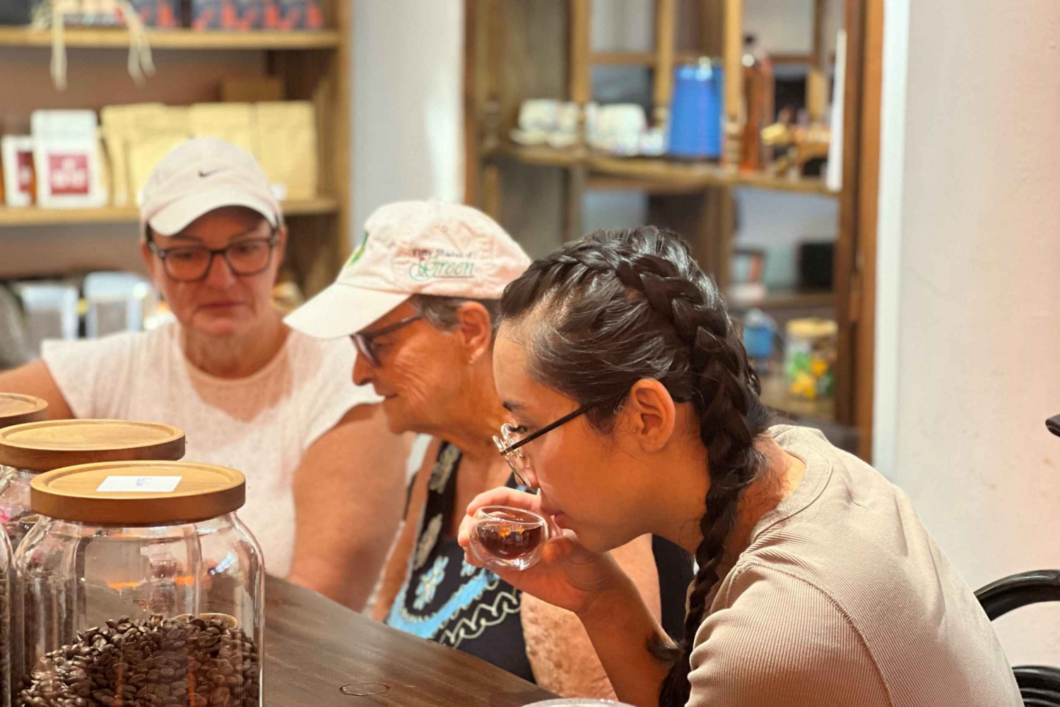 Witaj w naszej lokalnej palarni kawy, w której specjalizujemy się w produkcji najlepszych, palonych w małych partiach ziaren kawy pochodzących z najlepszych regionów uprawy kawy w Wietnamie. Posłuchaj, jak instruktor opowiada o popularnych kawiarniach w Wietnamie i ich powiązaniach z historią i kulturą. Zacznij opanowywać wietnamską sztukę parzenia kawy, ucząc się, jak przechodzi ona od uprawy do filiżanki. Możesz wybrać rodzaj tradycyjnej kawy do praktycznego parzenia i degustacji, na przykład wietnamską kawę z filtrem Phin, kawę jajeczną, kawę soloną lub kawę kokosową. Poznaj bogate smaki i aromaty naszych fachowo palonych ziaren kawy. Nasze zaangażowanie w jakość i zrównoważony rozwój znajduje odzwierciedlenie w każdej filiżance kawy, którą serwujemy. Wypij kawę, którą przygotowałeś na koniec zajęć, słuchając dobrej muzyki w komfortowej atmosferze.Includes