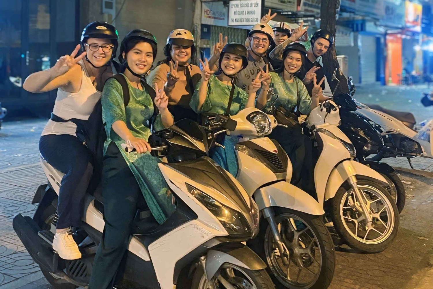 Wybierz się na najlepszą wycieczkę kulinarną w Sajgonie z gwiazdkami Michelina! Wskakuj na tylne siedzenie skutera z naszymi uroczymi kierowczynami i odkrywaj Ho Chi Minh, degustując 7 lub 12 dań, w tym potrawy z gwiazdkami Michelin i ukryte lokalne perełki. Jedź tętniącymi życiem ulicami i sekretnymi zaułkami, odkrywając autentyczne wietnamskie smaki – od tradycyjnych przekąsek po nowoczesne street food. Ta wycieczka łączy w sobie niesamowite jedzenie, lokalną kulturę i ciepłe towarzystwo, dzięki czemu jest niezapomnianą przygodą w Sajgonie. Jedz. Jedź. Uśmiechaj się. Powtarzaj! Dlaczego warto rezerwować u nas: – Najlepsza wycieczka kulinarna na wszystkich OTA z ponad 30 000 świetnych recenzji. Twoje bezpieczeństwo jest dla nas najważniejsze! – Jesteśmy LEGALNĄ, LICENCJONOWANĄ FIRMĄ (SAIGON ADVENTURE). Rezerwacja u licencjonowanego operatora oznacza, że Twoje ubezpieczenie jest gwarantowane, co zapewnia Ci spokój ducha podczas podróży. – Oferujemy odbiór w dzielnicach 1, 3, 4. – Dostępna jest opcja wegetariańska. – Jeśli nie jesz dużo, możesz wybrać opcję 7 degustacji – Jeśli szukasz niedrogiego doświadczenia, wybierz „7 klasycznych degustacji, w tym 1 danie z gwiazdką Michelin”. Przykładowe menu: Degustacja 1,2: Bò Kho Gánh: Rozpocznij swoją wycieczkę w Bo Kho Ganh, słynącym z gulaszu wołowego, bò kho, podawanego w kamiennej misce (#1). Możesz jeść to z chlebem, makaronem lub ryżem. Bulion jest słodki i aromatyczny, z bogatym, mięsnym smakiem. Śmiało dodawaj przyprawy i sosy, jak lubisz. #2. Twoim pierwszym doświadczeniem kulinarnym w Sajgonie będzie kojąca, zimna herbata jaśminowa. Degustacja 3, 4, 5: Otwarta w 1975 roku restauracja Hồng Phát przy ulicy Võ Văn Tần w Dzielnicy 3 to ulubione miejsce pokoleń gości z Sajgonu. Ta restauracja, uhonorowana Michelin Bib Gourmand zarówno w 2023, jak i 2024 roku, szczyci się jakością potraw, doskonałą obsługą i świetną atmosferą. 3. Goi Cuon (roladki z krewetkami tygrysimi i sałatą) 4. Makaron z wieprzowiną Wonton (z zupą lub zupą jako dodatkiem). 5. Mrożony bananowy lód po wietnamsku Następny przystanek to Béo Ơi Quán – Món ngon Hà Nội: oferuje autentyczną kuchnię północnowietnamską w samym sercu Sajgonu, z charakterystycznymi daniami, takimi jak bún riêu cua i cốm chiên. Uznana przez Michelin za domowe smaki i ciepłą atmosferę, to prawdziwy smak Hanoi w Ho Chi Minh. Polecane degustacje: #6 Trà đá (mrożona herbata) to prosty, ale kultowy wietnamski napój – orzeźwiająca, lekko parzona zielona herbata podawana z lodem i często pita do każdego lokalnego posiłku. #7 Smażone kotlety z młodych płatków ryżowych (chả cốm) to uwielbiana północnowietnamska przekąska zrobiona z pachnących zielonych płatków ryżowych i mielonej wieprzowiny, smażona na patelni na chrupko na zewnątrz i ciągnąca się w środku. #8 Zupa z makaronem z krabem i wołowiną to aromatyczna północnowietnamska zupa z makaronem, z bogatym bulionem z krabów i pomidorów, zwieńczona delikatną wołowiną i świeżymi ziołami. Twoja kulinarna przygoda zakończy się w Ốc Oanh, tętniącym życiem, wyróżnionym gwiazdką Michelin miejscu! Zanurz się w niesamowitej gamie świeżych, doskonale doprawionych ślimaków i owoców morza, od pachnących małży po soczyste przegrzebki. A do tego wszystkiego najlepiej podać lodowate piwo Saigon.Includes