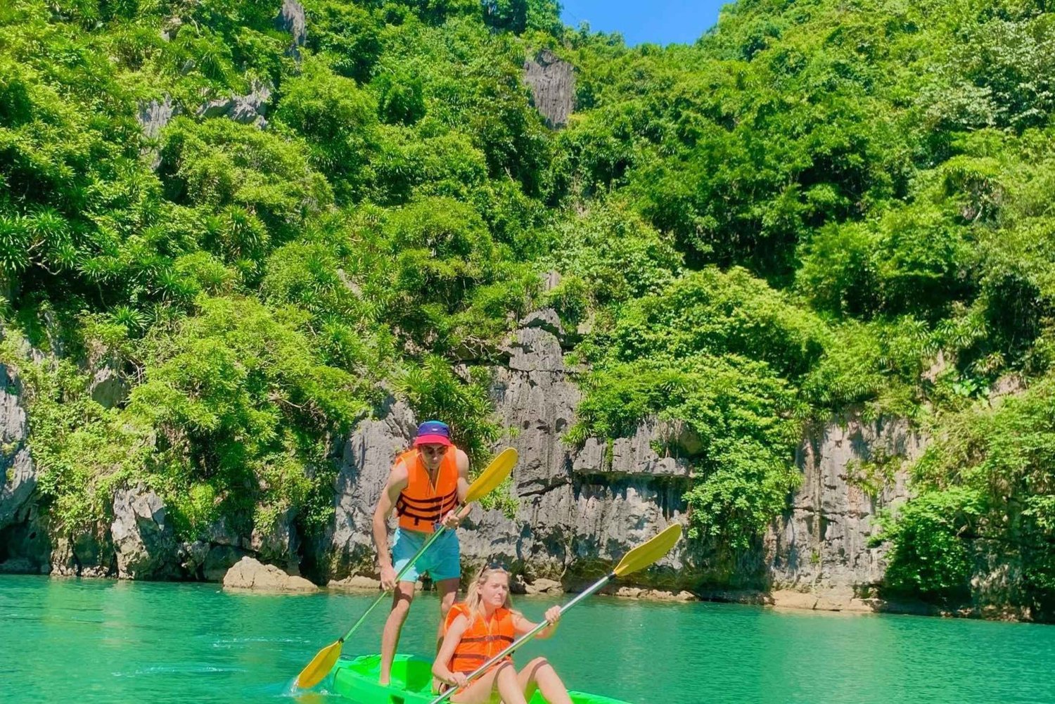 Odbiór i transport powrotny z hotelu w mieście Cat Ba/starej dzielnicy Hanoi.⧏BR/⧐1 noc na rejsie + 1 noc w Lan Homestay.⧏BR/⧐Odbiór samochodem golfowym z portu Viet Hai do Lan Homestay.⧏BR/⧐Bilety wstępu.⧏BR/⧐Wszystkie posiłki podczas wycieczki (2 śniadania, 3 obiady, 2 kolacje).⧏BR/⧐Anglojęzyczny przewodnik.⧏BR/⧐Kajakarstwo i pływanie.Easy cancellation