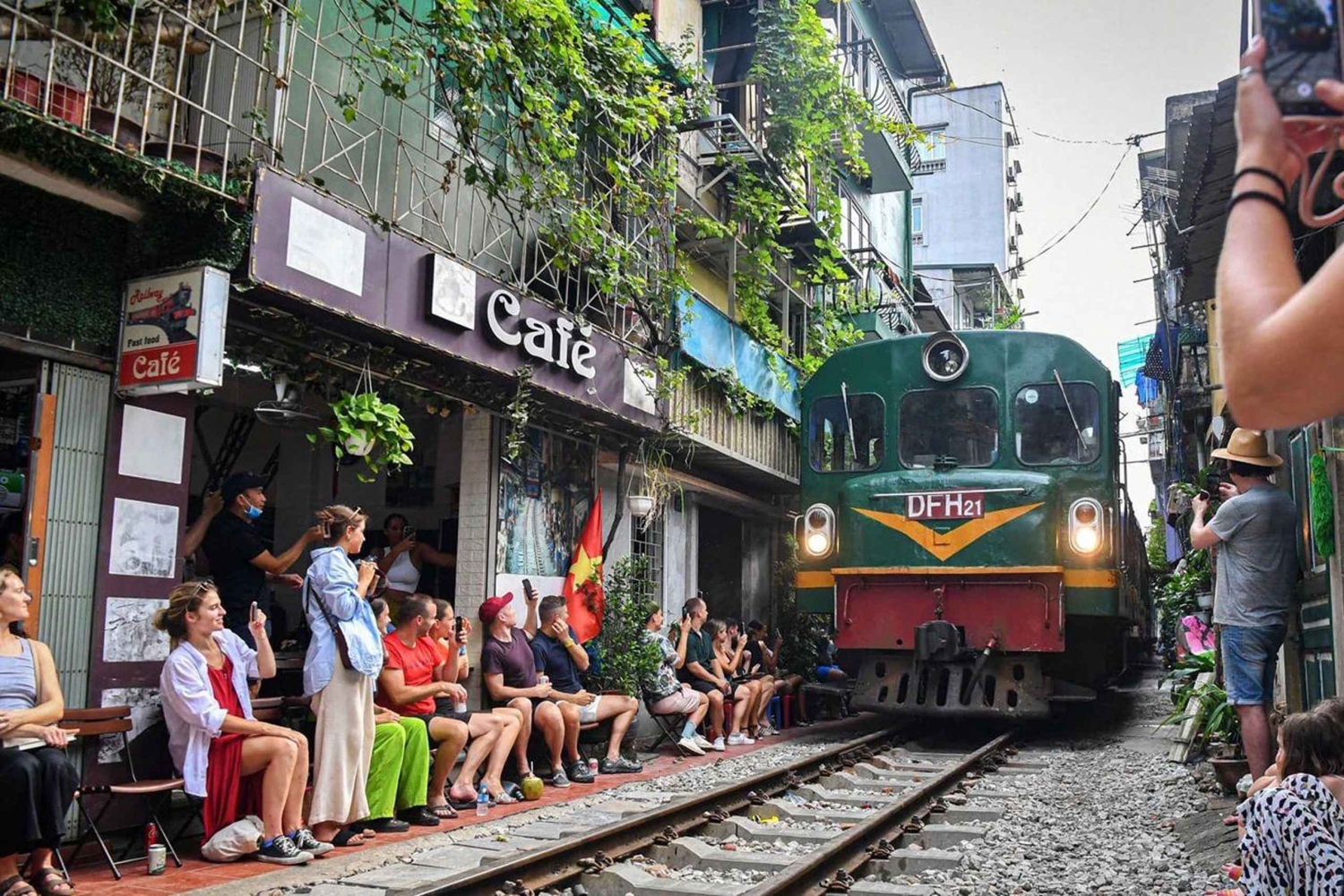 Começa o teu passeio na aldeia de Ngu Xa, localizada no lago Truc Bach, que através do Lago Oeste, pertence ao distrito de Ba Dinh, em Hanói. Assim, a aldeia de Ngu xa parece uma pequena península coberta de água. A aldeia de Ngu Xa tem uma longa história, com cerca de 500 anos. As técnicas de fundição de bronze do povo de Ngu Xa atingiram o auge. Para fazer um produto perfeito, não só precisam da criação, de olhos de alto padrão, mas também de se basearem em segredos da família no negócio, que são transferidos de geração em geração e na experiência adquirida. O que torna os produtos da aldeia de Ngu Xa únicos é a técnica de fundição monolítica de bronze. A fundição monolítica é muito sofisticada, especialmente com produtos de grandes dimensões. Para moldar um produto de tamanho pequeno ou médio, demora cerca de três a quatro meses a ser concluído e mais de um ano para um grande sino ou estátua. Vai até ao Pagode Tran Quoc. Com uma história de 1500 anos, o Pagode Tran Quoc é o mais antigo de Hanói. Foi construído em 541, no início da dinastia Ly, e originalmente chamava-se Pagode Khai Quoc. Naquela época, o pagode ficava perto das margens do Rio Vermelho. Em 1615, quando o dique se desmoronou, o pagode foi transferido para o dique Yen Phu, na área do monte Kim Nguu. O nome do pagode foi alterado para Tran Quoc durante o reinado do rei Le Hy Tong (1681 - 1705), com a esperança de que o Pagode Tran Quoc fosse um lugar para ajudar as pessoas a repelir desastres naturais e também lhes trazer uma vida pacífica. O nome 'Tran Quoc' é usado até hoje. Avançando rapidamente para a Dinastia Tran, o Pagode Tran Quoc foi considerado a capital do budismo. Hoje, é considerado um símbolo icónico de Hanói. Seguindo os princípios rigorosos do budismo, o Pagode Tran Quoc preserva a beleza estética do estilo arquitetónico oriental. O design de 3000 metros quadrados do pagode é uma mistura harmoniosa de elementos tradicionais, caracterizada por trabalhos de madeira intrincados, telhados graciosamente curvos e ornamentação delicada. Cada detalhe é um testemunho da reverência pela natureza e da busca pelo equilíbrio espiritual que o budismo encarna. A estupa de 11 andares (Bao Thap) Assim que entrares no pagode, serás recebido por uma visão notável: a majestosa torre castanho-avermelhada que se ergue orgulhosamente diante de ti, conhecida como a Estupa de 11 andares ou Bao Thap. Esta torre requintada é uma obra-prima cativante, composta por onze andares distintos, cada um adornado com seis portas elegantemente arqueadas. Dentro destas portas, estátuas de pedras preciosas brancas do Buda Amitabha estão em reverência tranquila, emanando uma aura de serenidade e iluminação. A presença das estátuas de Buda nas portas serve como um lembrete dos ensinamentos de Buda e do caminho para a iluminação. Finalmente, vamos visitar a Rua do Comboio. Apanhas um comboio e experimentas o enorme comboio a passar mesmo à tua frente. Enquanto estiveres aqui, desfruta de cafés com ovo numa loja agradável junto à linha férrea e experimenta o ambiente único.Includes