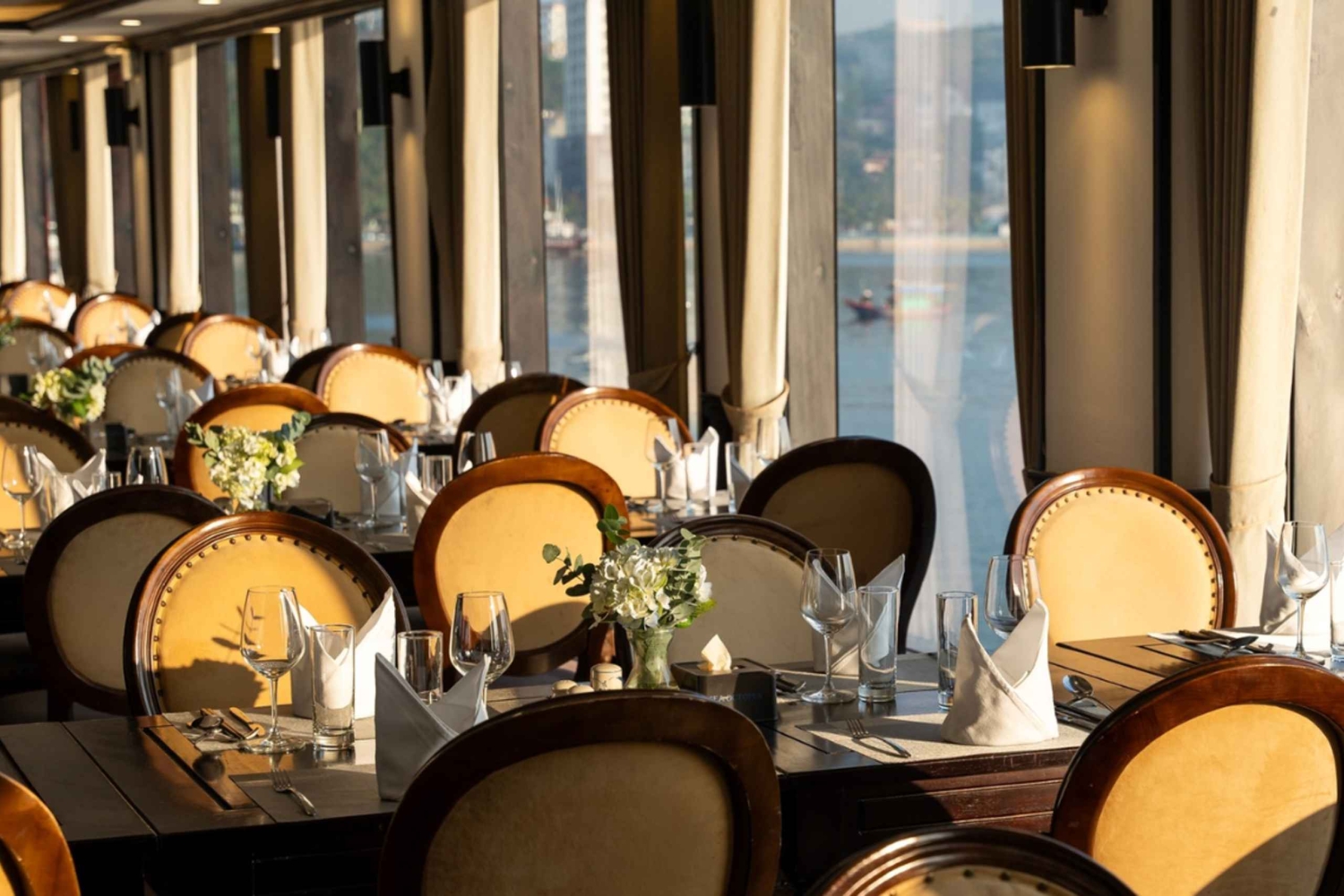 Cruzeiro de 6 horas num Sea Octopus de 5 estrelas Almoço de luxo com cozinhas asiática e ocidental Harmonias românticas de violino e guitarra durante o almoço Bebida de boas-vindas e toalha fria à chegada Serviço de 5 estrelas e instalações modernas Bilhetes para passeios turísticos Seguro a bordoImportant Information