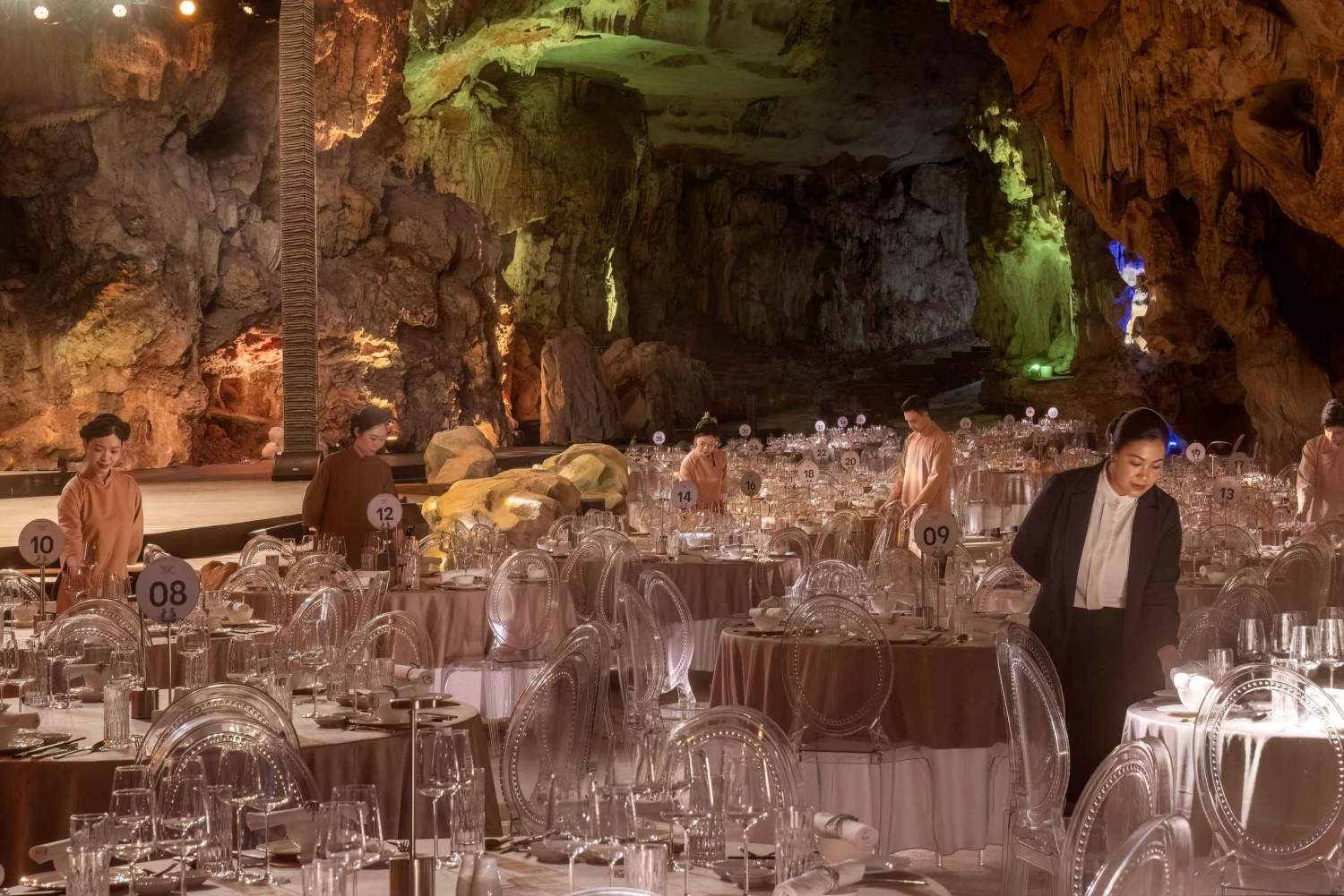 Escondida no complexo de grutas Vung Duc de Cam Pha, Quang Ninh, a Gruta Pérola do Dragão oferece uma experiência gastronómica e cultural distinta. A gruta tem mais de 4000 m² e mantém-se naturalmente fresca a 23–25 °C durante todo o ano, criando um ambiente confortável e atmosférico para explorar e jantar. Os hóspedes irão desfrutar de uma refeição selecionada com marisco fresco e especialidades regionais, servida diretamente dentro da gruta. A iluminação suave destaca as estalactites naturais, criando um ambiente único que combina a natureza e as tradições culinárias locais. Isto não é só uma refeição, é uma imersão na identidade cultural de Quang Ninh. A experiência inclui o espetáculo ao vivo 'À procura da marca da pérola', apresentado num palco de 300 m² dentro da gruta. Com som, iluminação e coreografia profissionais, o espetáculo interpreta a lenda da Mãe Dragão, um símbolo de proteção e devoção na cultura popular local. Através da música, da dança e de elementos visuais narrativos, os visitantes são convidados a ligar-se ao património e à tradição de contar histórias da região. A Gruta da Pérola do Dragão é mais do que uma formação geológica. As suas estalactites semelhantes a pérolas estão ligadas à memória e ao mito locais, inspirando a reflexão sobre a relação entre paisagem e cultura. Quer seja para uma ocasião especial ou uma experiência partilhada significativa, esta visita oferece uma rara oportunidade de desfrutar de gastronomia, espetáculos e beleza natural num único cenário. --- Exemplo de menu de almoço Amuse-bouche: – Pão caseiro variado com manteiga Aperitivo (escolhe um): - Peito de pato cozido lentamente com crosta de ervas, salada de jardim e molho de amêndoa e manga - Sopa de Bisque de Marisco com Vieiras Seladas na Panela e Essência de Hortelã Prato principal (escolhe consoante a opção do menu): - Lombo de vaca grelhado com couve crocante, puré de batata e molho de tutano - Frango assado com glacê de alperce, espargos grelhados com manteiga de alho e arroz roxo pegajoso - Esparguete com molho cremoso de cogumelos e manjericão e tomates cereja assados com ervas - Salmão assado com couve-flor assada na manteiga e molho de espuma de caril Sobremesa: - Mousse de chocolate com molho de frutas e marmelada de laranja --- Exemplo de menu de jantar Aperitivo: - Pão caseiro variado com manteiga - Camarão escalfado na manteiga com salada de abacate e molho de manga Sopa: - Sopa de abóbora com azeite de trufa e sementes de abóbora torradas Prato principal: - Lagosta com cobertura de manteiga de amendoim e molho bisque de macarrão com marisco - Bife de vaca com couve flambé e puré de batata Sobremesa: - Geleia de Pérola do Dragão Dourado - Servido com chá de ervasIncludes