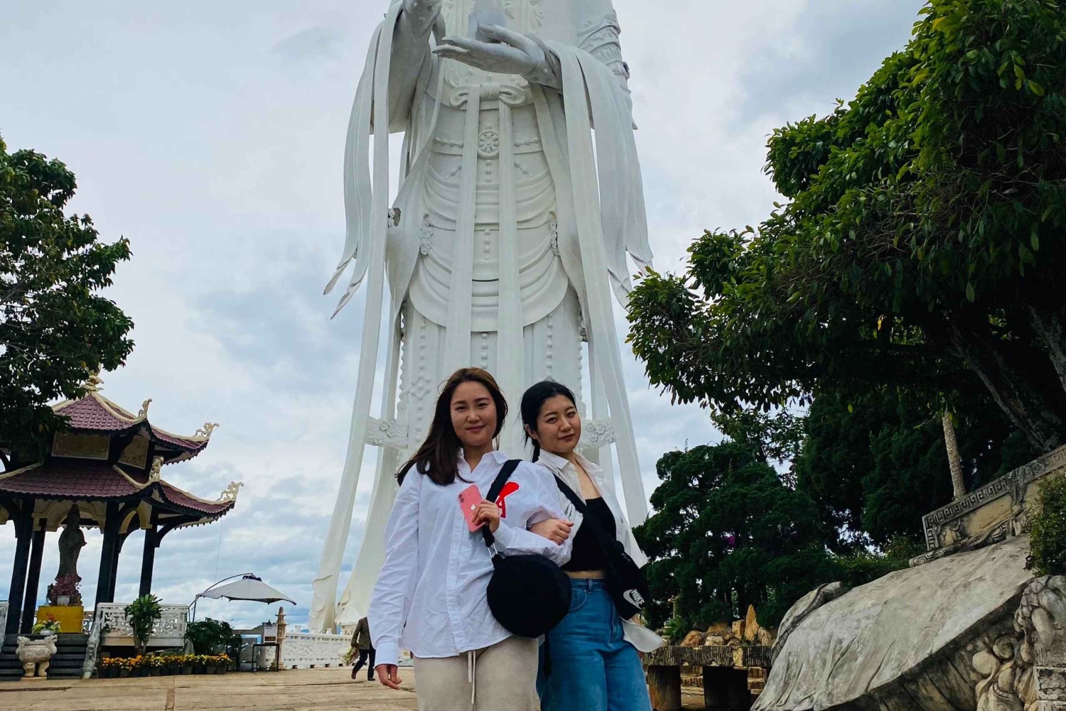 Destaques do passeio 1️⃣ Samten Hills Dalat – O maior espaço budista Vajrayana no Vietname Admira a maior roda de oração de bronze do mundo, certificada pelo Guinness World Records. Explora a arquitetura pacífica de estilo tibetano, as estupas coloridas e os espaços de meditação serenos. Perfeito para fotos, aprendizagem espiritual e desfrutar de vistas para a montanha. 2️⃣ Parque de Aventuras Datanla – Emoção na Floresta de Pinheiros Escolhe a tua atividade (opcional): Alpine Coaster – a montanha-russa mais longa do Vietname! Caminhada até à Cascata de Datanla Percurso de cordas altas (opcional) Sente o ar fresco da montanha e desfruta de uma experiência divertida e cheia de energia. 3️⃣ Cascata de Pongour – A 'Cascata dos Sete Níveis' Conhecida como a Rainha das Cascatas, Pongour é famosa pelos seus terraços largos e com várias camadas. Uma das mais belas maravilhas naturais das Terras Altas Centrais Caminhada suave por florestas de bambu Ideal para quem adora fotografia de paisagens 4️⃣ Cascata do Elefante – O poder bruto da natureza Uma cascata enorme e poderosa, rodeada por grutas místicas e formações rochosas antigas. Visita o Pagode Linh An e a estátua gigante de Guanyin (Lady Buddha) Desce até à base da cascata para uma experiência enevoada inesquecível Explora a Gruta do Vento 5️⃣ Jardim de café Mê Linh – Vista lendária do café Relaxa no café panorâmico mais famoso de Đà Lạt. Vista de 360° de lagos, montanhas e plantações de café Experimenta o café Weasel, o Arábica local ou os sumos de frutas frescas Lugares lindos para tirar fotos, especialmente o lago azul e o ninho de pássaro giganteIncludes