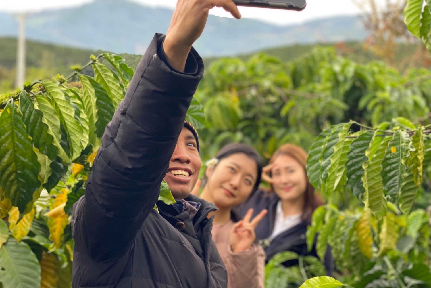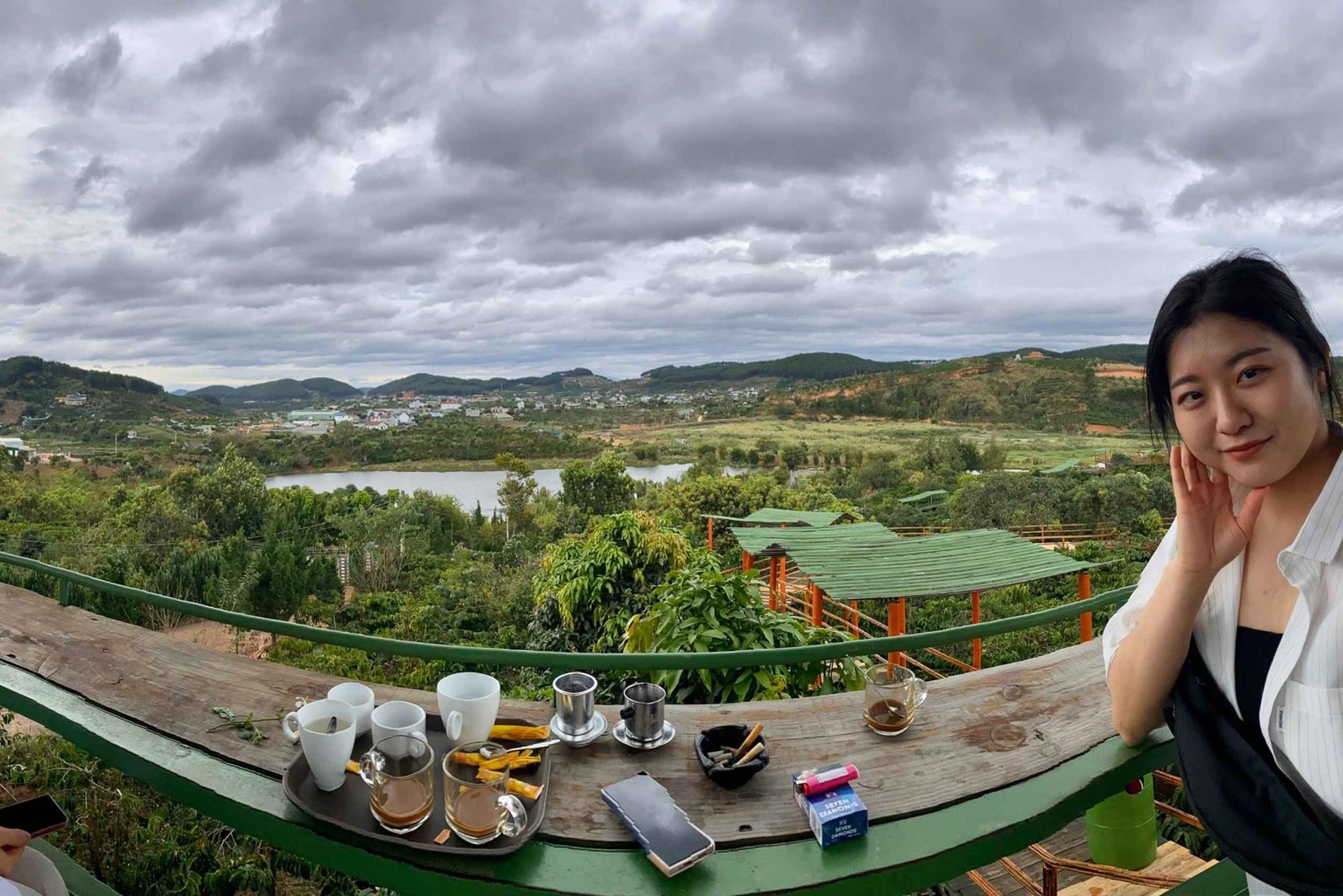 Descobre os melhores destaques de Đà Lạt num dia inesquecível! Este passeio combina beleza espiritual, aventura na montanha, cascatas majestosas e a vista mais deslumbrante de uma plantação de café da cidade.