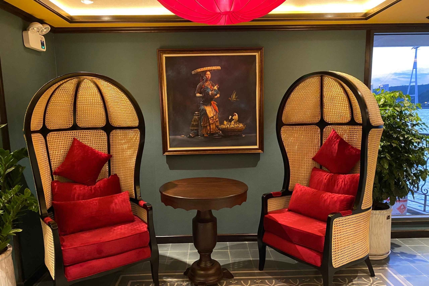 Bebida de boas-vindas Itinerário e programa do cruzeiro Taxas de entrada e de turismo Guia de turismo interno que fala inglês Cabines e suítes luxuosas com ar-condicionado Almoço e jantar vietnamita e internacional Café da manhã e brunch vietnamita e internacional Seguros, impostos e taxas de serviço Internet a bordo (sujeito a sinal de rede celular); Uso gratuito das instalações do navio (exceto tratamentos de spa); taxas portuárias ou de ancoragem; impostos.Important Information