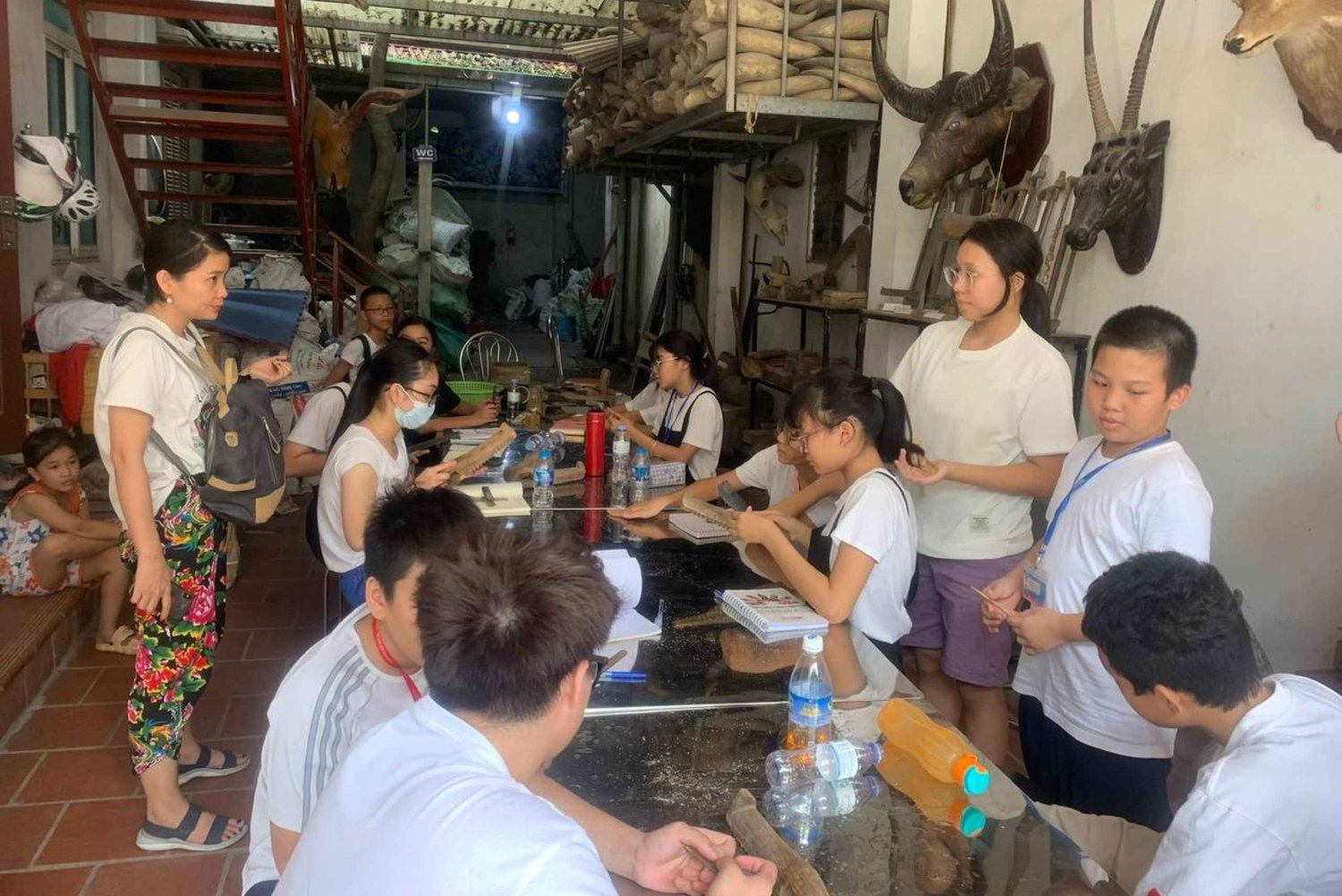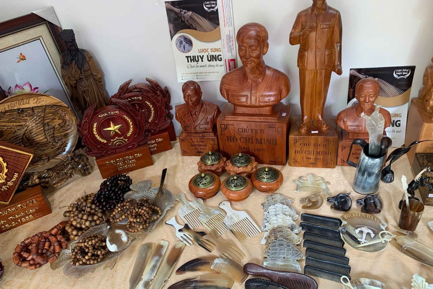 Opção: Tour Privado à Aldeia de Pentes de Chifre Thuy Ung Descobre a rica herança artesanal da aldeia de Thụy Ứng, a única no norte do Vietname especializada em fazer pentes de chifres de gado. Com mais de 400 anos de história, esta aldeia tornou-se um destino atraente para turistas interessados em explorar o artesanato tradicional de Hanói. Começa a tua viagem a partir de Hanói, seguindo a Estrada Nacional 1A para sul até à estação ferroviária de Thường Tín, depois vira para a Estrada Provincial 427 para oeste e conduz cerca de 3 km até chegares à Aldeia de Thụy Ứng. Deixa-te envolver pelo encanto tranquilo da aldeia, profundamente enraizado nas suas tradições culturais. Descobre o processo meticuloso e trabalhoso de fabricar pentes de chifre, que envolve várias etapas. Vê como os artesãos transformam chifres de gado duros em pentes delicados e esteticamente agradáveis, adornados com motivos intrincados. Cada pente carrega a paixão e a dedicação do artista pela beleza, dando a Thụy Ứng a reputação de 'dar vida aos pentes'. Descobre como os artesãos diversificaram o seu ofício para incluir vários artigos domésticos, como colheres, bules, chávenas, tigelas, pratos, jarros de vinho, caixas de palitos, cinzeiros e pauzinhos. Muitos também criam peças de arte complexas, como estatuetas de camarão, dragão e fénix, além de artigos decorativos para restaurantes e hotéis. Descobre a resiliência da indústria artesanal da aldeia, que prospera há mais de 400 anos. Apesar das oscilações do mercado e da concorrência, a aldeia continua empenhada em preservar e desenvolver este artesanato único. Opção de excursão de grupo de meio dia: visita a 2 aldeias: chapéu cónico e aldeia de artesanato de incenso + rua do comboio (opcional) Duração: ~ 6 horas Manhã das 7:45 às 13:30 À tarde, das 11:45 às 17:30 Começa com uma recolha no Bairro Antigo de Hanói e segue para Chuong, uma aldeia conhecida pelo artesanato de chapéus cónicos há mais de 300 anos. Vê como são feitos os chapéus cónicos e decora um pintando-o, para depois o levares para casa como lembrança. Vai até à aldeia de Quang Phu Cau, que produz incenso há mais de 100 anos. Dá um passeio até ao centro da aldeia e vê como os locais fazem incenso de forma artesanal e familiar. Conhece uma família especializada em tingir varas de incenso e aprecia os coloridos feixes de incenso. De volta ao centro da cidade. Primeiro destino: Rua do Comboio de Hanói. Se não quiseres ser deixado aqui, espera no carro.Includes