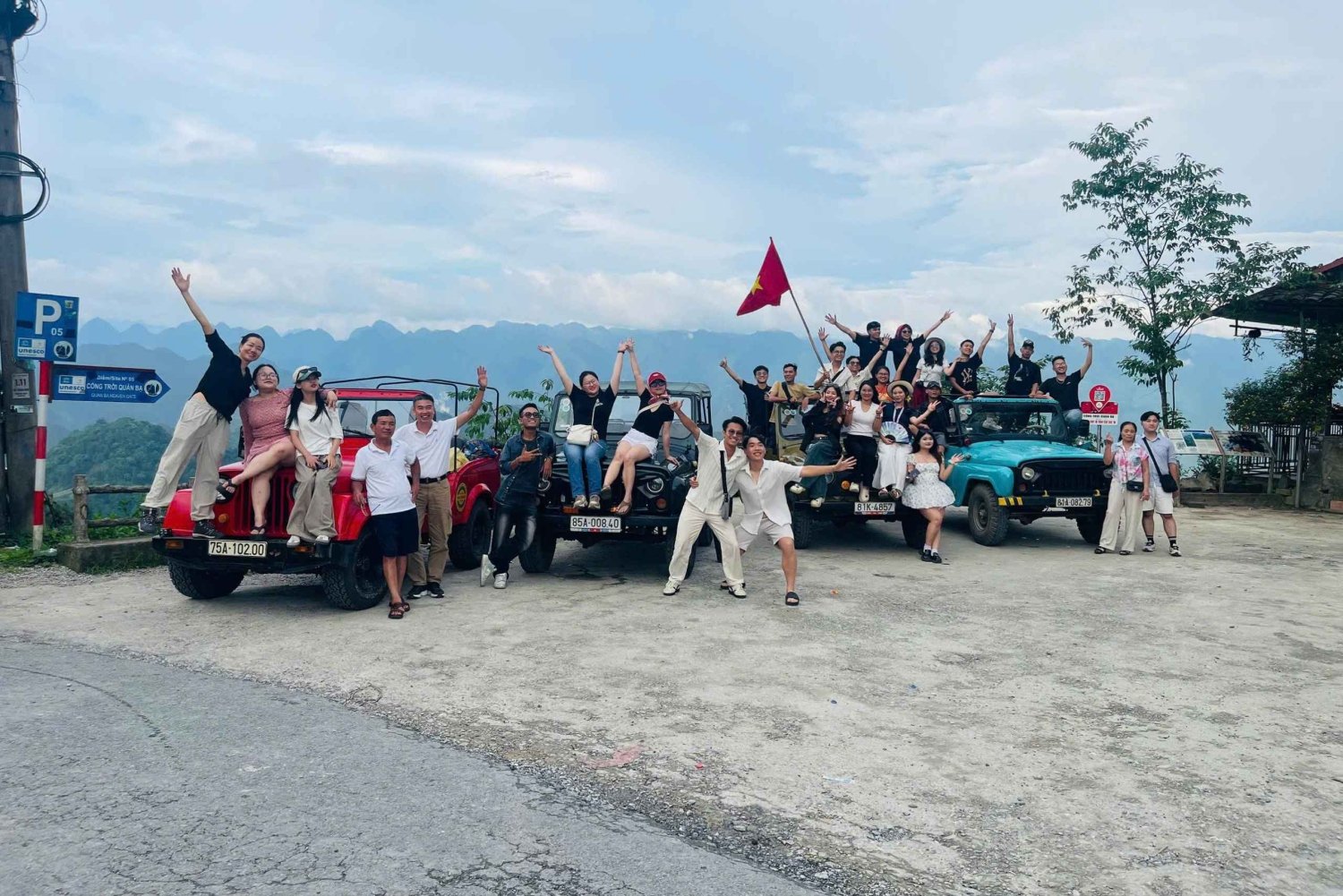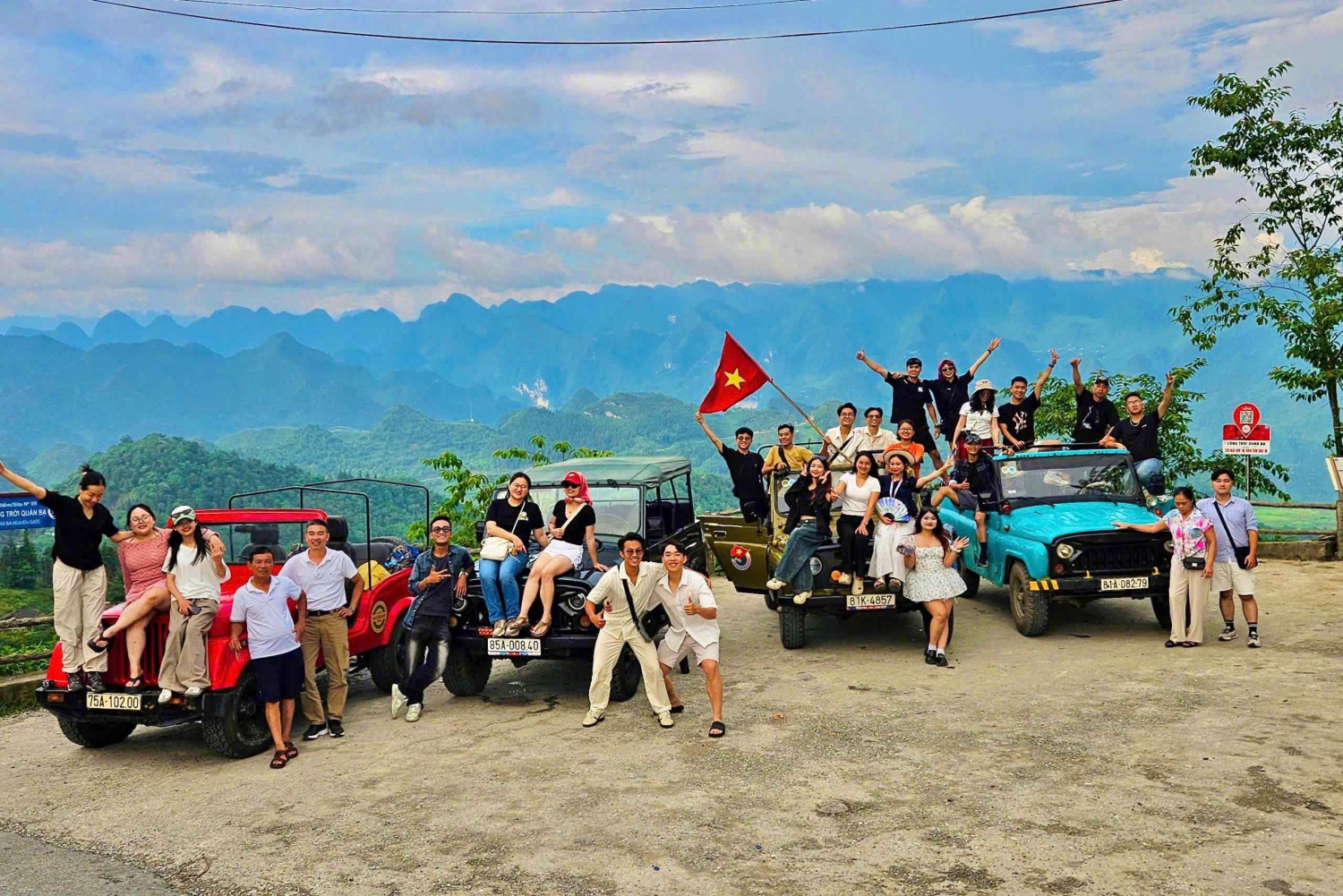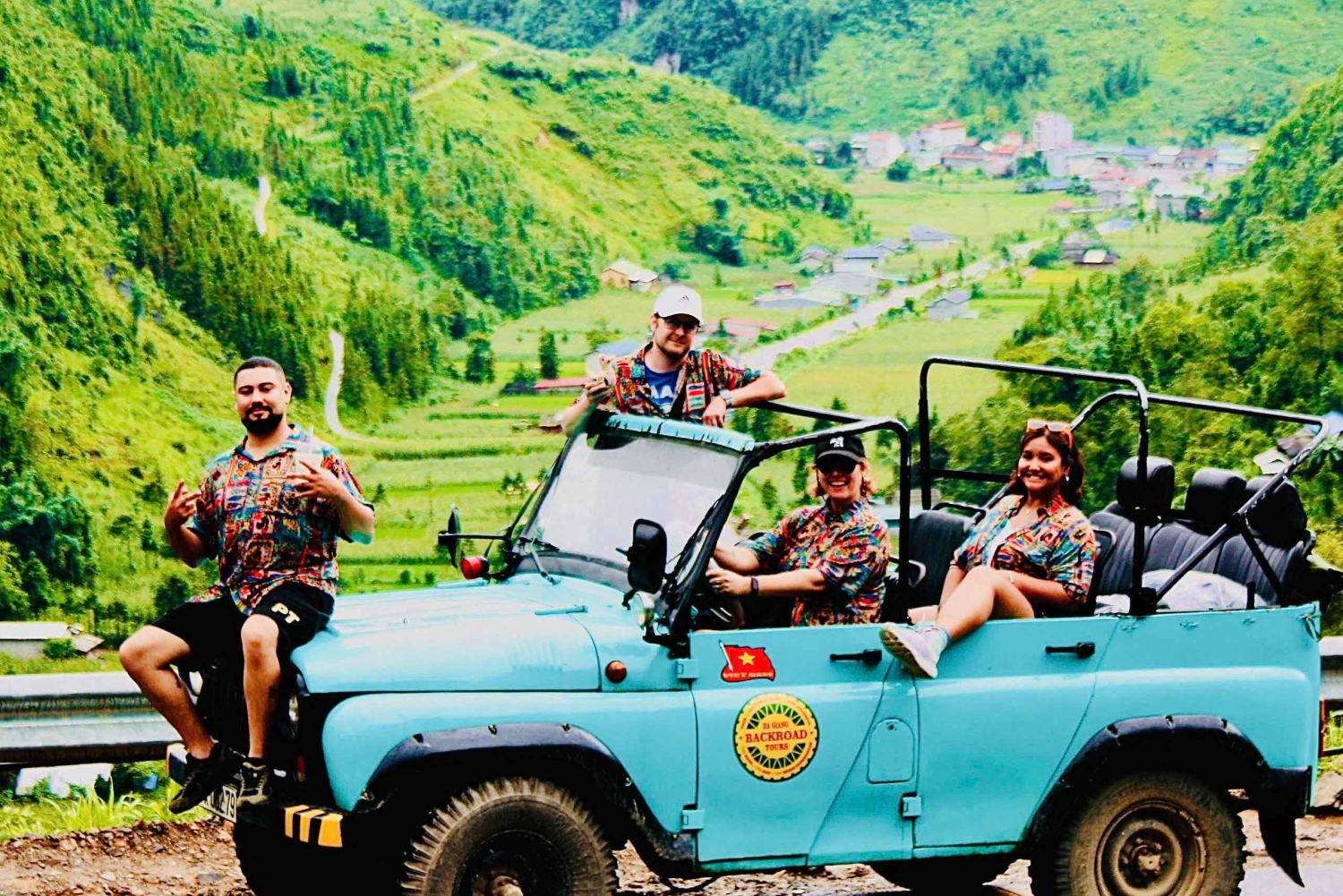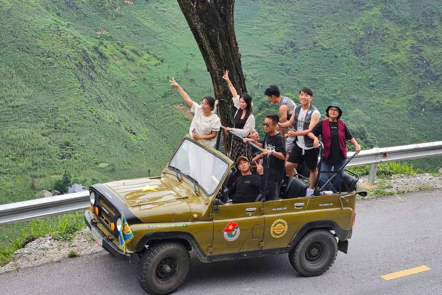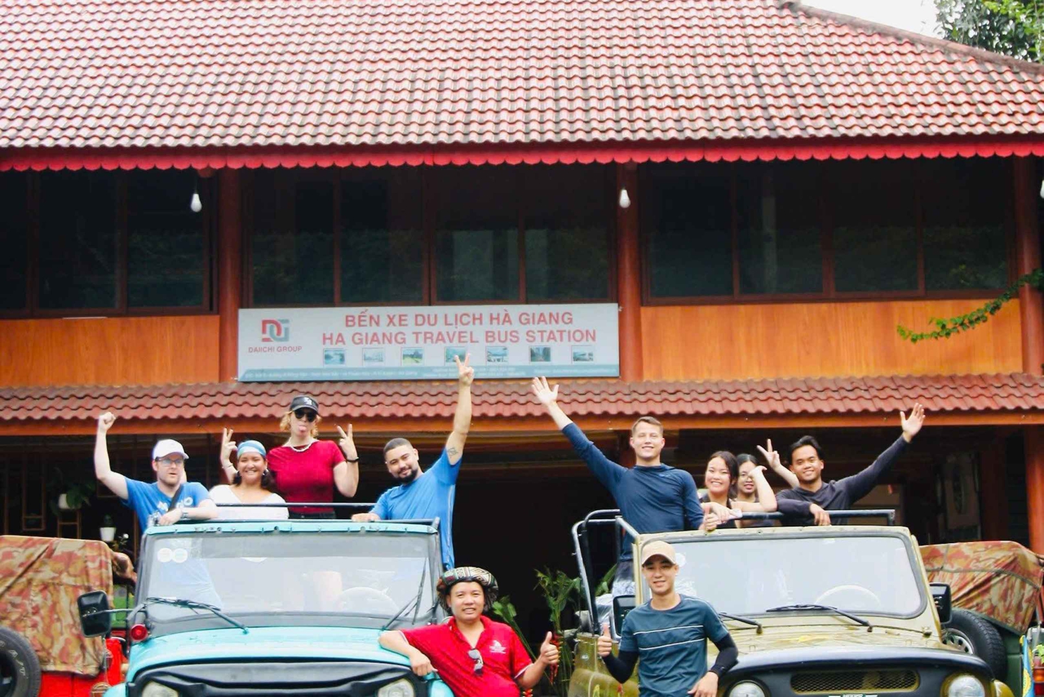 Comece a sua aventura com um conveniente serviço de busca no hotel na cidade de Ha Giang. Encontre o seu guia e acomode-se no robusto Legend Jeep para um dia emocionante pela frente. Observa os agricultores locais a cuidar dos seus campos e encontra gado tradicional ao longo dos caminhos rurais. Dá um passeio tranquilo pela aldeia e interage com as comunidades das minorias étnicas Tay e Dzao. Conhece as suas rotinas diárias, património cultural e artesanato tradicional. Mergulha na autenticidade e serenidade da vida da aldeia, rodeado por paisagens dignas de um cartão postal. No caminho de volta, pare para um mergulho refrescante na deslumbrante Cachoeira Esmeralda de Khuoi My, conhecida por suas águas cristalinas e arredores exuberantes. Relaxe na água fresca, ouça os sons suaves da cascata e aproveite a tranquilidade deste oásis natural. Volte para a cidade de Ha Giang, apreciando as últimas vistas das belas paisagens e da vibrante vida local. Desfruta de um passeio panorâmico ao longo do belo rio Lo, apreciando as vistas ribeirinhas e a vida vibrante da cidade. Pára na Praça do Centro da Cidade de Ha Giang para tirar fotos e mergulhar na atmosfera local. Visita Ha Giang KM0, o ponto de partida oficial da lendária Estrada Ho Chi Minh, e tira algumas fotos memoráveis. Conclui a tua aventura de meio dia com um desembarque no teu hotel na cidade de Ha Giang.Includes