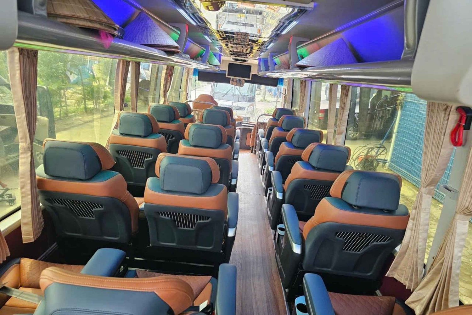 Autocarro Limousine Ninh Binh - Baía de Ha Long - Ninh Binh. Transporte diário de autocarro com recolha e entrega. OPÇÃO: Ninh Binh - Porto Internacional da Baía de Ha Long (Porto Sunworld)/Porto de Tuan Chau ***Recolha em Ninh Binh entre as 06:30 e as 07:00 ***Chegada ao Porto Internacional da Baía de Ha Long/Porto de Tuan Chau: 11:30 - 11:50 OPÇÃO: Porto Internacional da Baía de Ha Long (Porto Sunworld)/Porto de Tuan Chau - Ninh Binh ***Recolha: 11:40 - 12:15 no Porto Internacional da Baía de Ha Long/Porto de Tuan Chau ***Chegada: 16:00 - 16:30 em Ninh Binh Viaja de Halong para Ninh Binh (ou regressa) num confortável autocarro limusina. A distância é de cerca de 185 km e demora cerca de 4 horas. Pelo caminho, vais desfrutar de belas vistas da paisagem do norte do Vietname a partir do teu lugar com ar condicionado. Há uma pequena paragem (15 a 20 minutos) para descansar antes de continuares a viagem. Tem em atenção que o tempo de viagem pode ser afetado pelas condições do trânsito. ✅ Recolha e entrega em Halong: Porto de Tuan Chau/Porto Internacional de Halong, ou qualquer hotel na área de Bai Chay e na Ilha de Tuan Chau. => Diz-nos o nome do porto, o nome do cruzeiro, a morada do hotel e o teu número de telefone/WhatsApp para facilitar o contacto. => Depois de reservar, verifica o teu e-mail para obter informações detalhadas sobre a hora de recolha e atualizações. ✅ Recolha e entrega em Ninh Binh: também podes reservar um transfer de regresso de Ninh Binh para a Baía de Halong. ✅ Ninh Binh é um destino famoso no norte do Vietname, mesmo a sul de Hanói. Aqui podes visitar: Hoa Lu – Tam Coc, Bai Dinh – Trang An, Van Long – Kenh Ga, Mua Cave (Dancing Cave)... Há muitos hotéis, estadias em casas de família e hostels em Ninh Binh para pernoitar, ou podes apanhar facilmente autocarros/comboios para Phong Nha, Hue, Danang e outras cidades do sul. ✅ Sobre a Baía de Halong: a Baía de Halong é um dos locais mais famosos do Vietname, Património Mundial da UNESCO. Inclui três baías deslumbrantes: Bai Tu Long Bay, Ha Long Bay e Lan Ha Bay. Oferecemos recolha e entrega convenientes no porto ou hotel da tua escolha.Includes