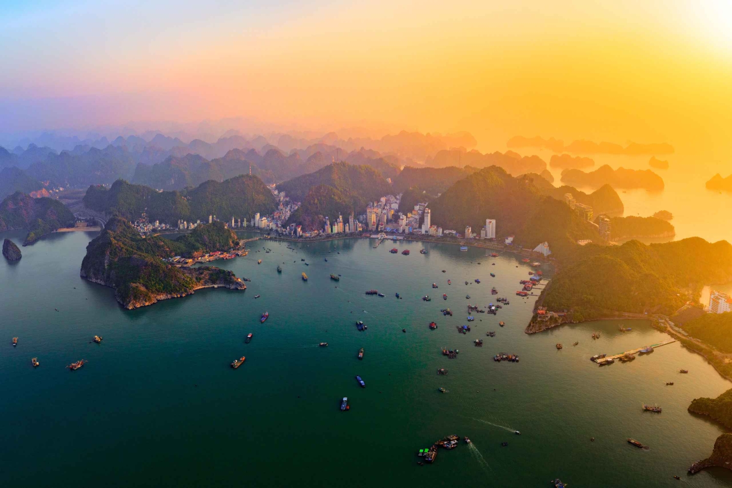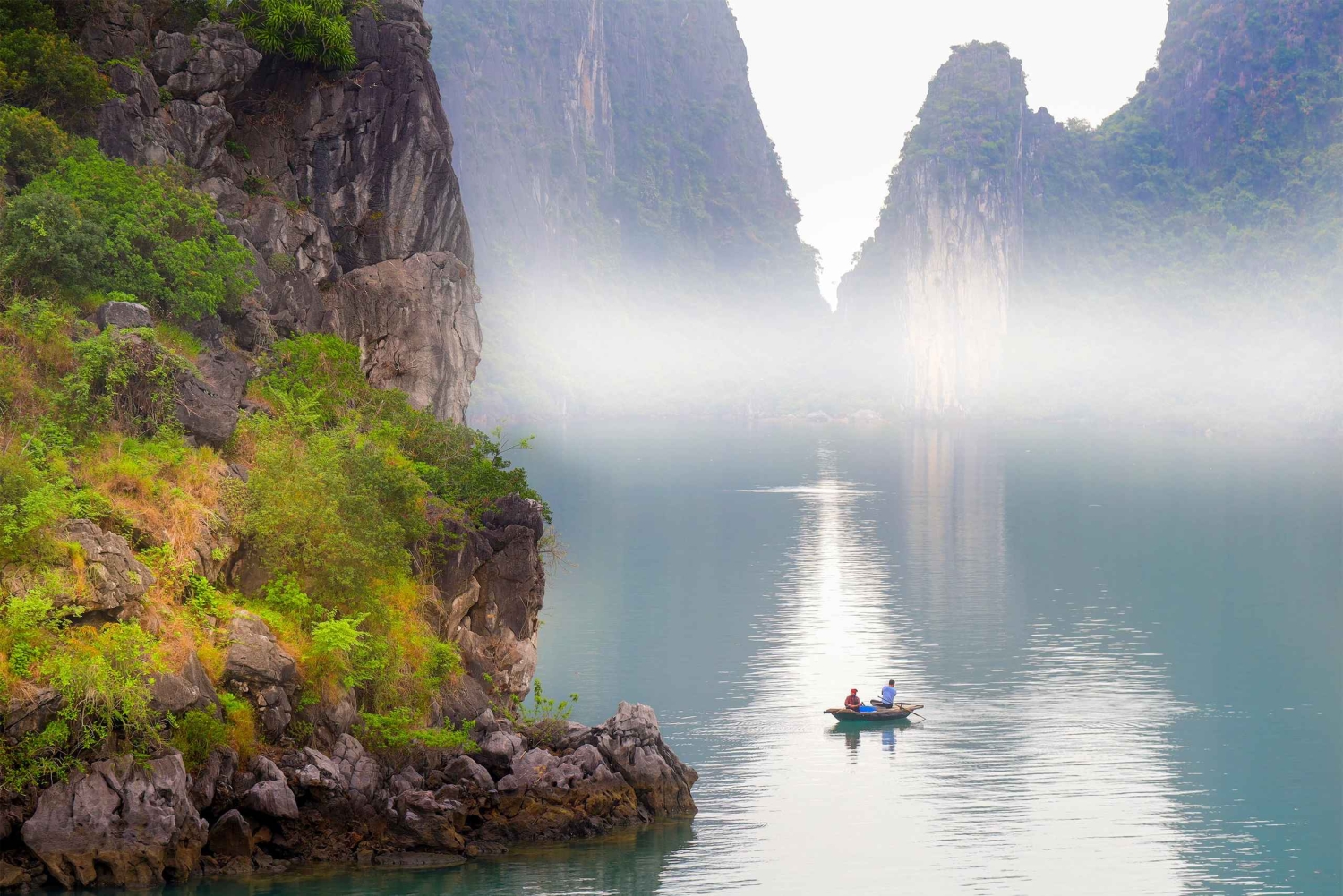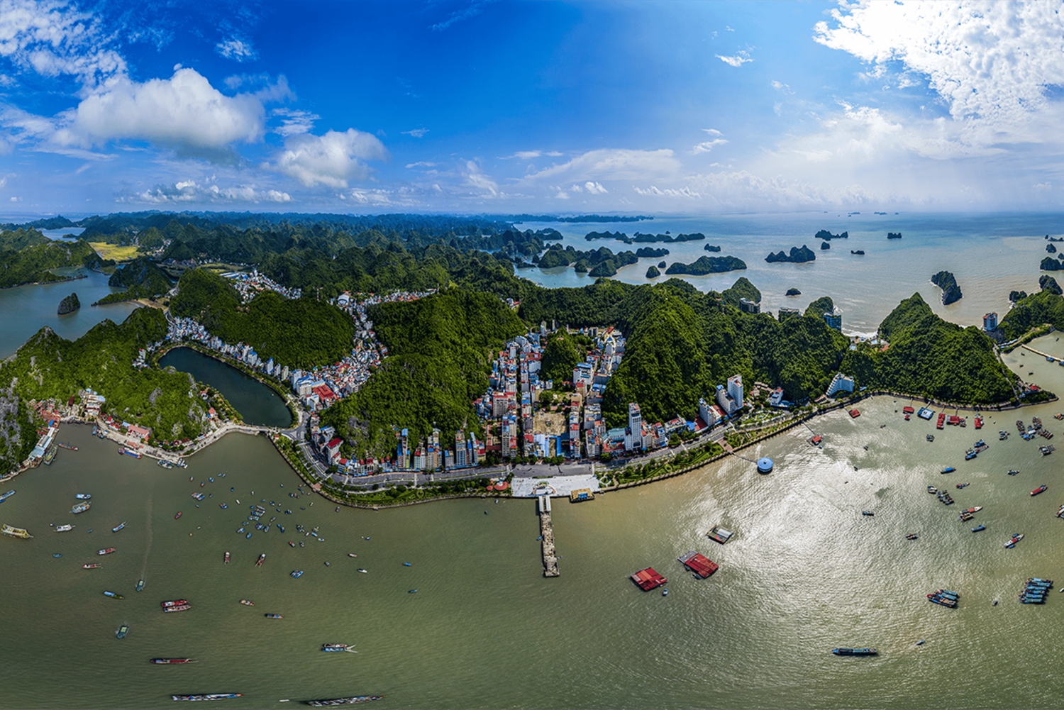 - Em seguida, continuamos para o norte até o centro da Baía de Ha Long